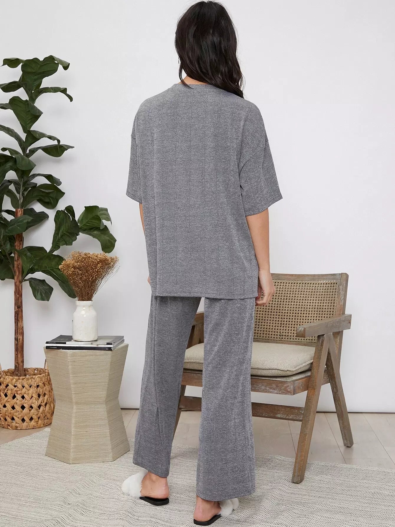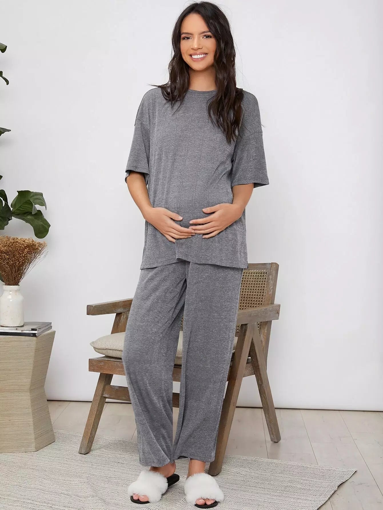طقم بنطلون وقميص سادة بأكمام منسدلة للأمومة