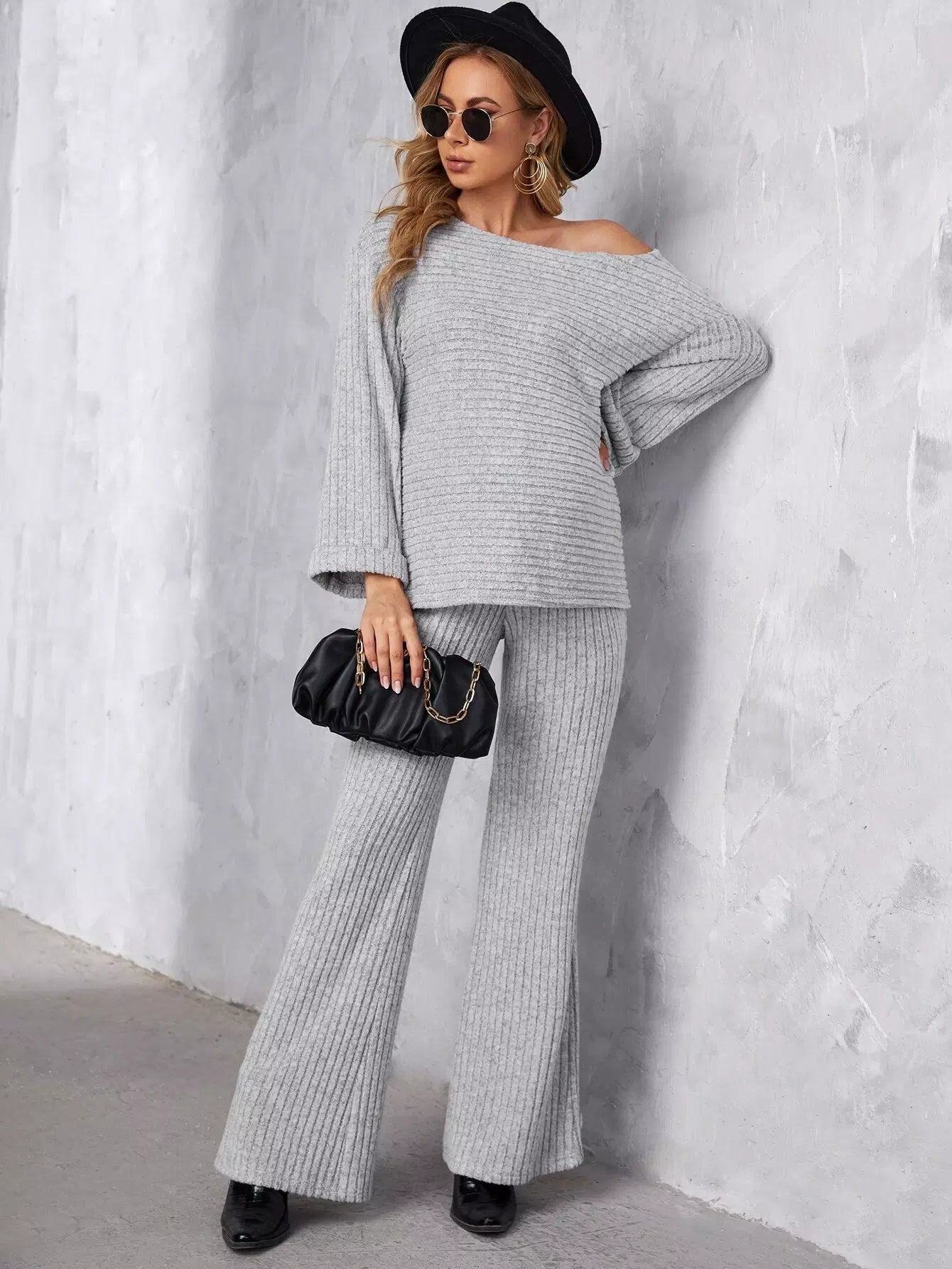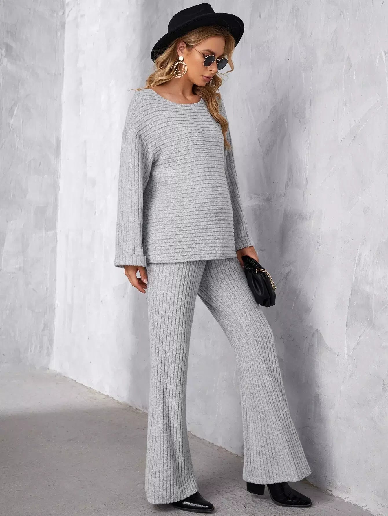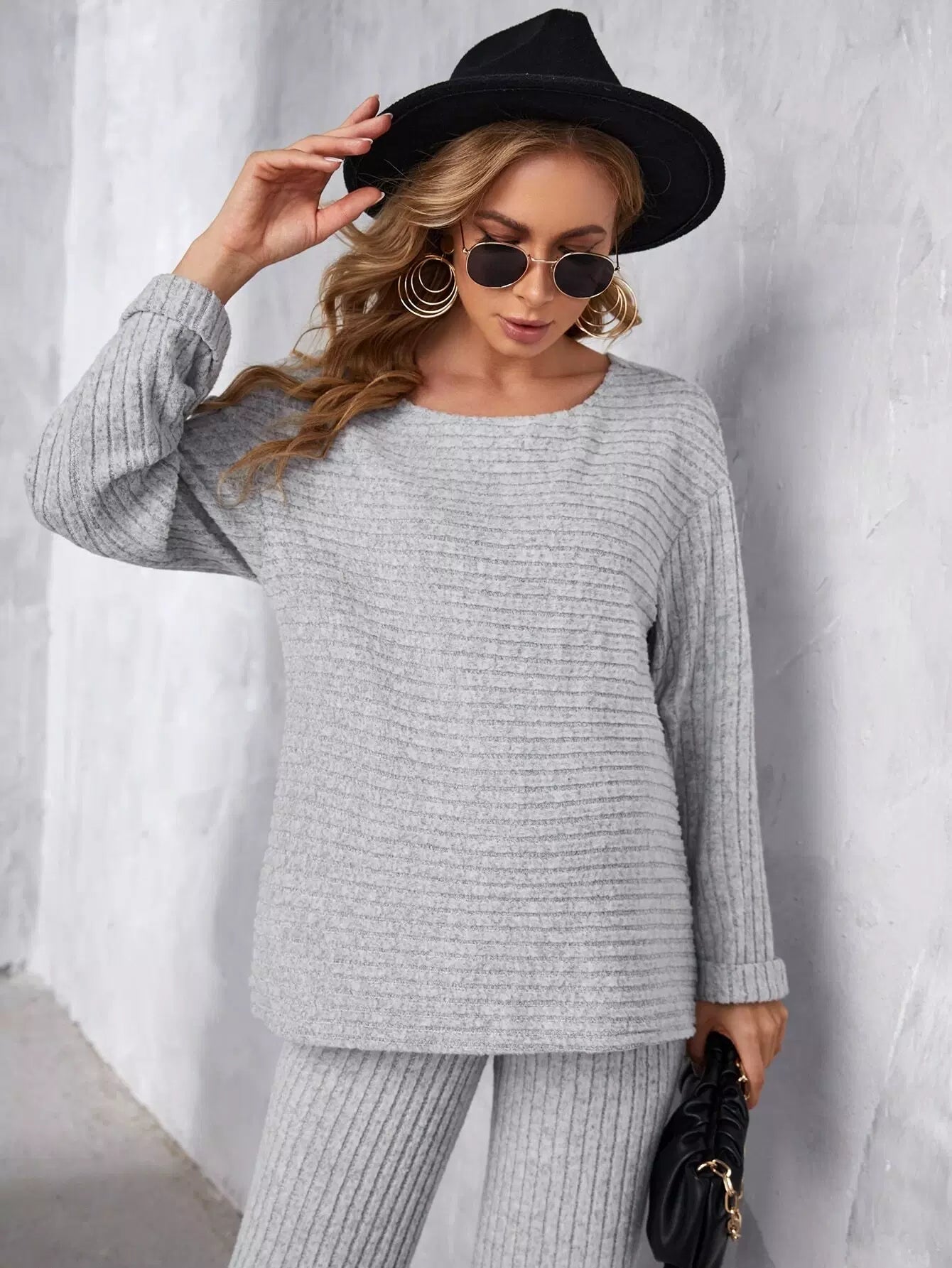 بلوزة وبنطلون سادة بأكمام منسدلة للحامل