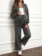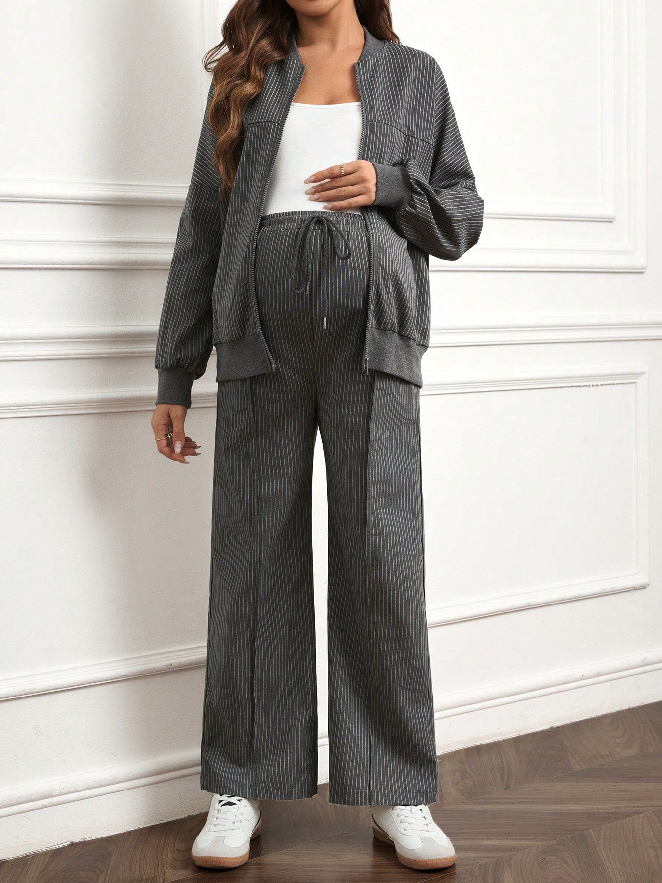 kids SHEIN 2pcs Maternity Casual Zipper Front Top And Sweatpants Sports Suit
