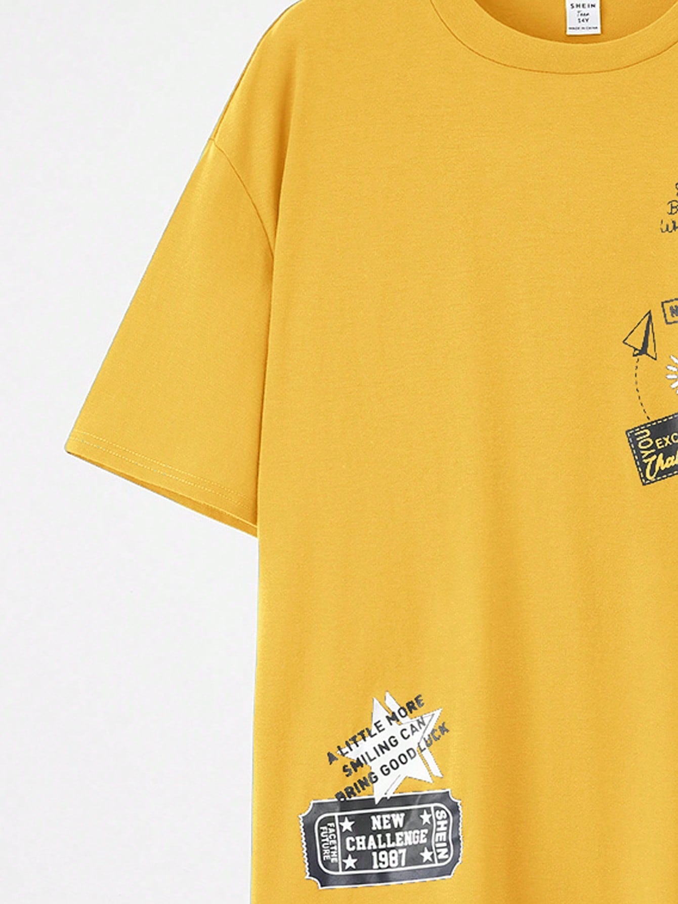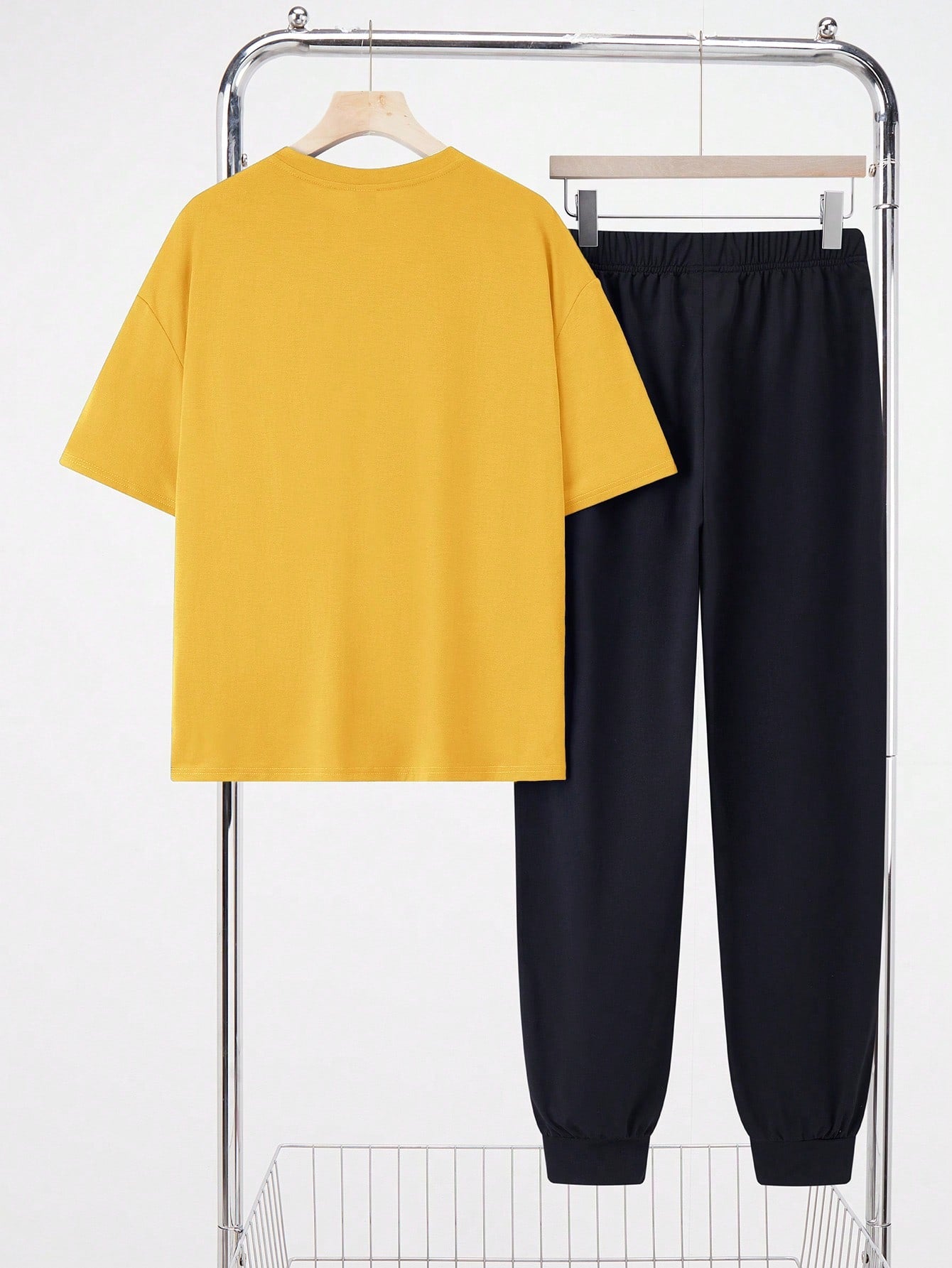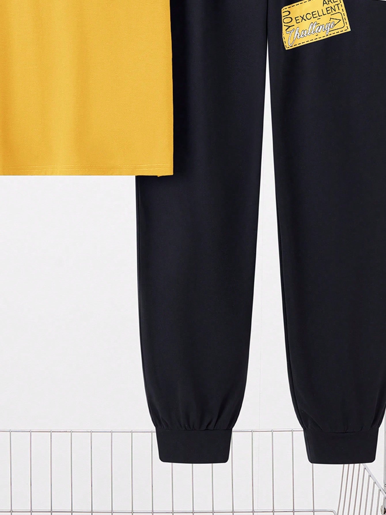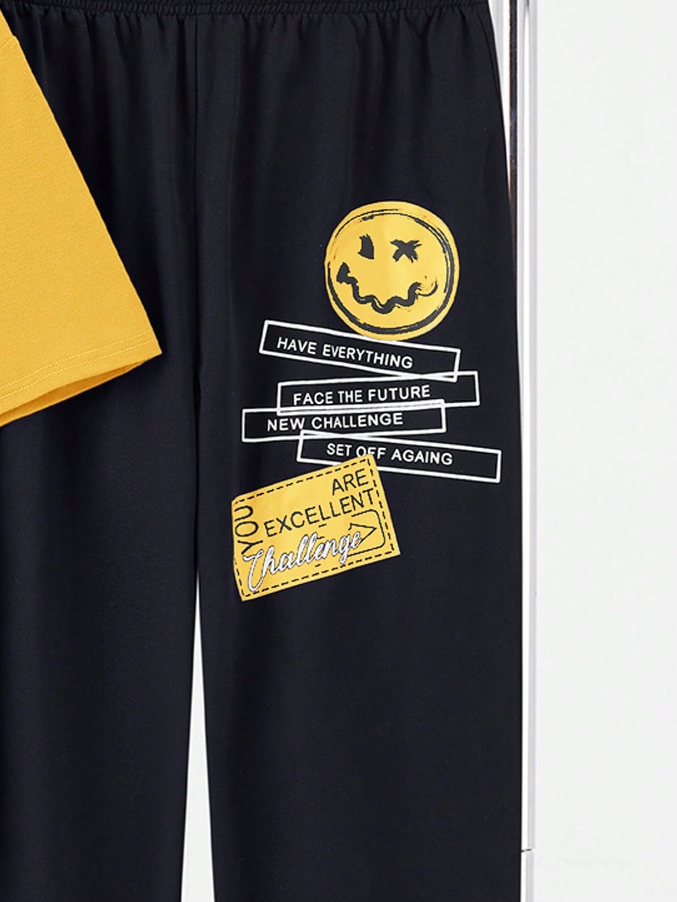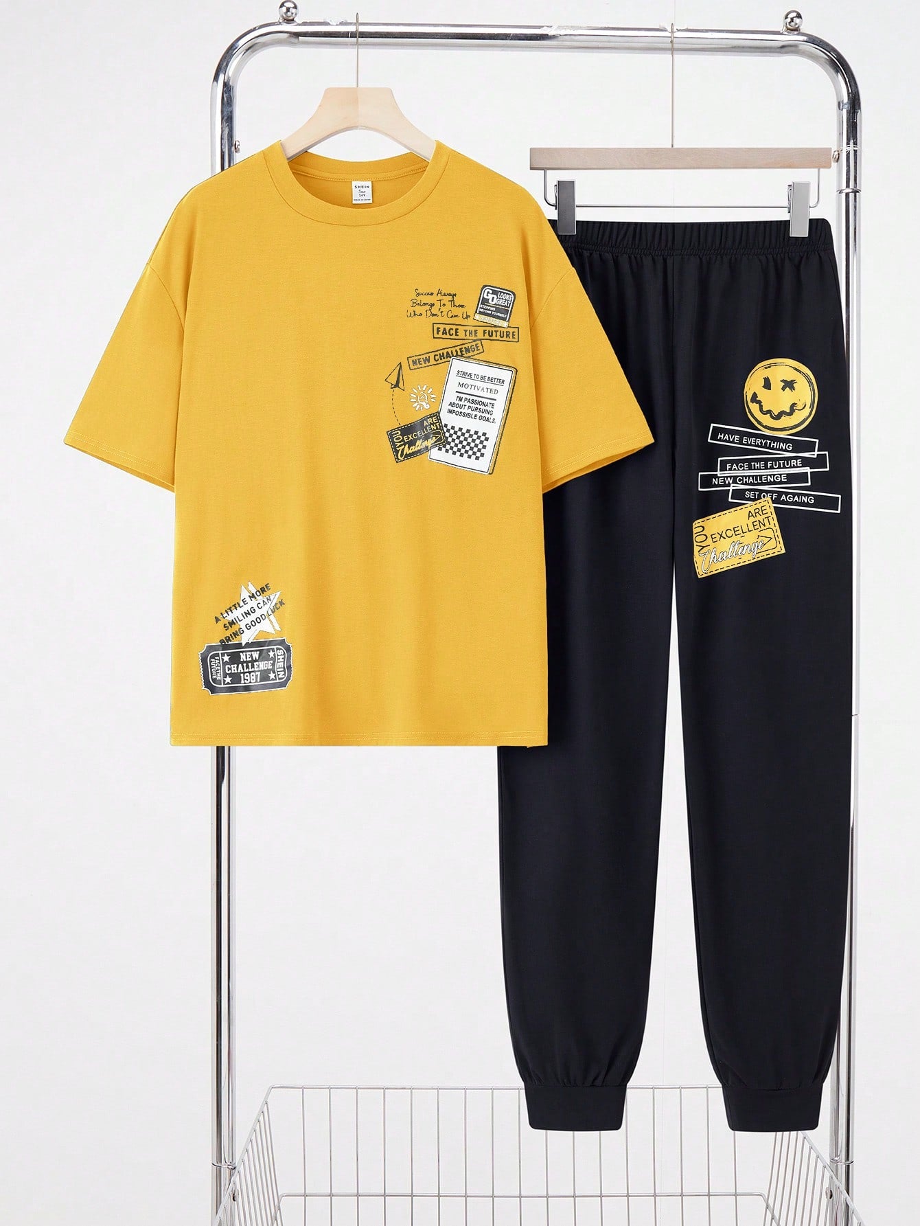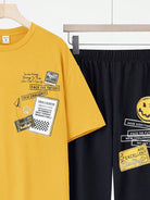 2pcs Tween Boys Casual Short Sleeve Top And Long Pants Set, Streetwear Punk Rock School Style For Everyday,