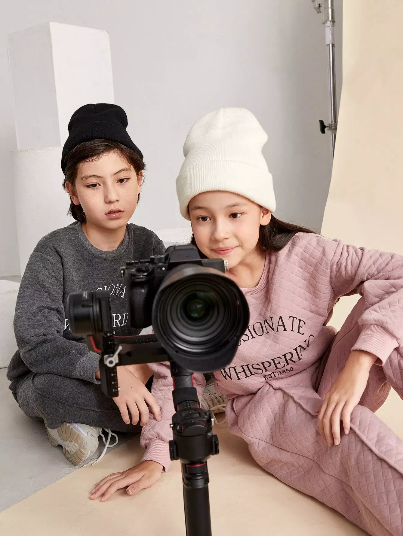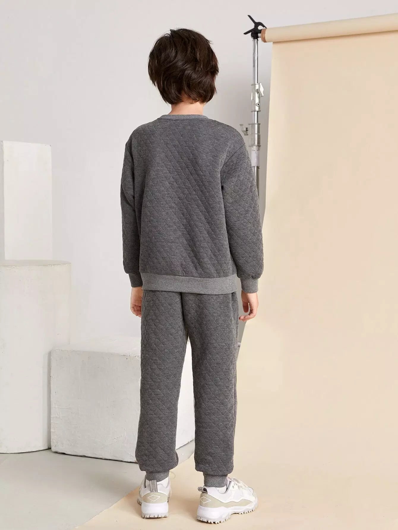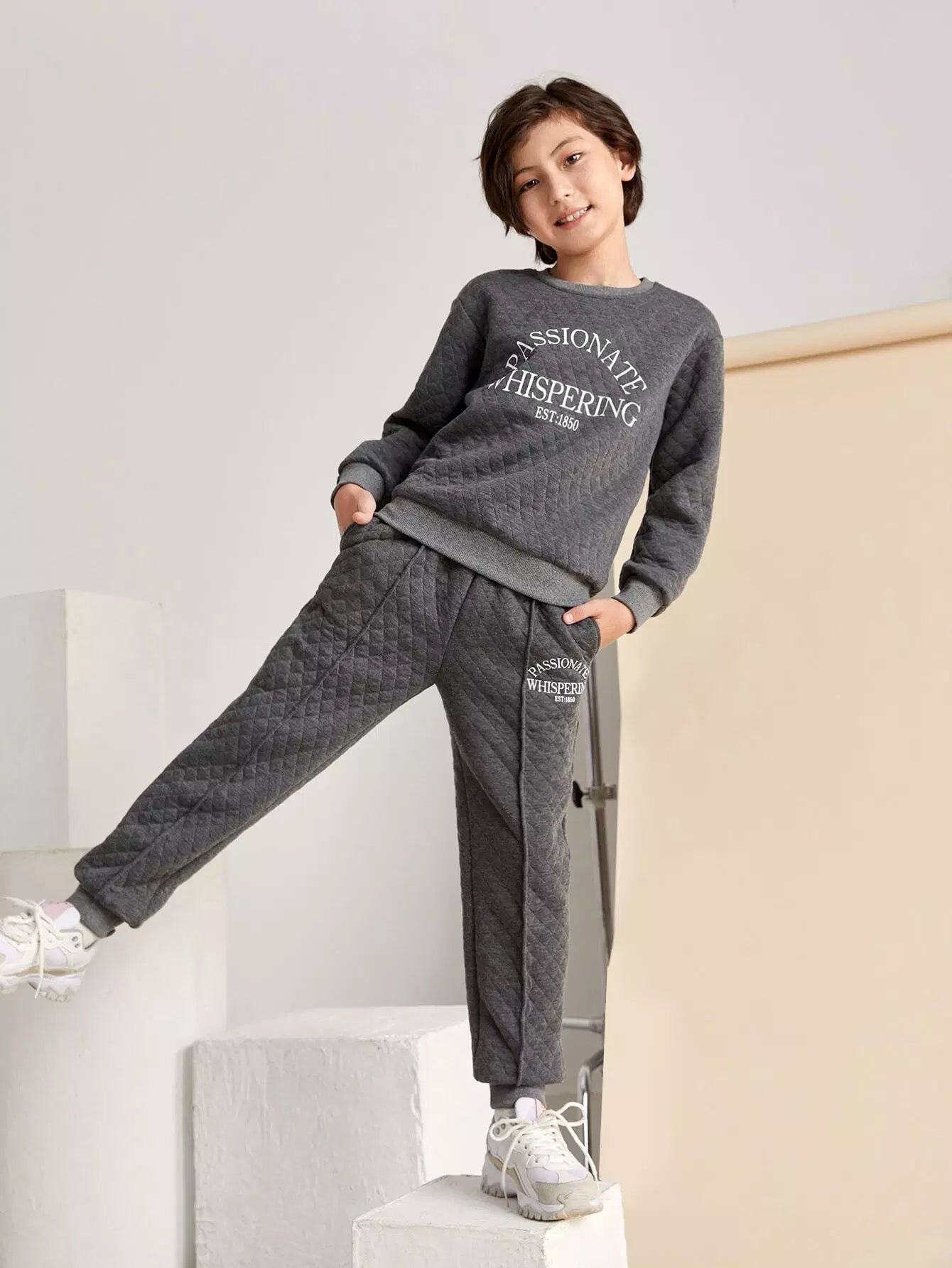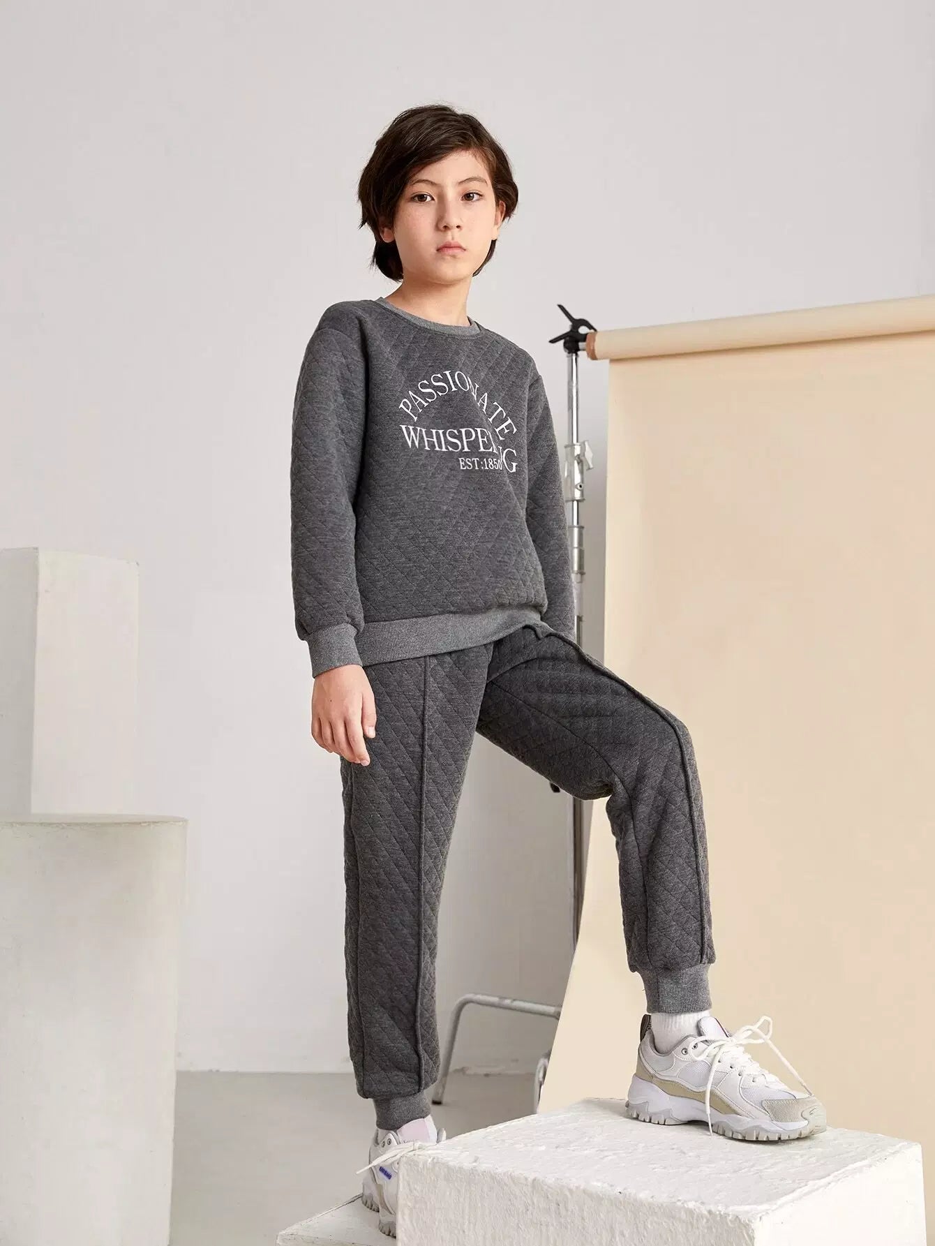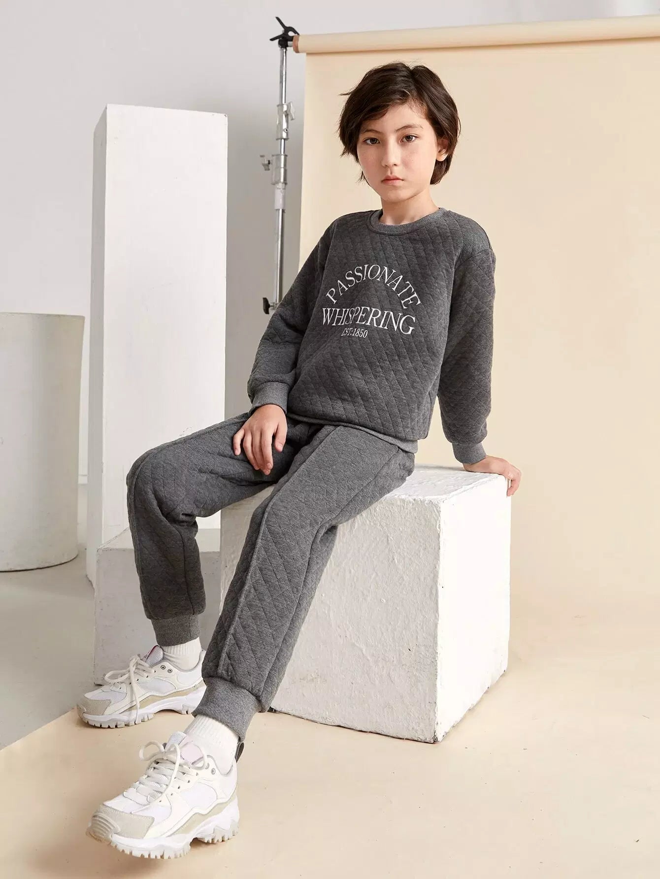 كنزة صوفية مبطنة بنطلون مبطن بنقشة حروف جرافيك أرجيل للأولاد قطعة واحدة وبنطال رياضي مزين بدرزات