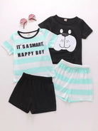 تي شيرت نوم جرافيك بشعارات ورسومات كرتونية للأولاد 2 قطعة تي شيرت نوم للأولاد وشورت نوم 2 قطعة