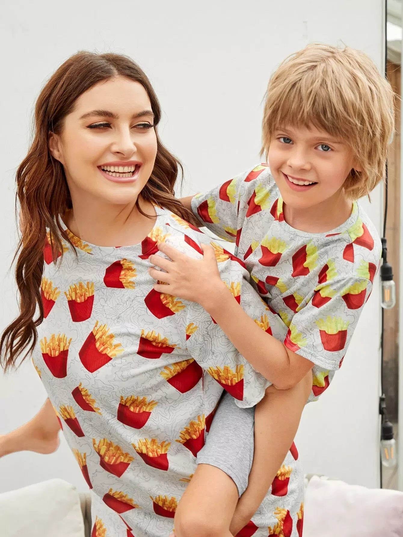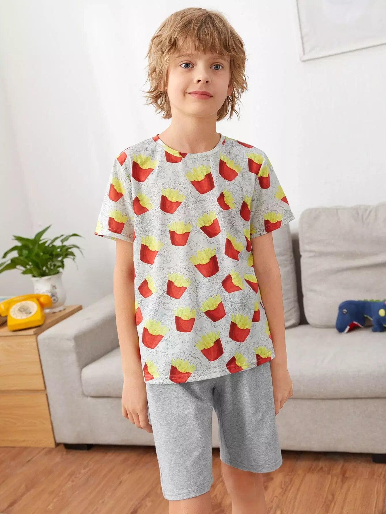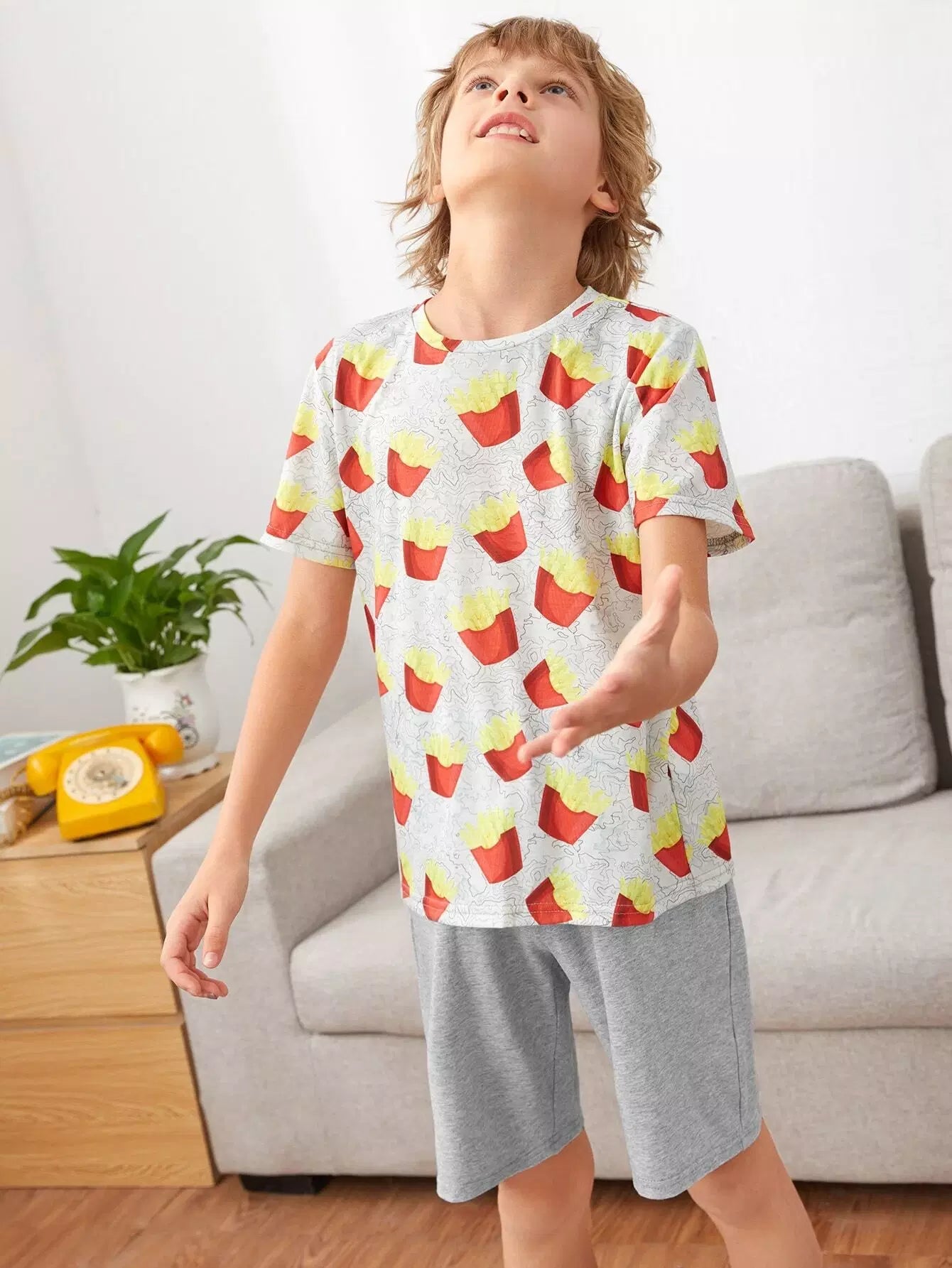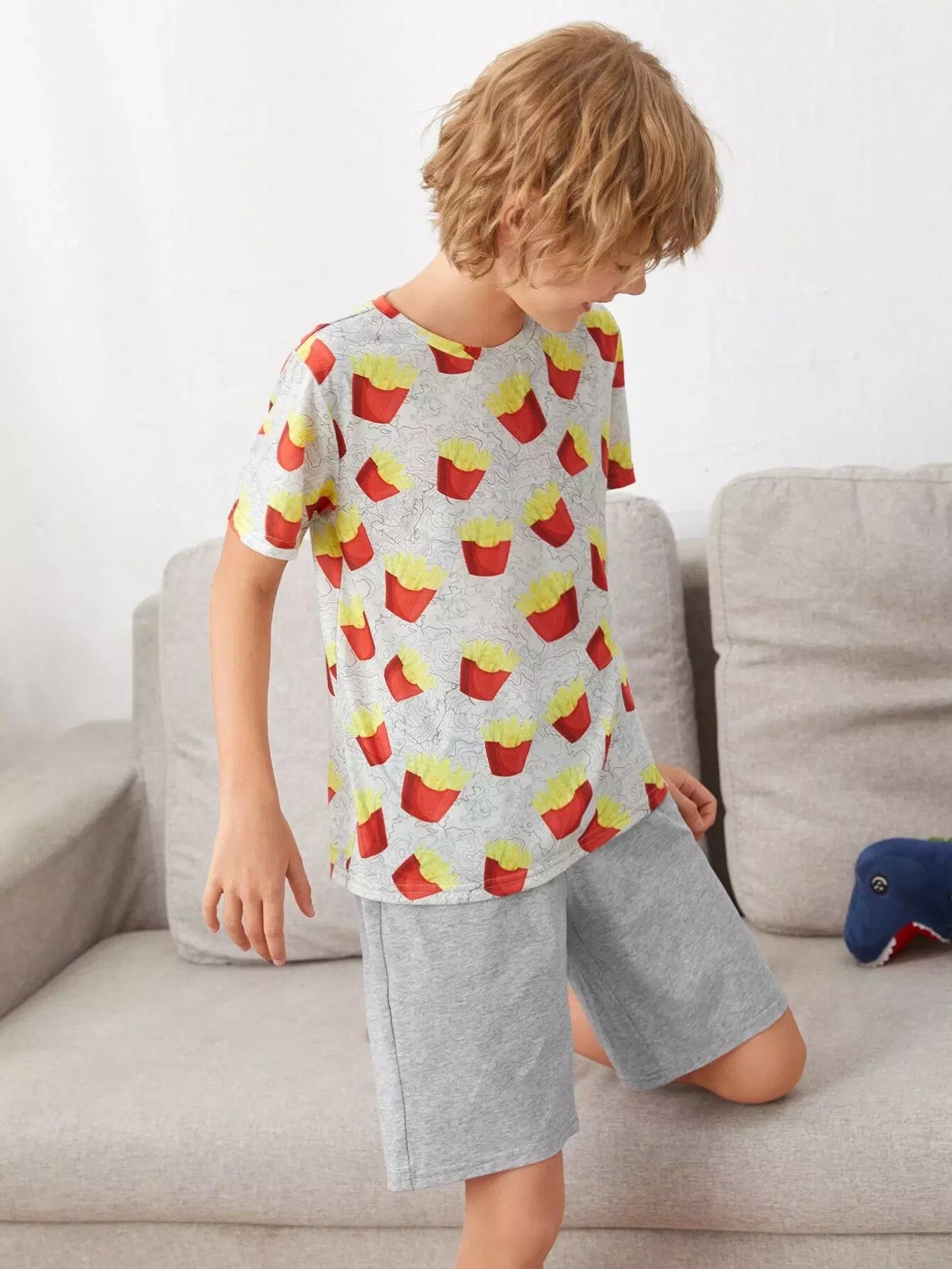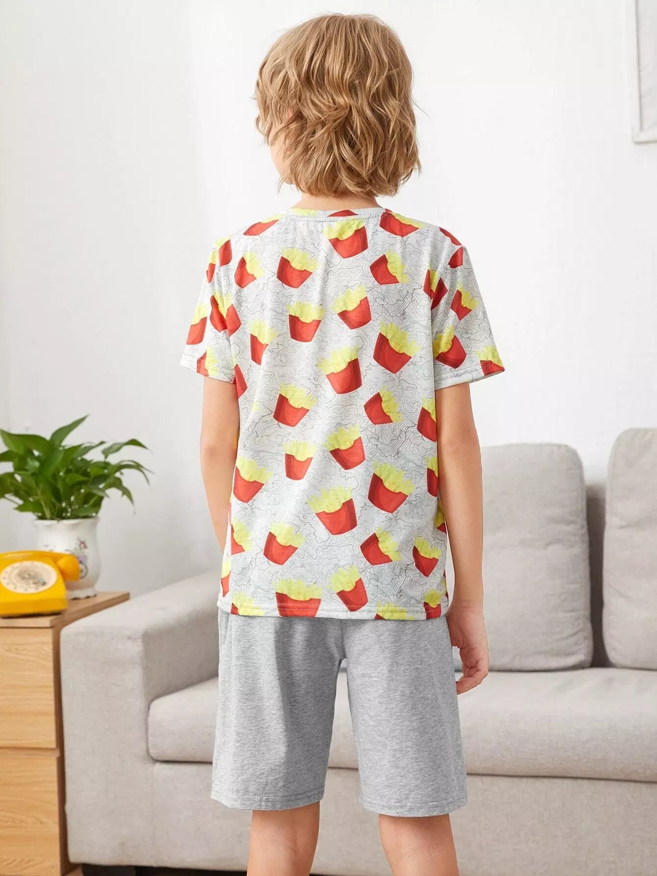 طقم تي شيرت بطبعة بطاطس مقلية للأولاد وشورت بيجامة رياضية