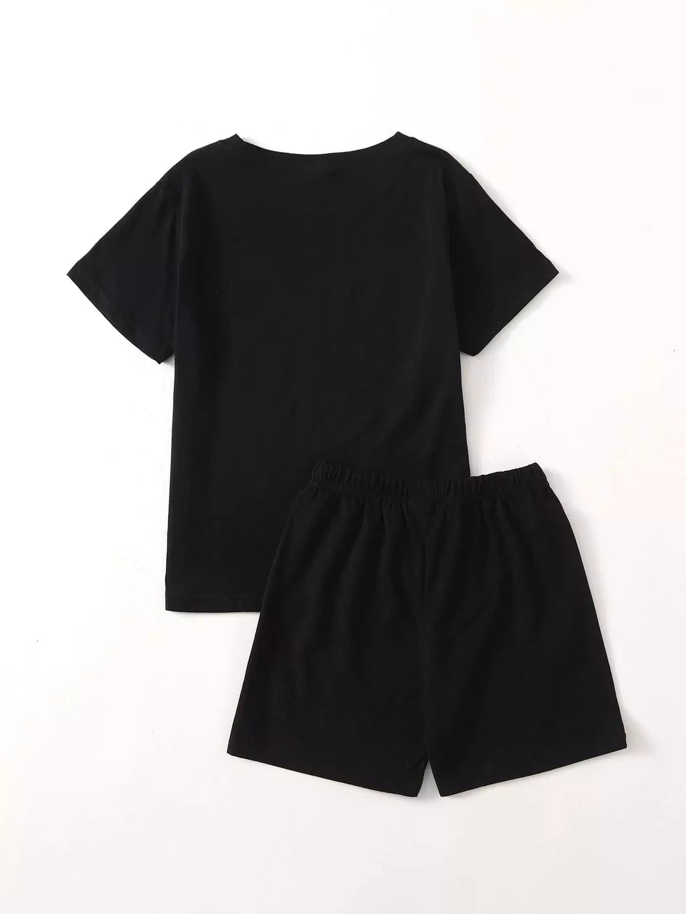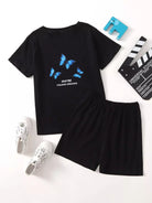 تي شيرت جرافيك وشورت رياضي للأولاد بنقشة فراشة وشعار
