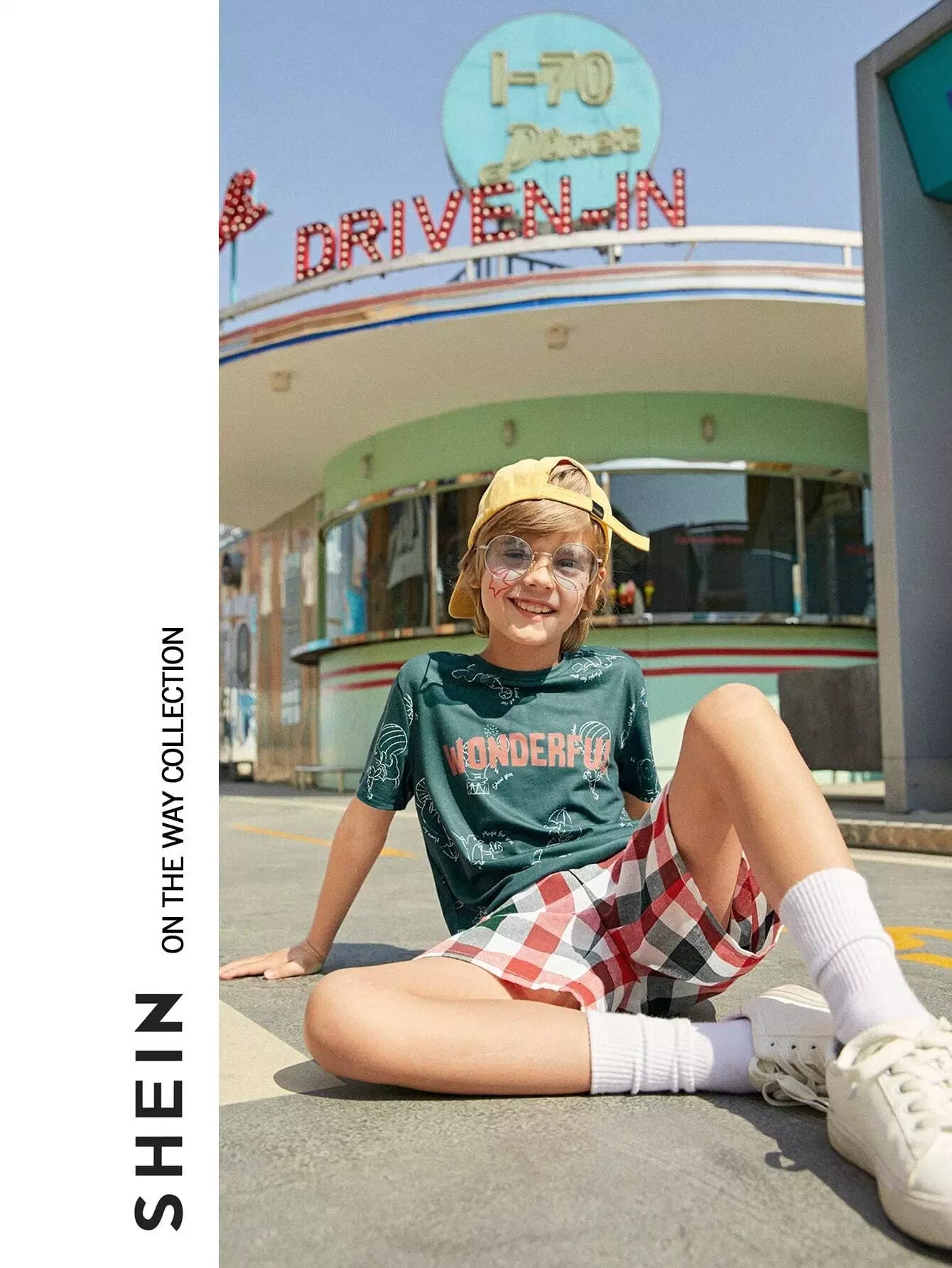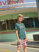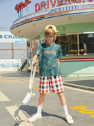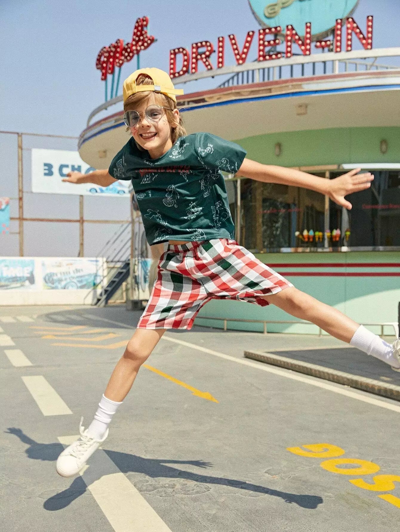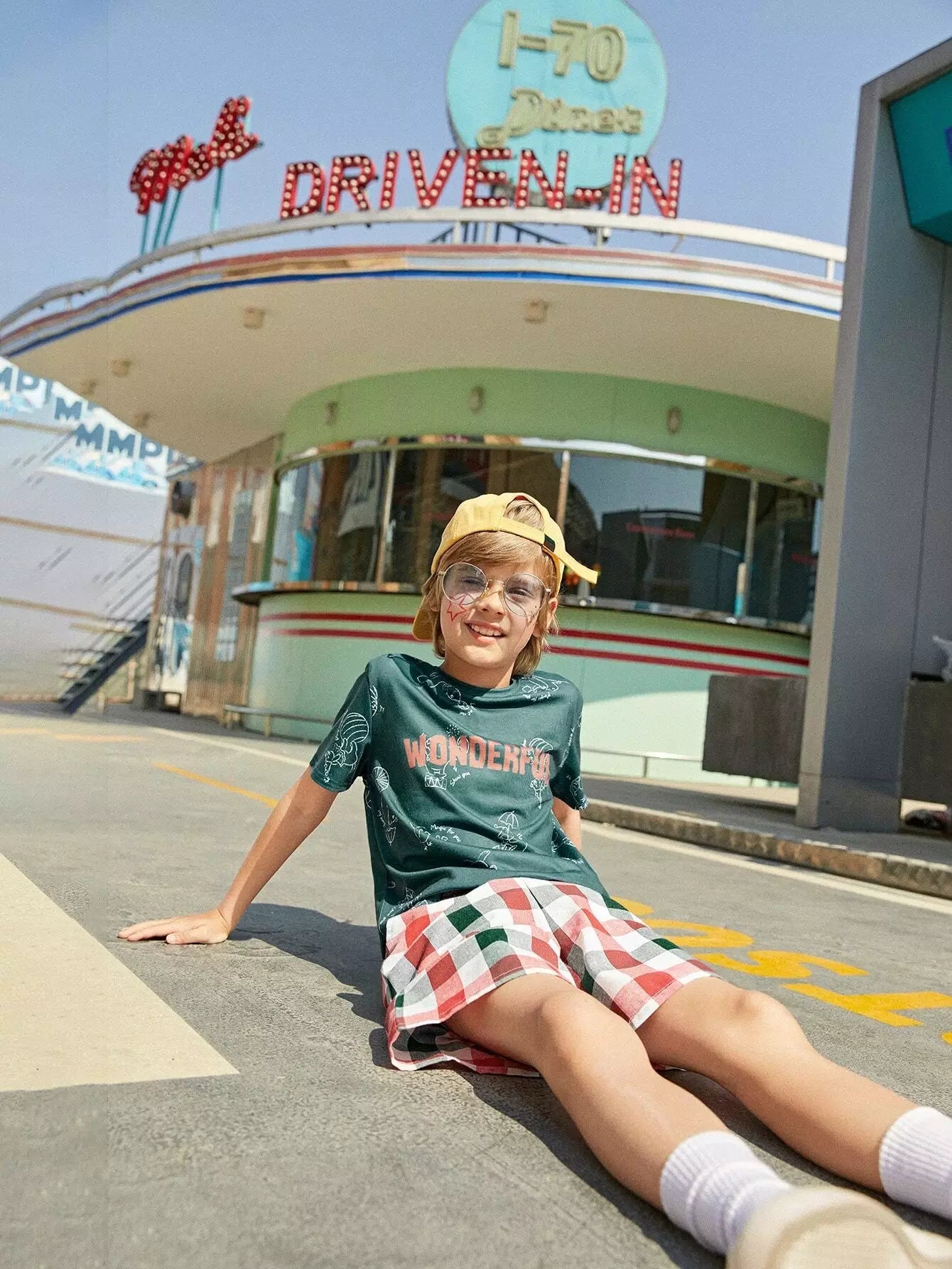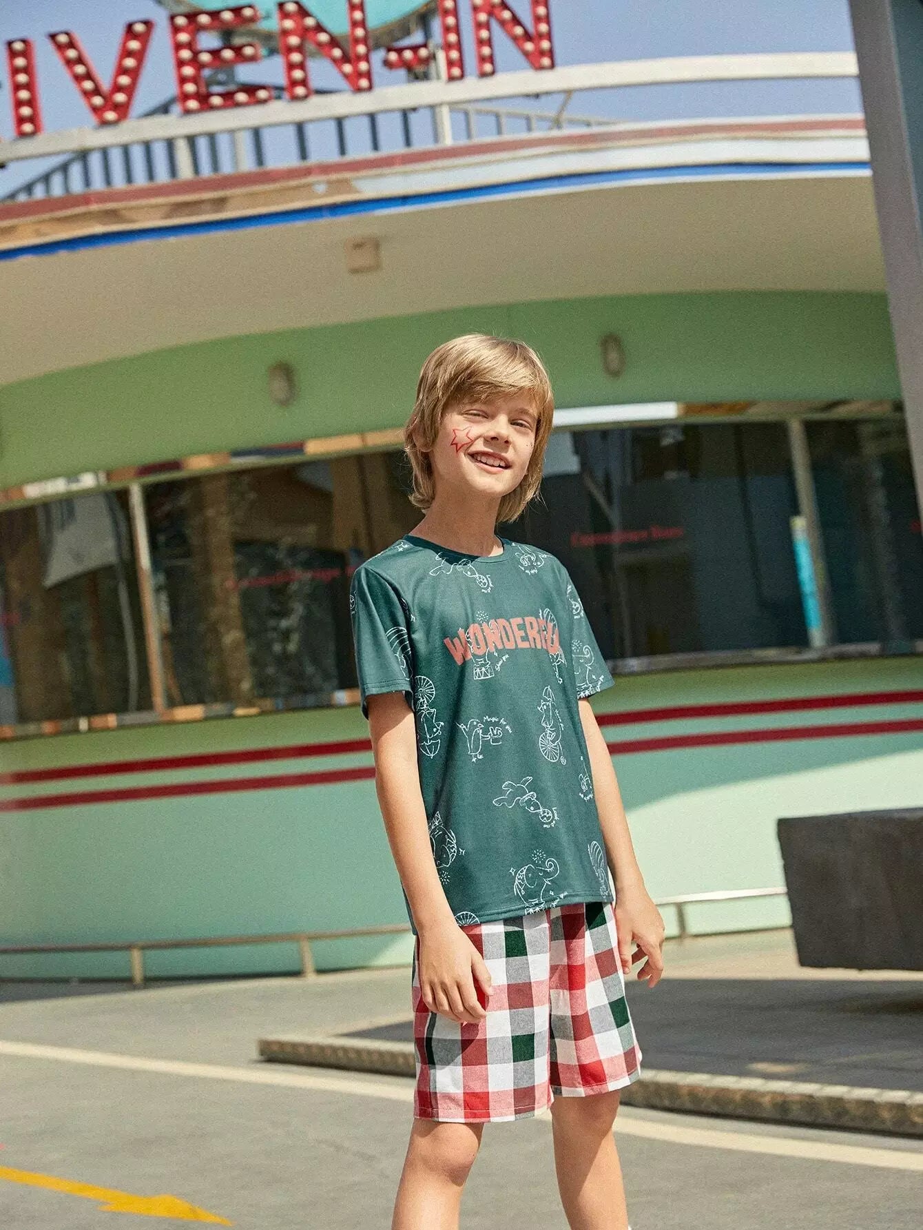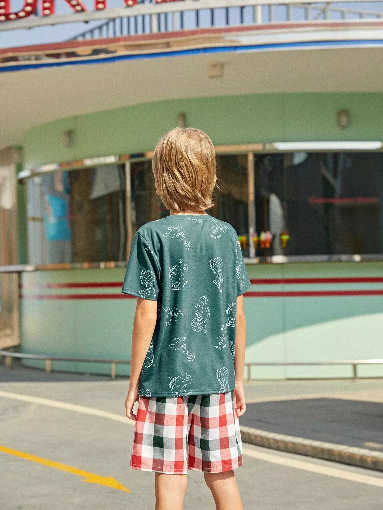 طقم تي شيرت برسومات كرتونية وشورت منقوش للأولاد