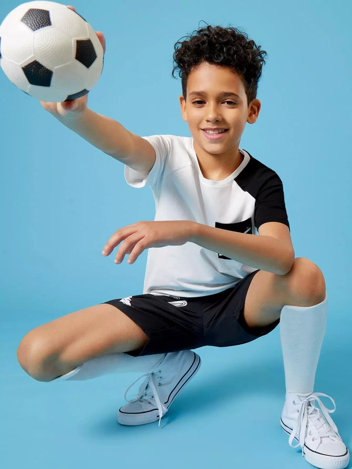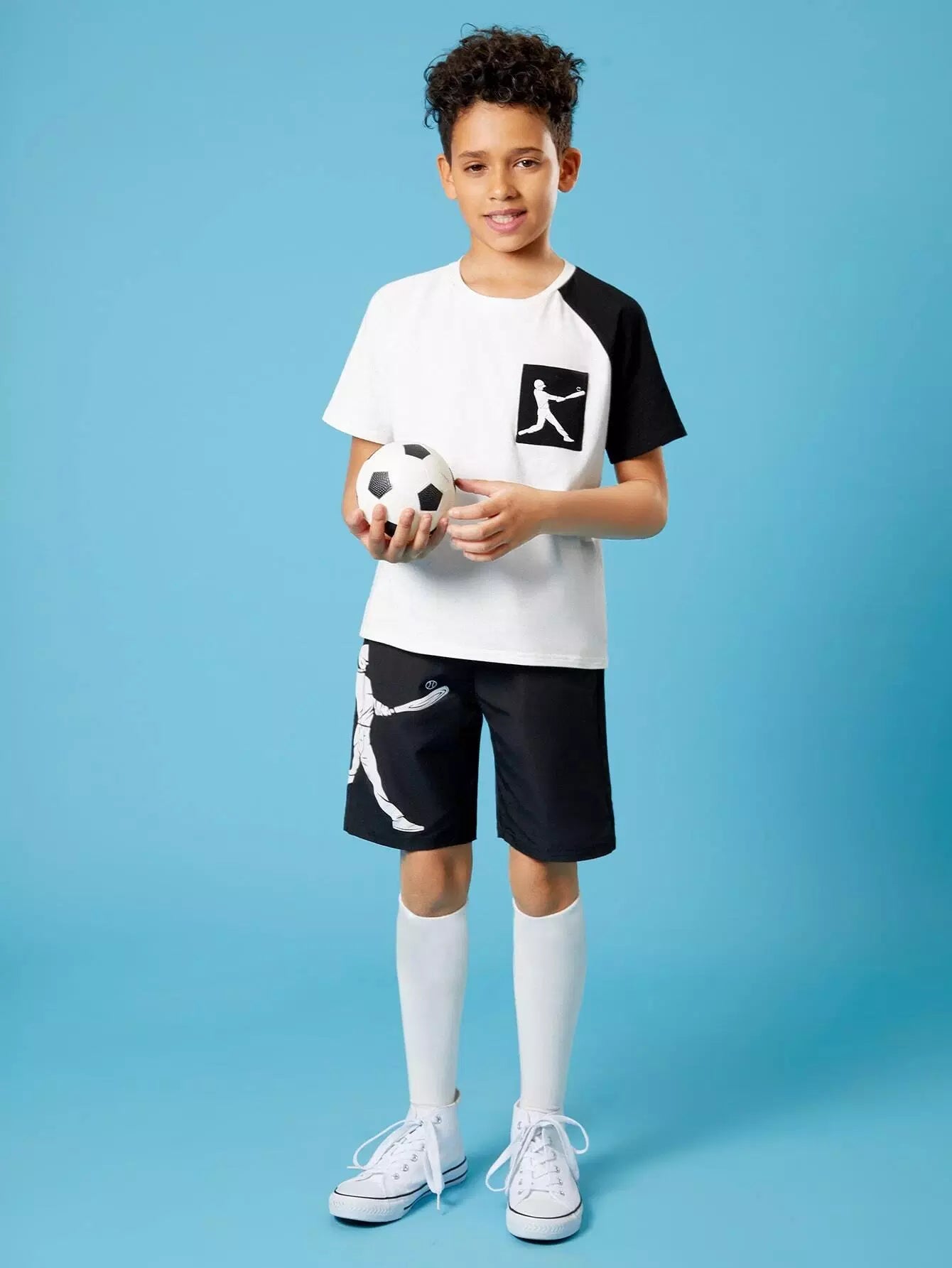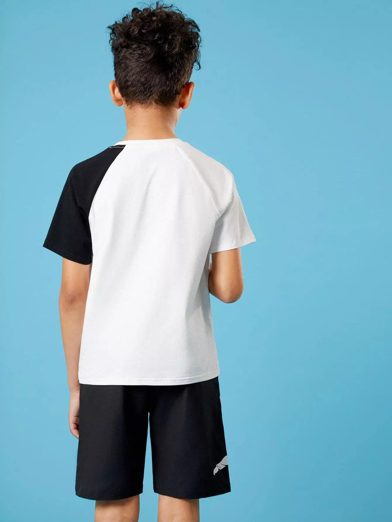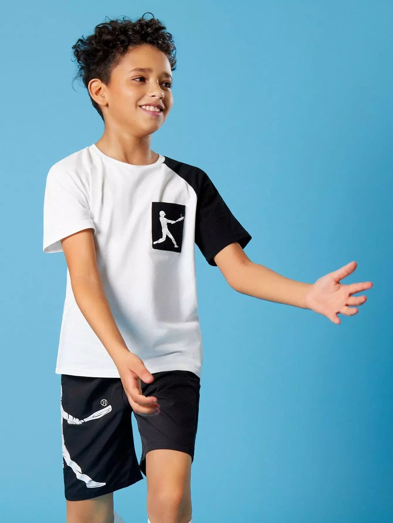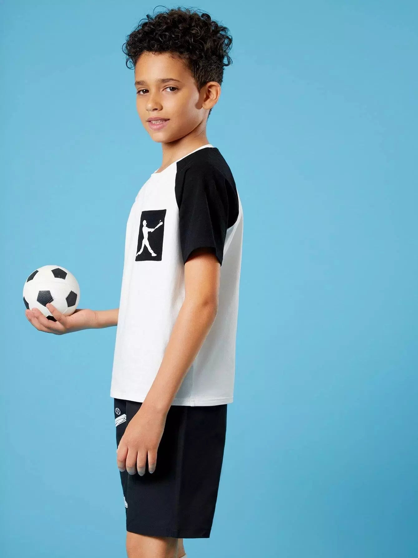 طقم تي شيرت وشورت برسومات ثنائية الألوان للأولاد