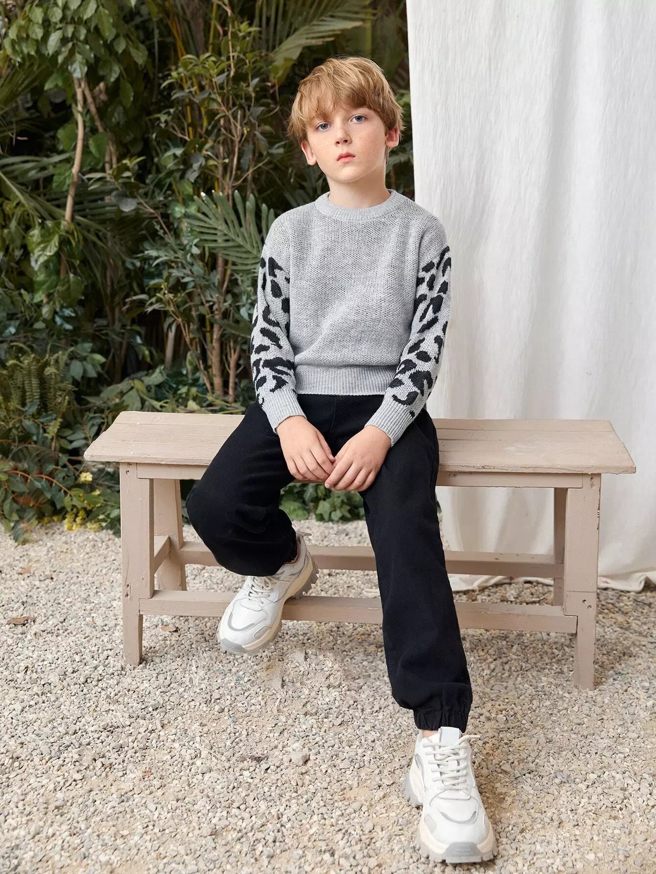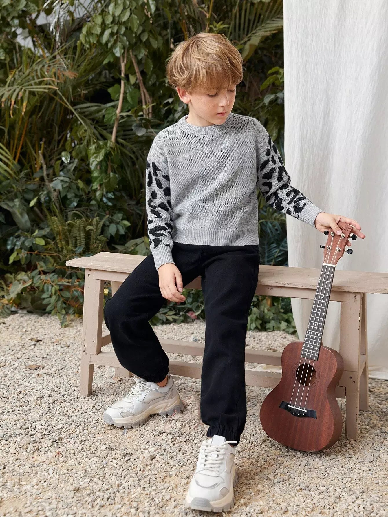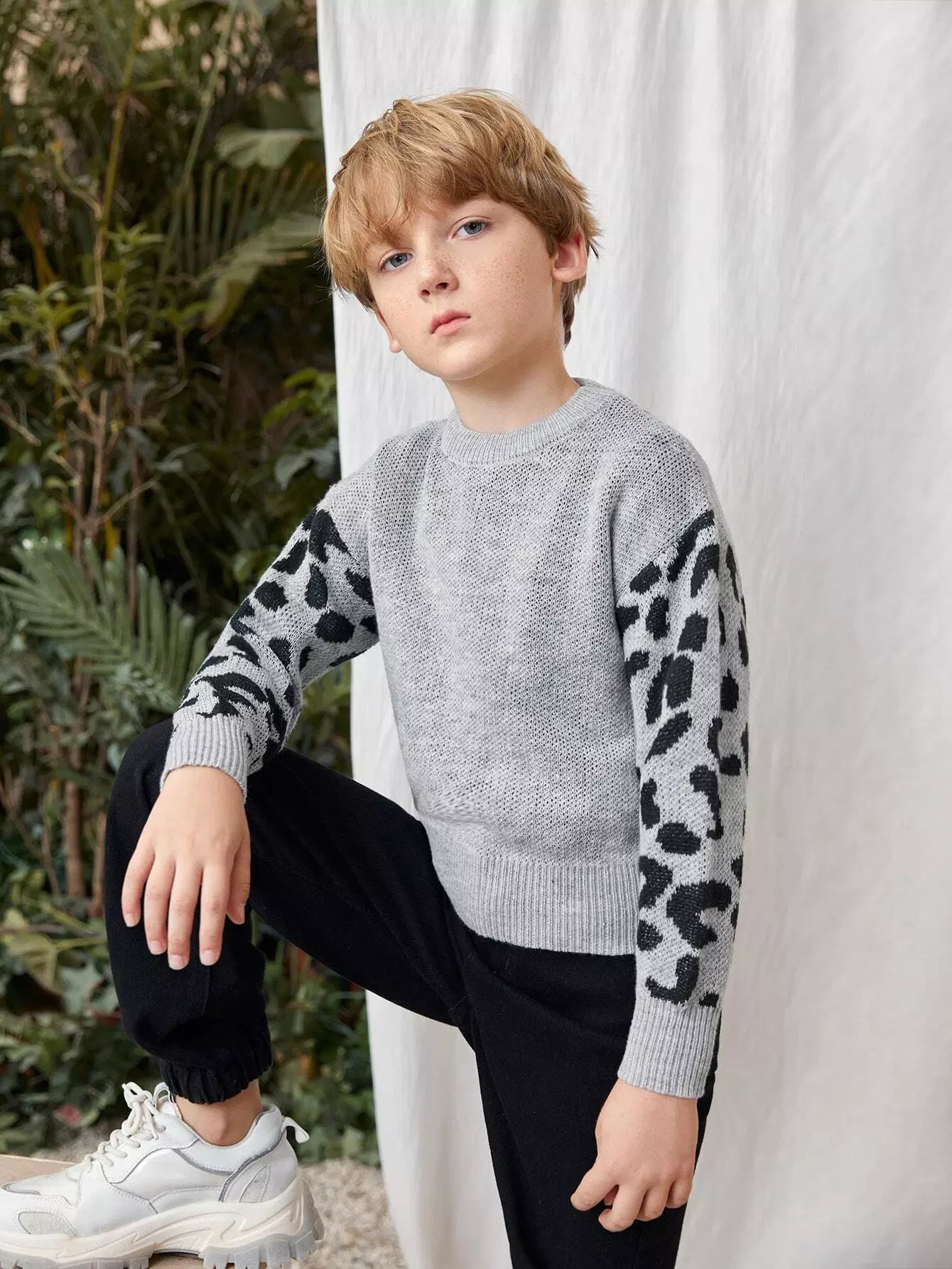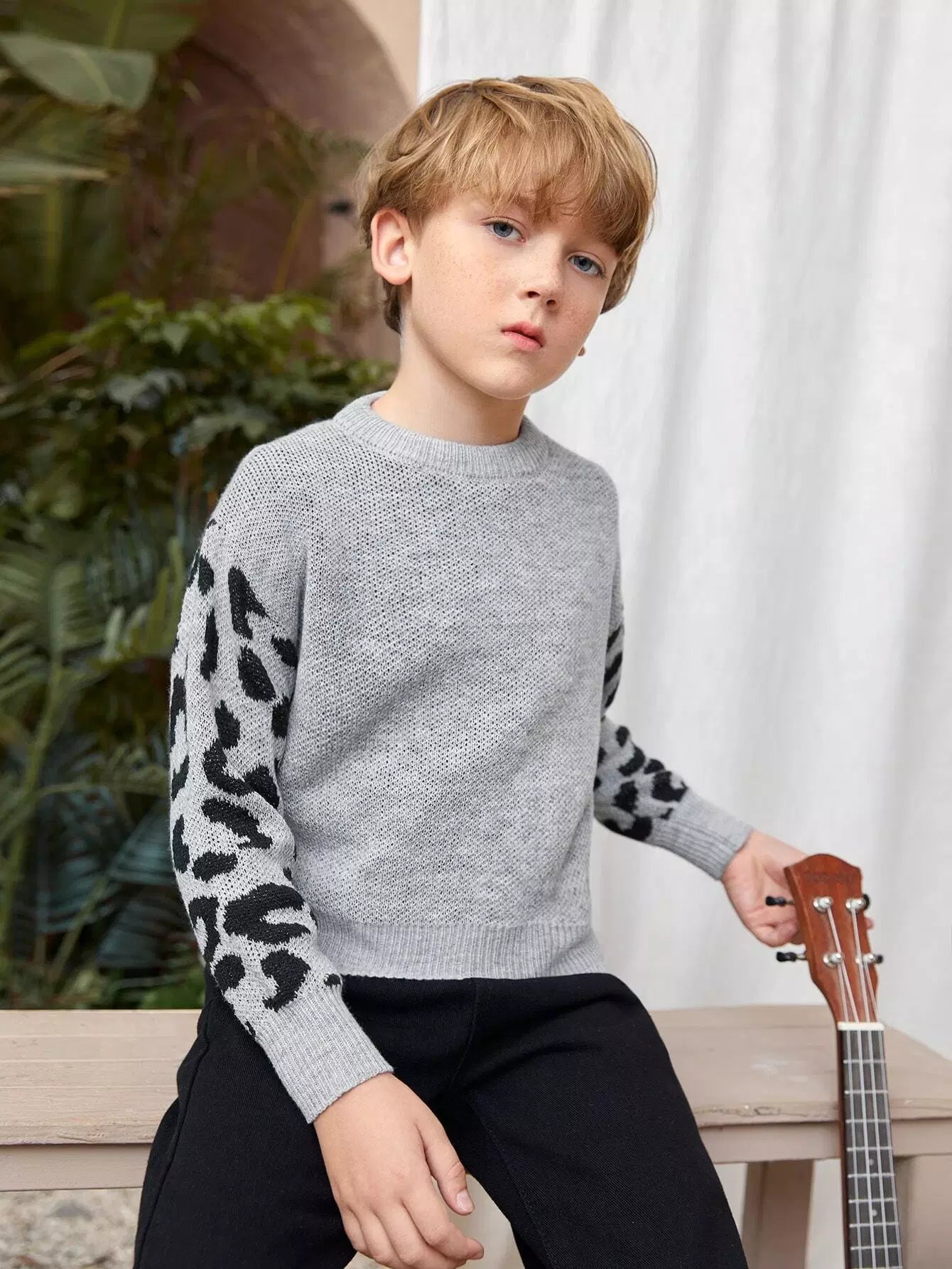 كنزة منسدلة الكتفين بنقشة الفهد للأولاد