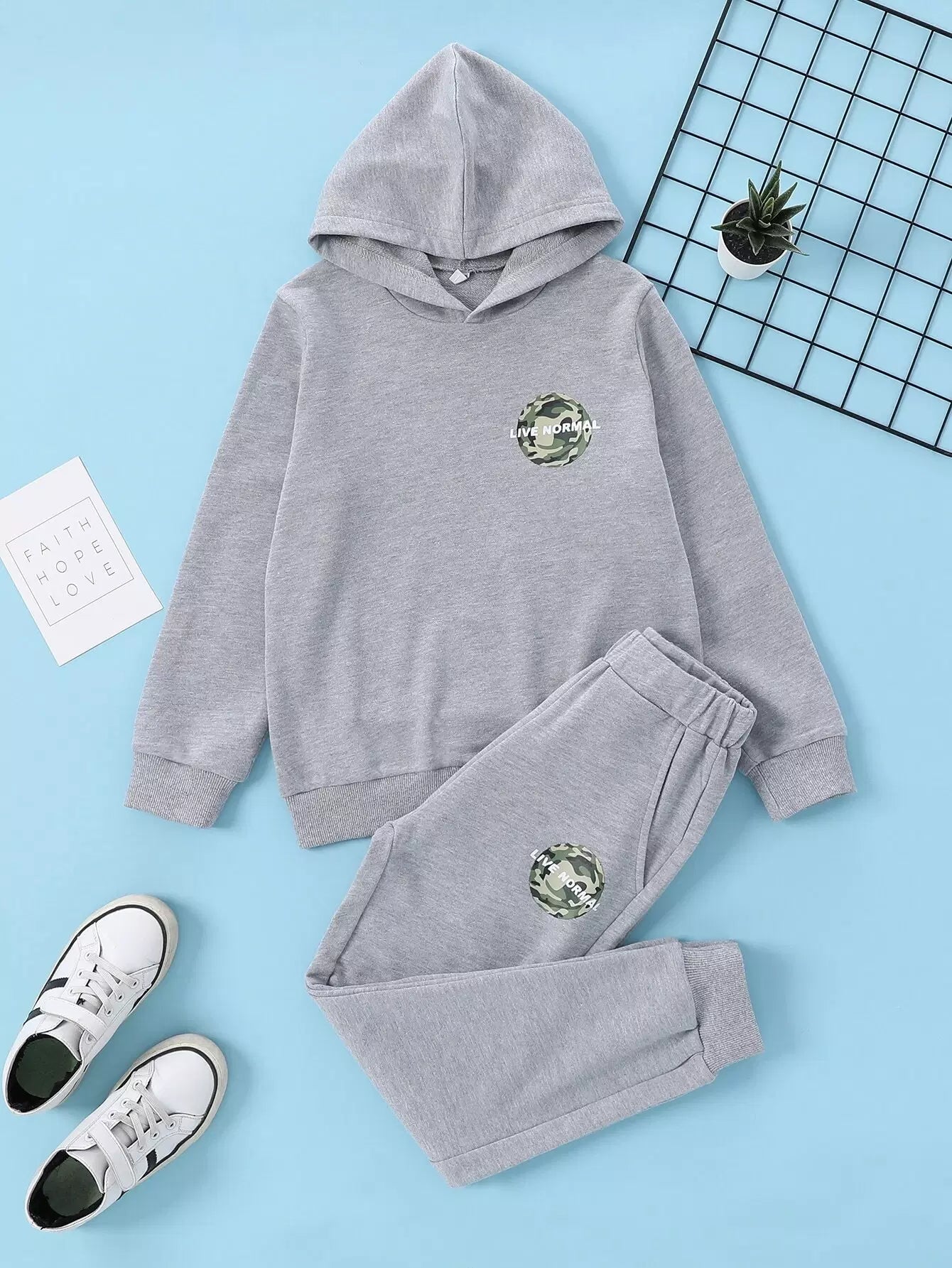 بنطلون بقلنسوة وبنطال رياضي بنقشة حروف وطبعة كامو للأولاد
