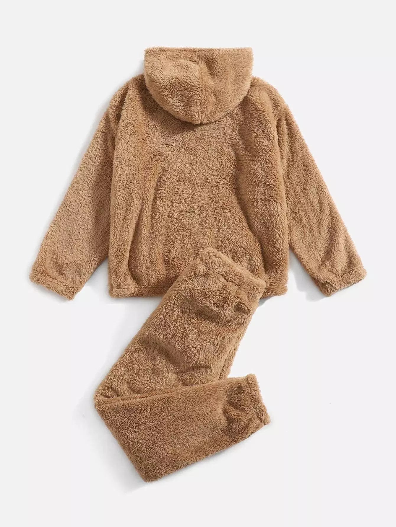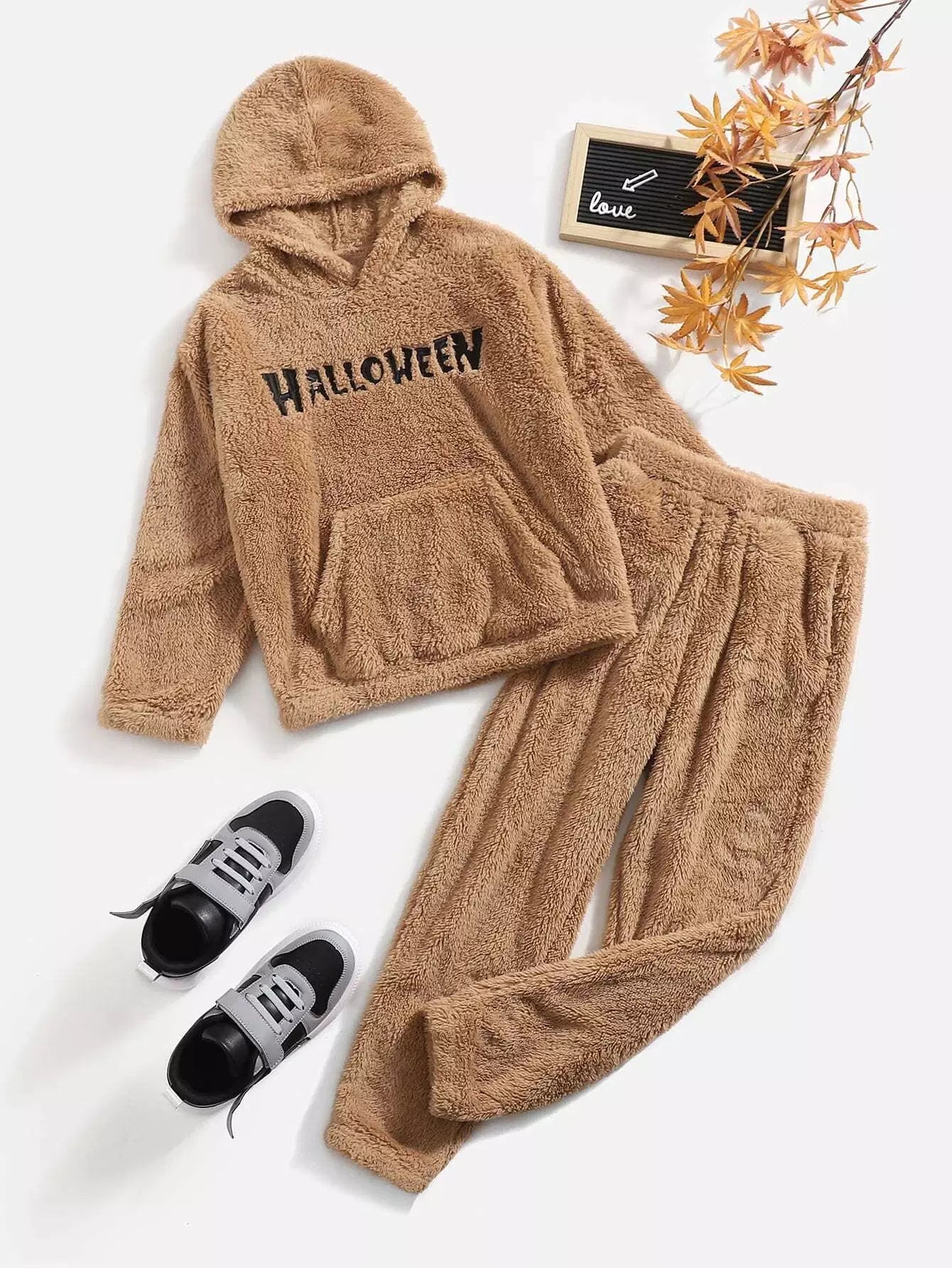 هودي وبنطلون من الصوف بجيب الكنغر مطرز بأحرف للأولاد