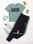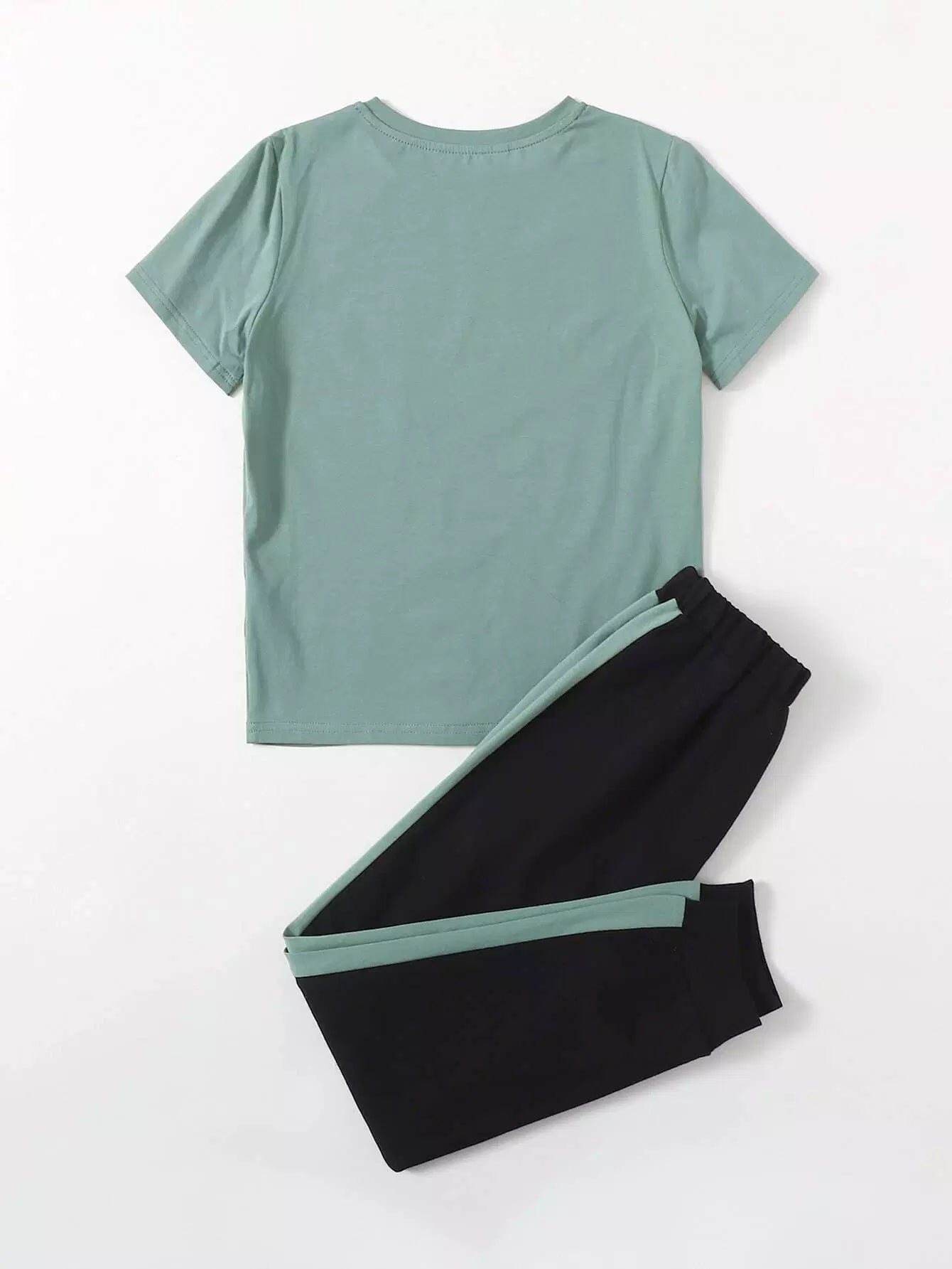 طقم تي شيرت برسومات الحروف وبنطلون رياضي مخطط جانبي بطبعات حيوانية للأولاد