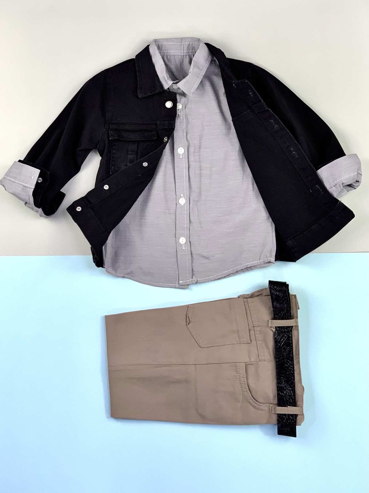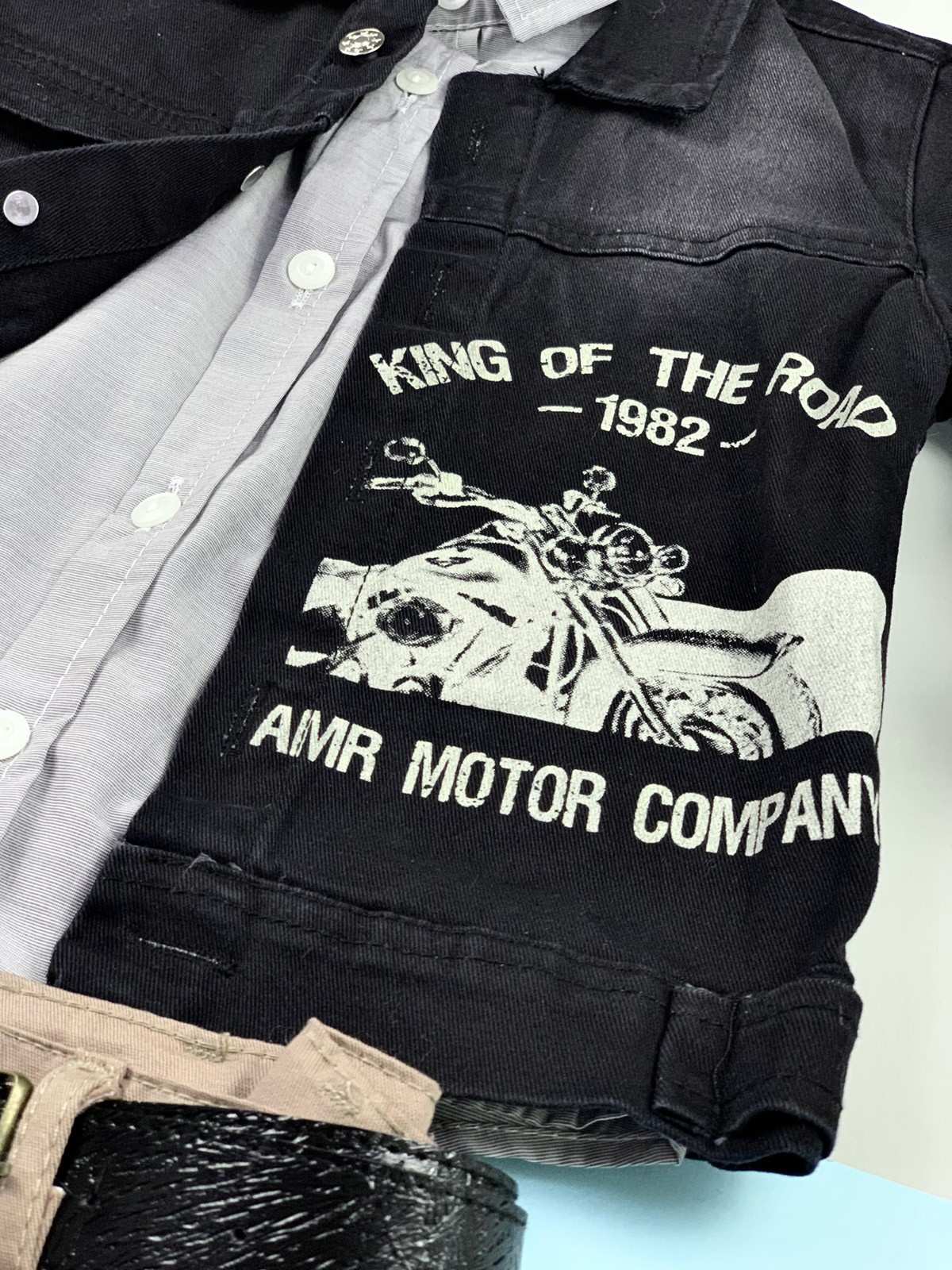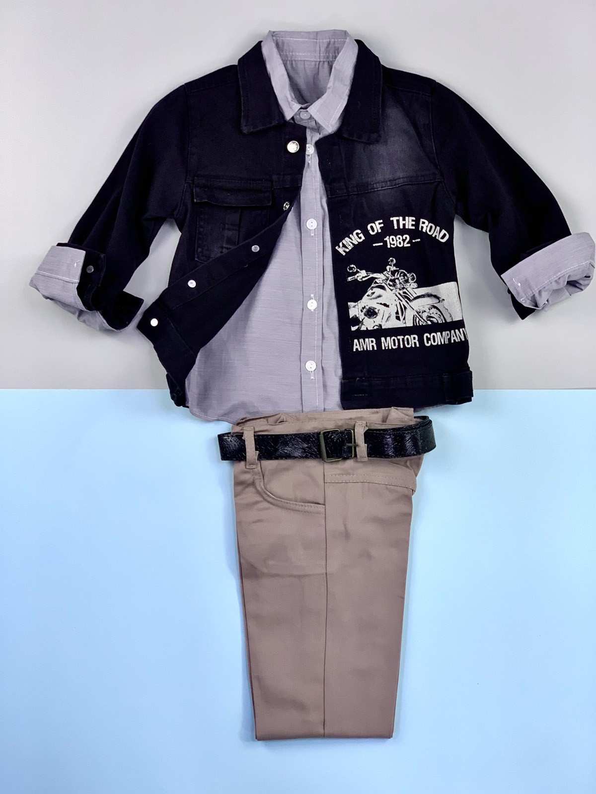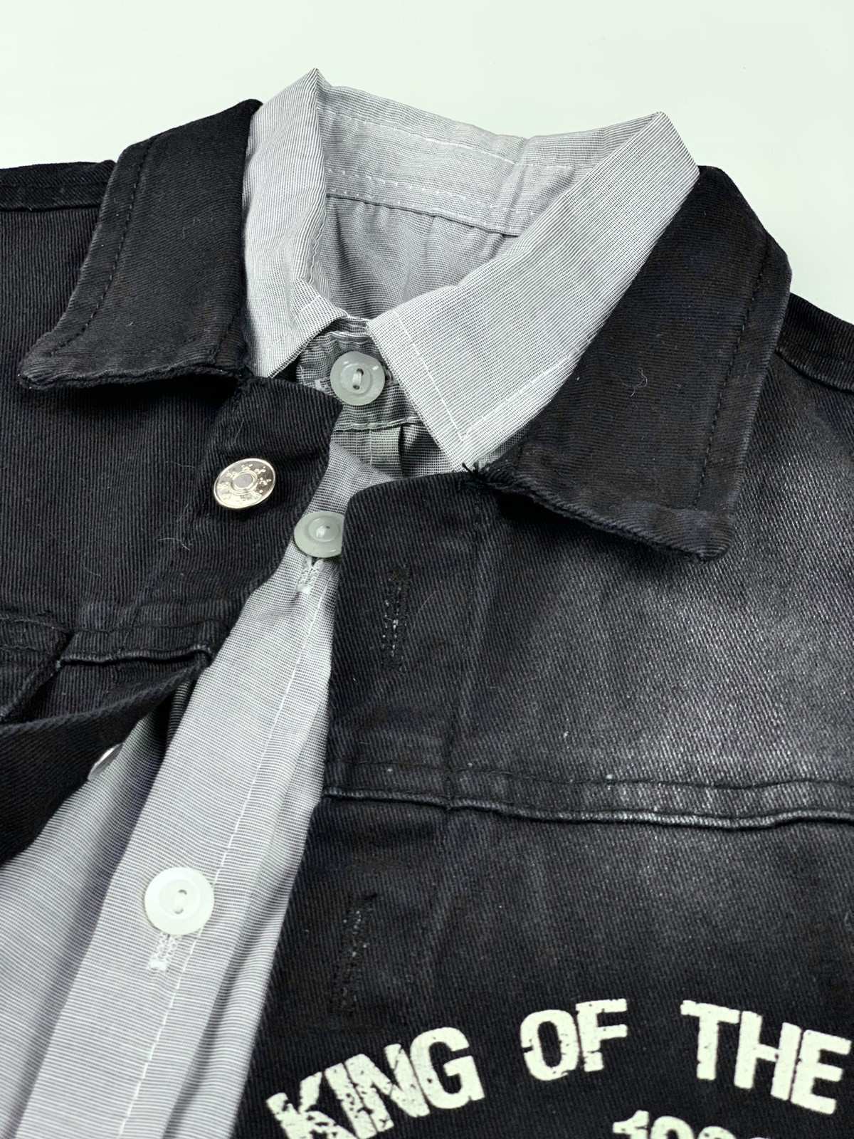 طقم للأولاد باللون الأزرق الداكن مع الملك. قميص