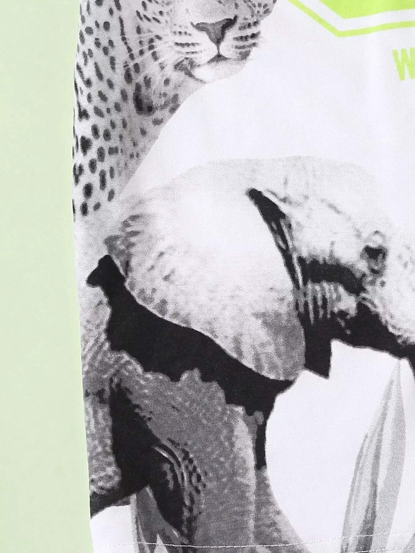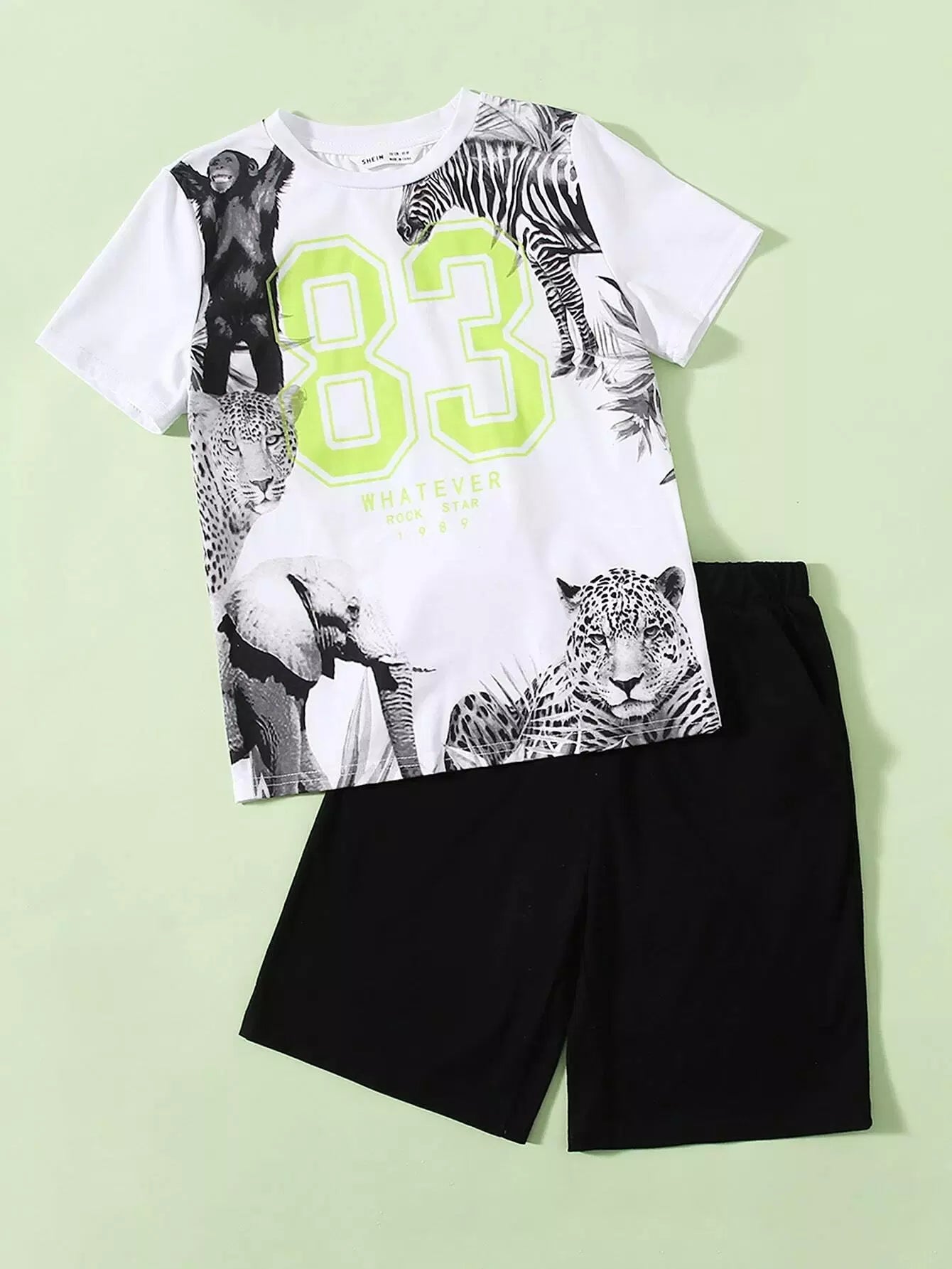 طقم بيجامة للأولاد بطبعة أرقام وحيوانات وشورت