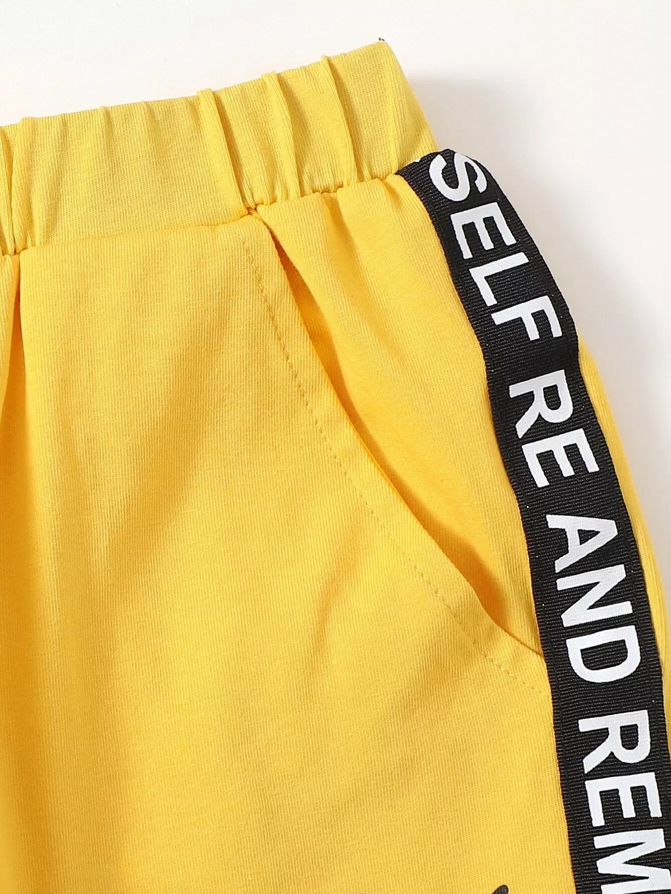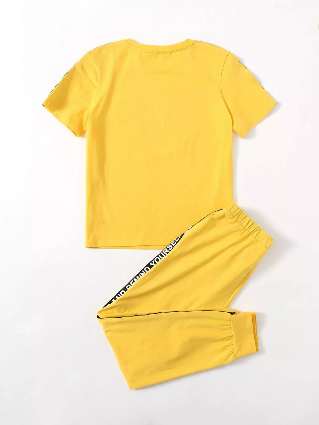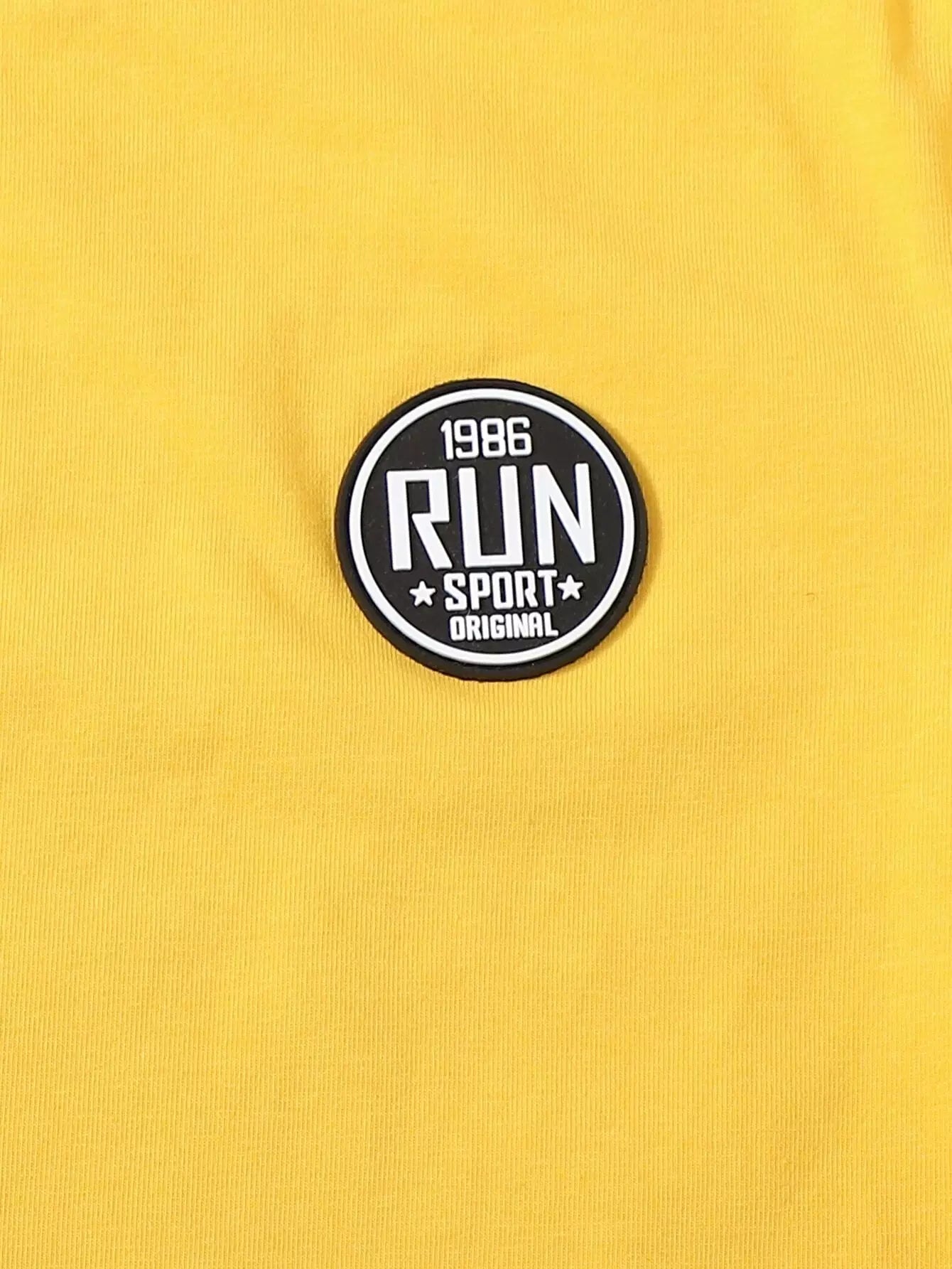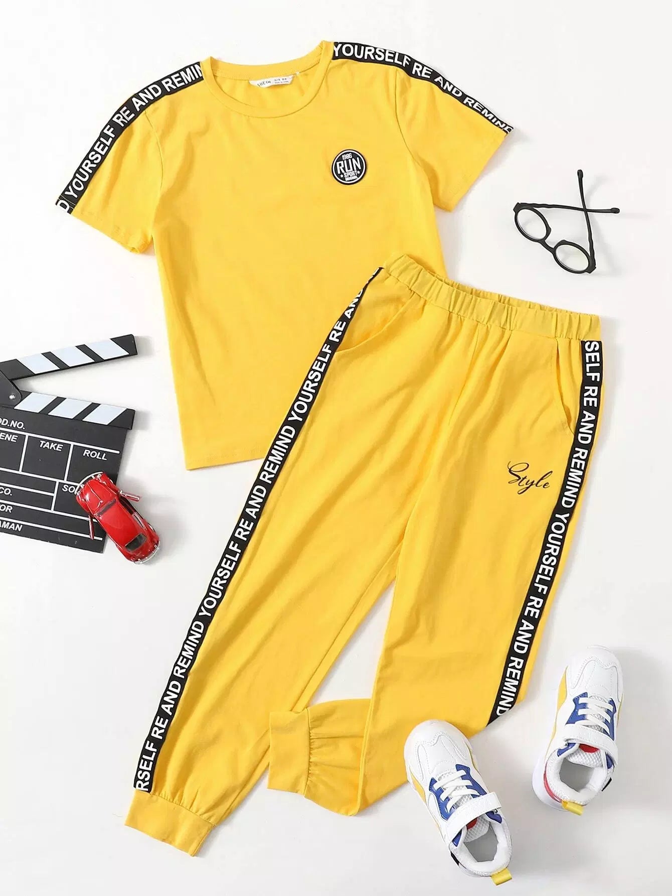 طقم من بلوزة وبنطلون رياضي بشريط جانبي مزين بحروف وتفاصيل مرقعة للأولاد