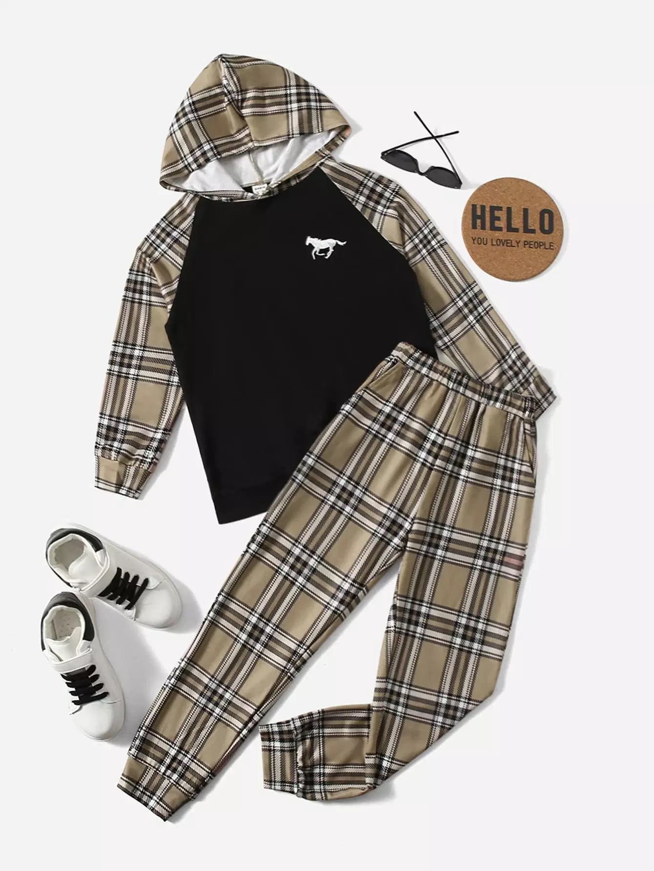 هودي وبنطال رياضي مطرز بحصان منقوش للأولاد