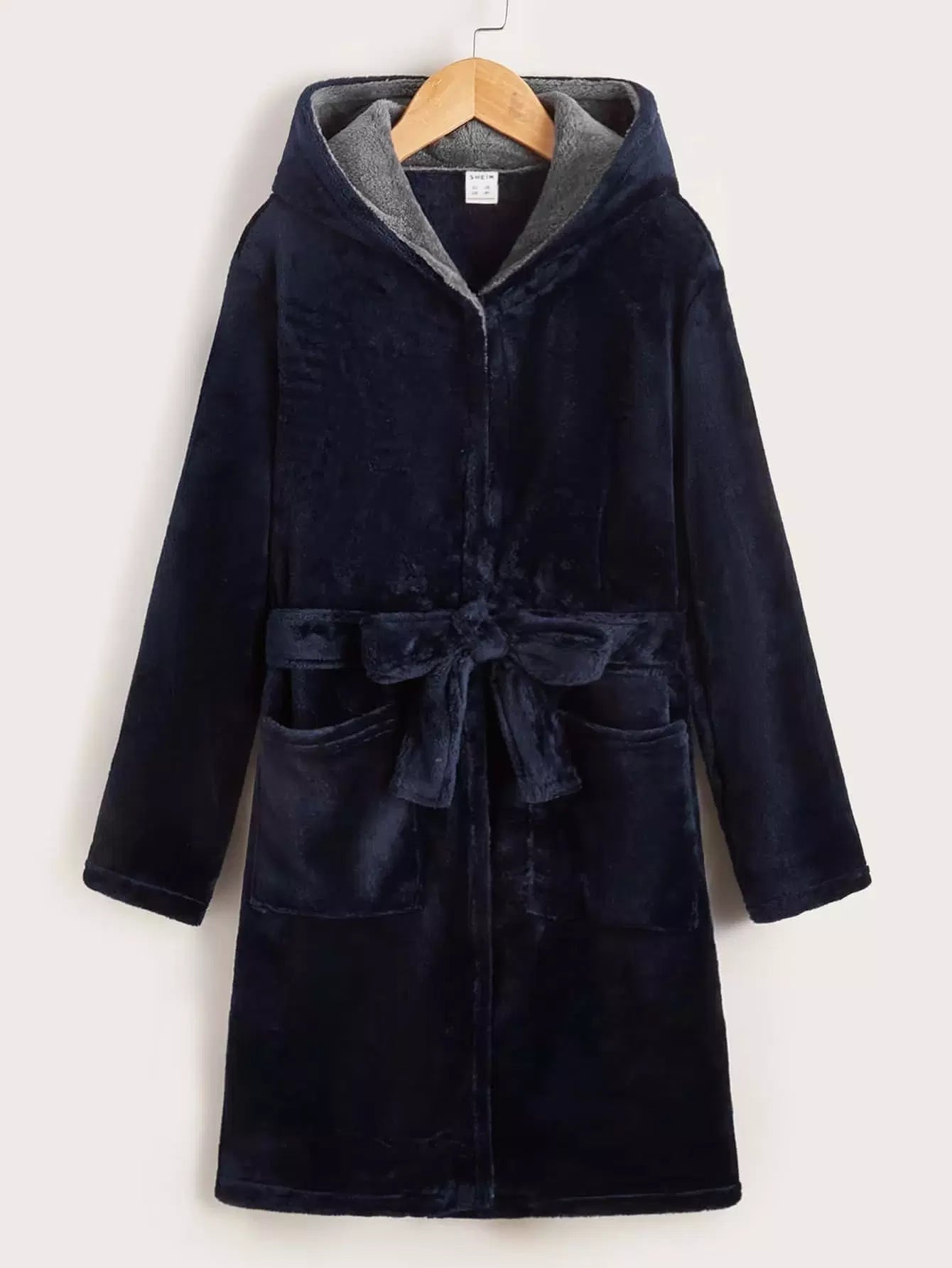 رداء فلانيل بغطاء للرأس مزود بجيب للأولاد بدون حزام