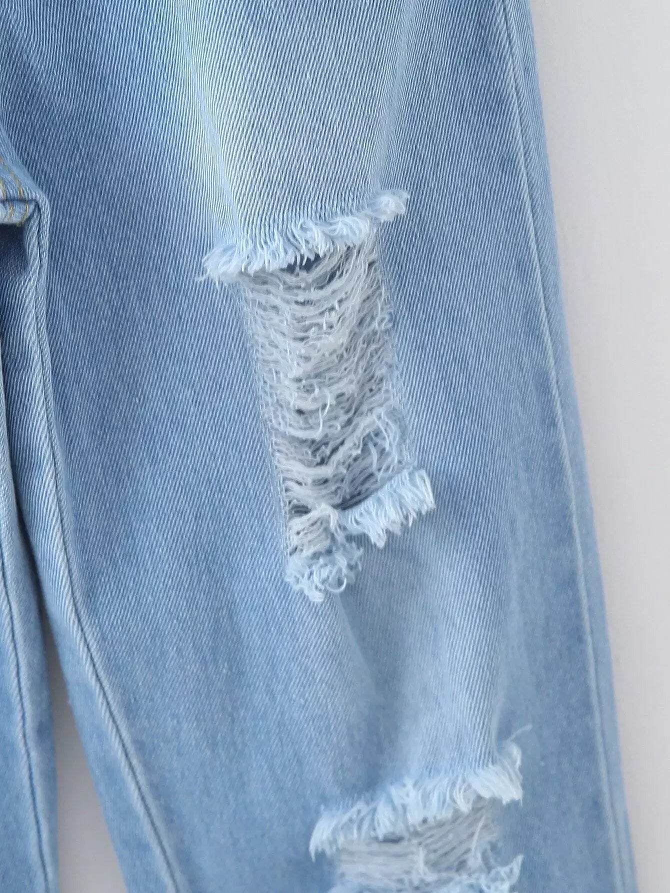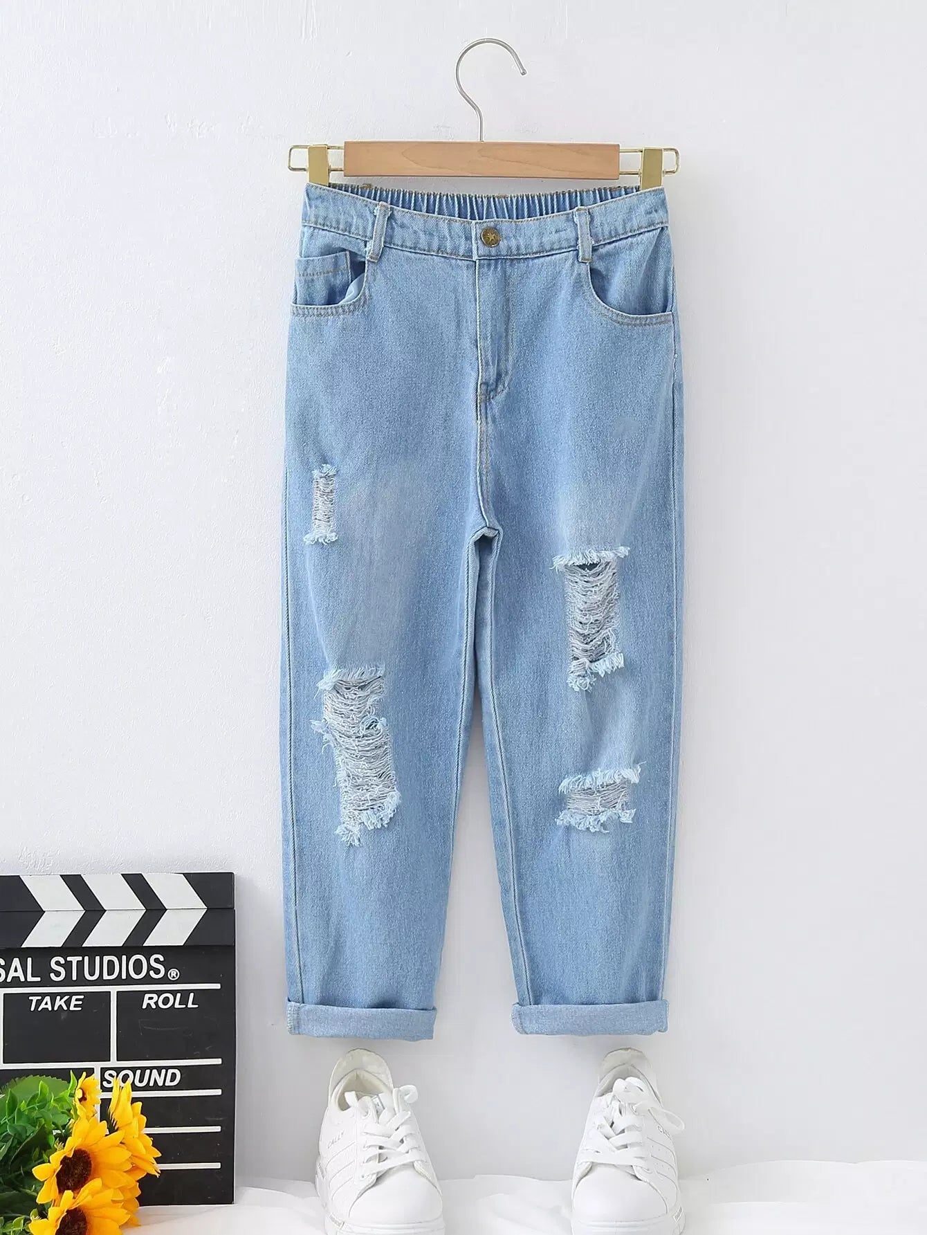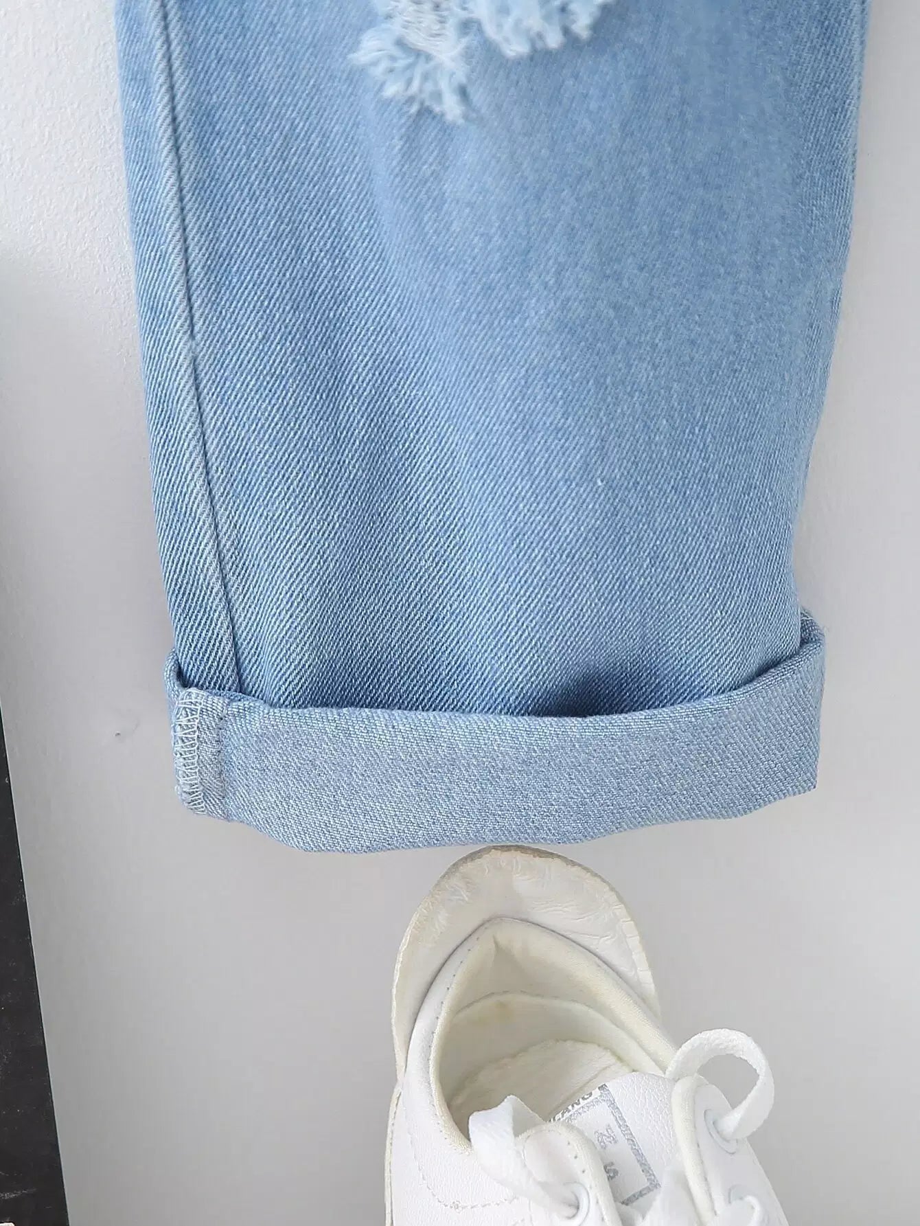بنطلون جينز ممزق مستقيم الساقين للأولاد