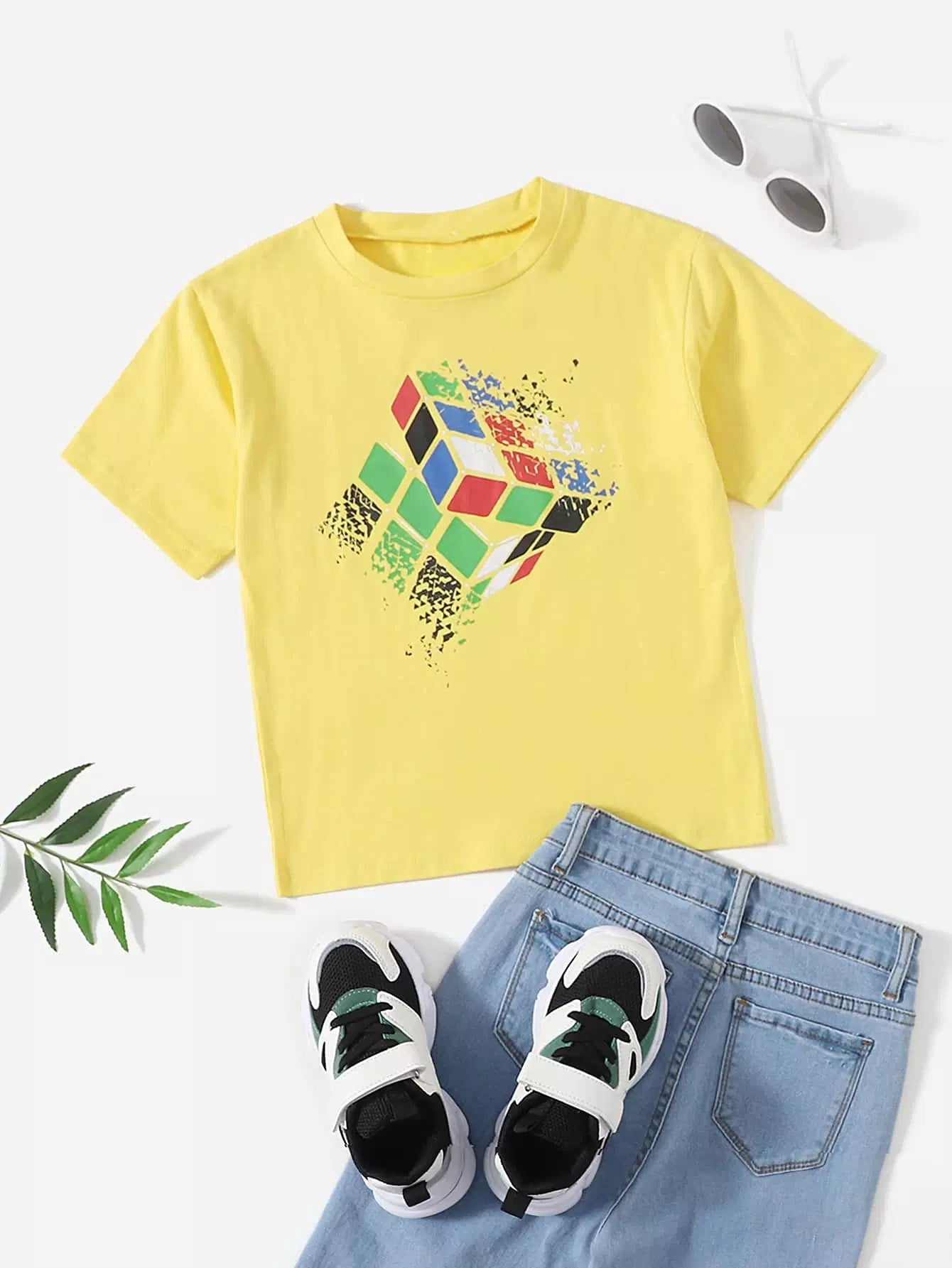 تي شيرت بطبعة مكعب روبيك للأولاد