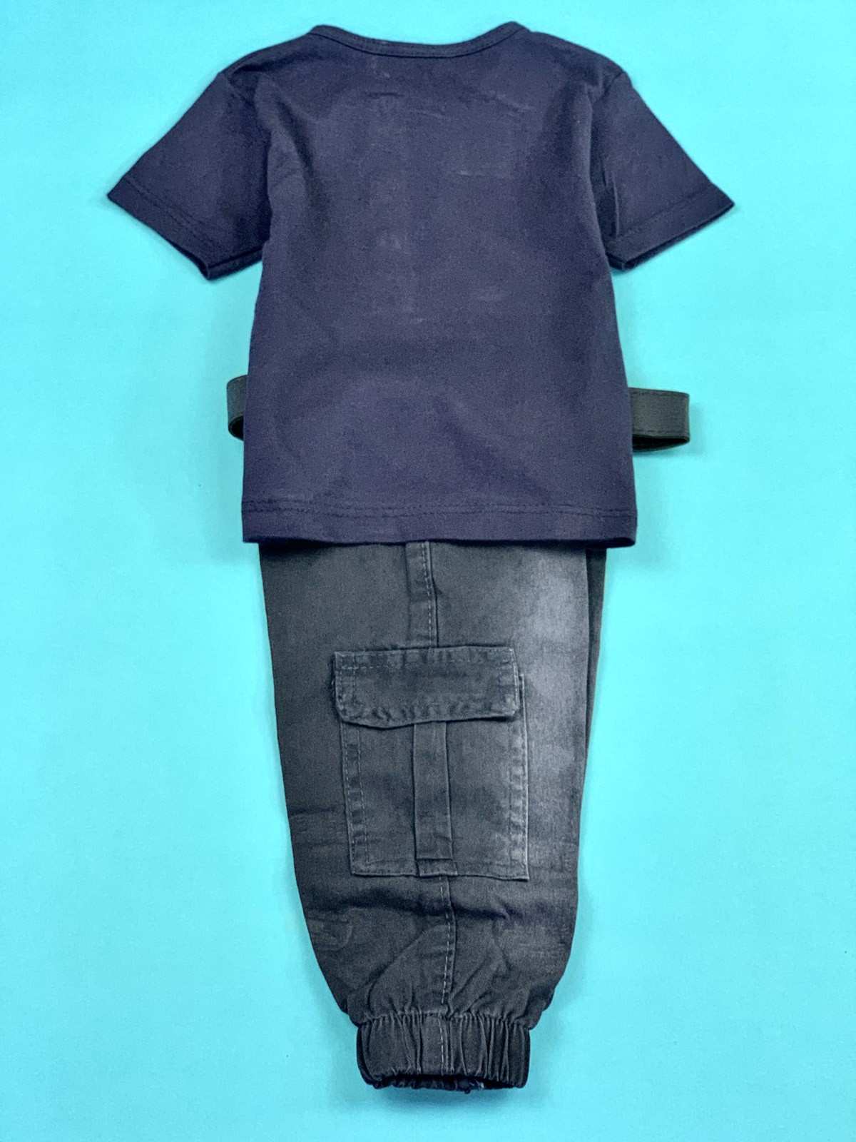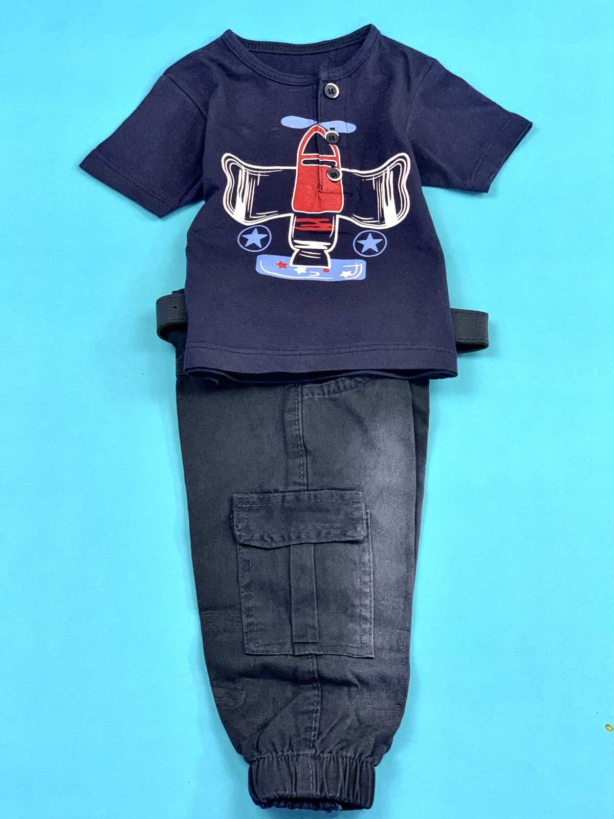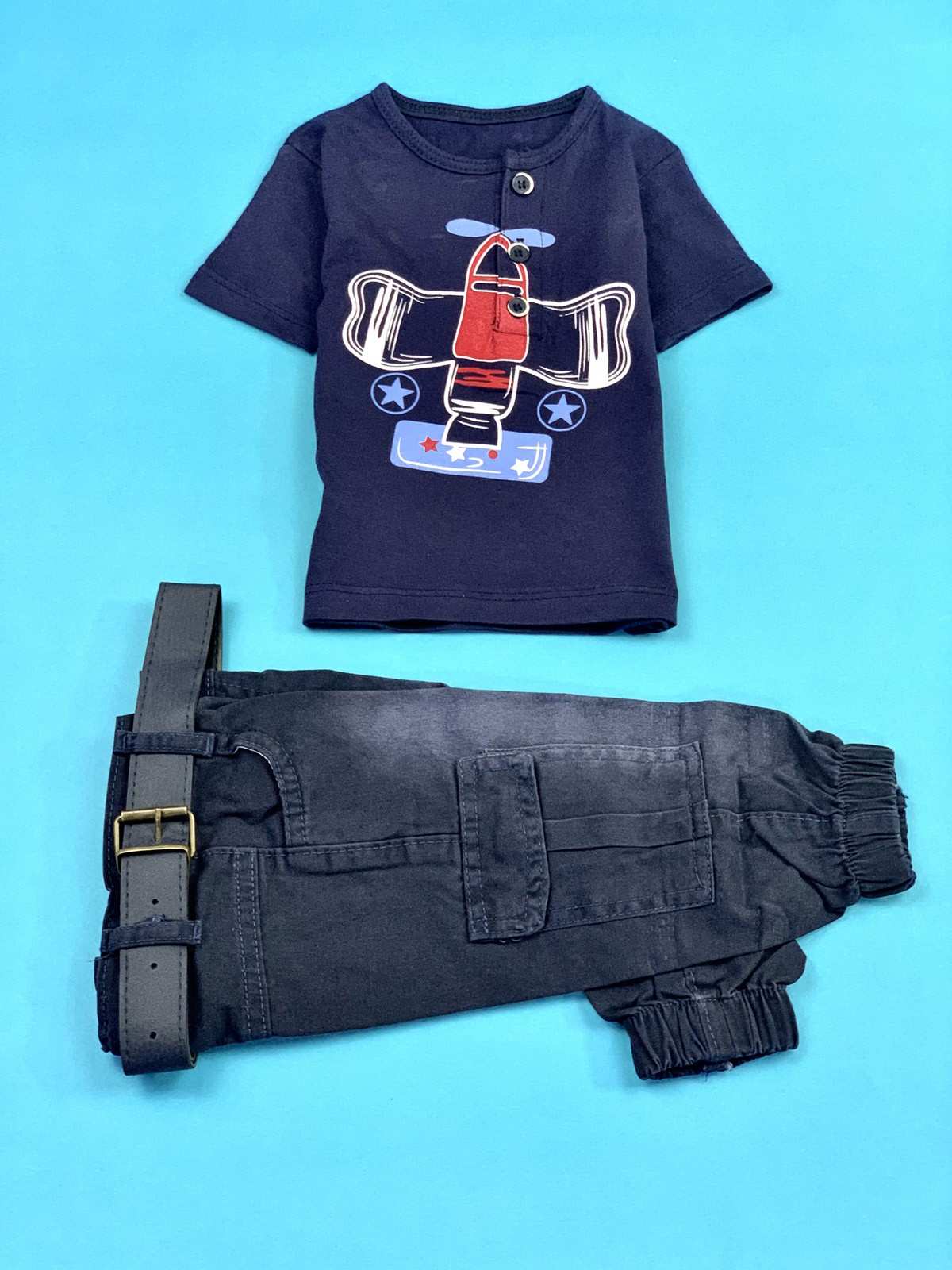 طقم ولادي جينز مع تي شيرت كحلي وطيار