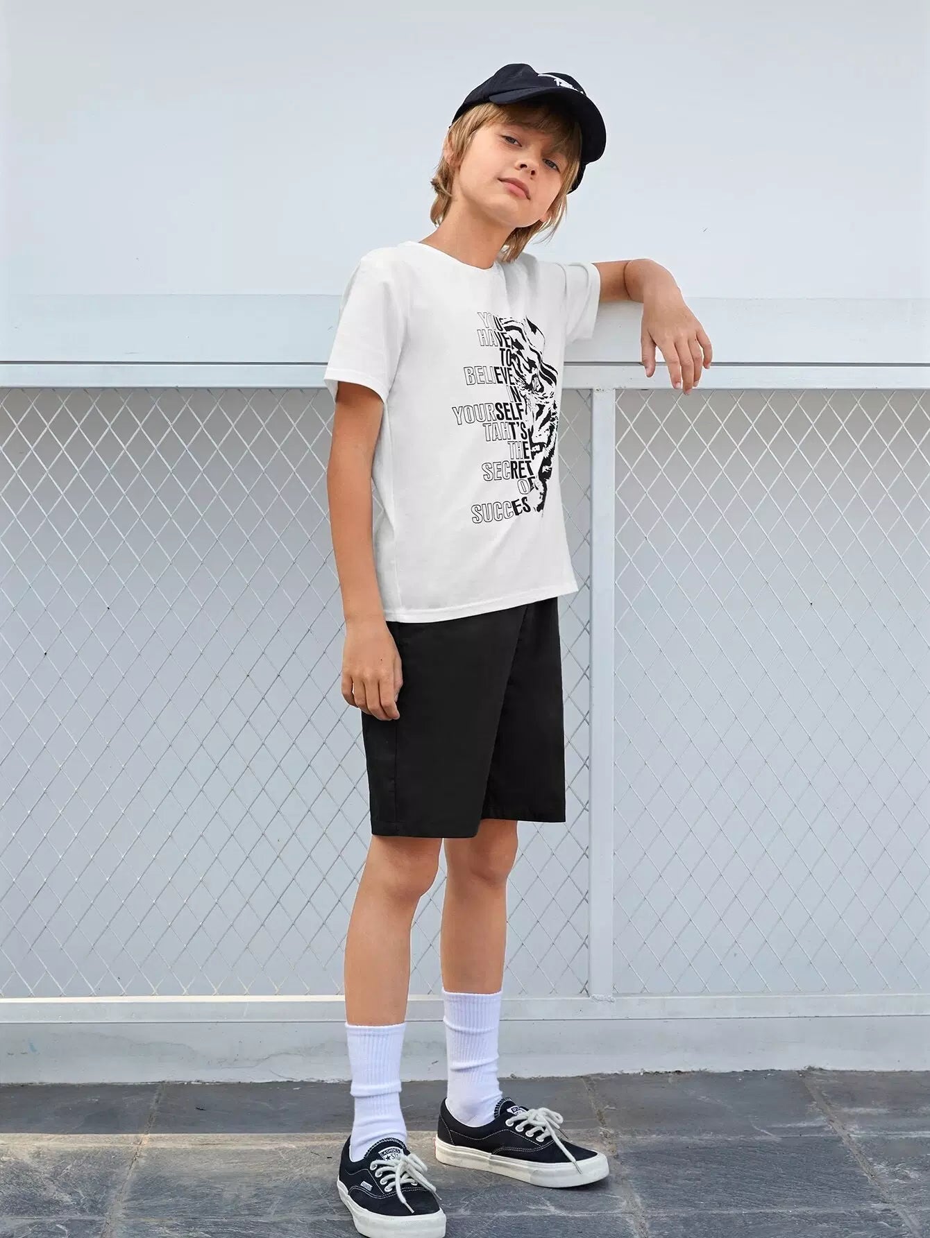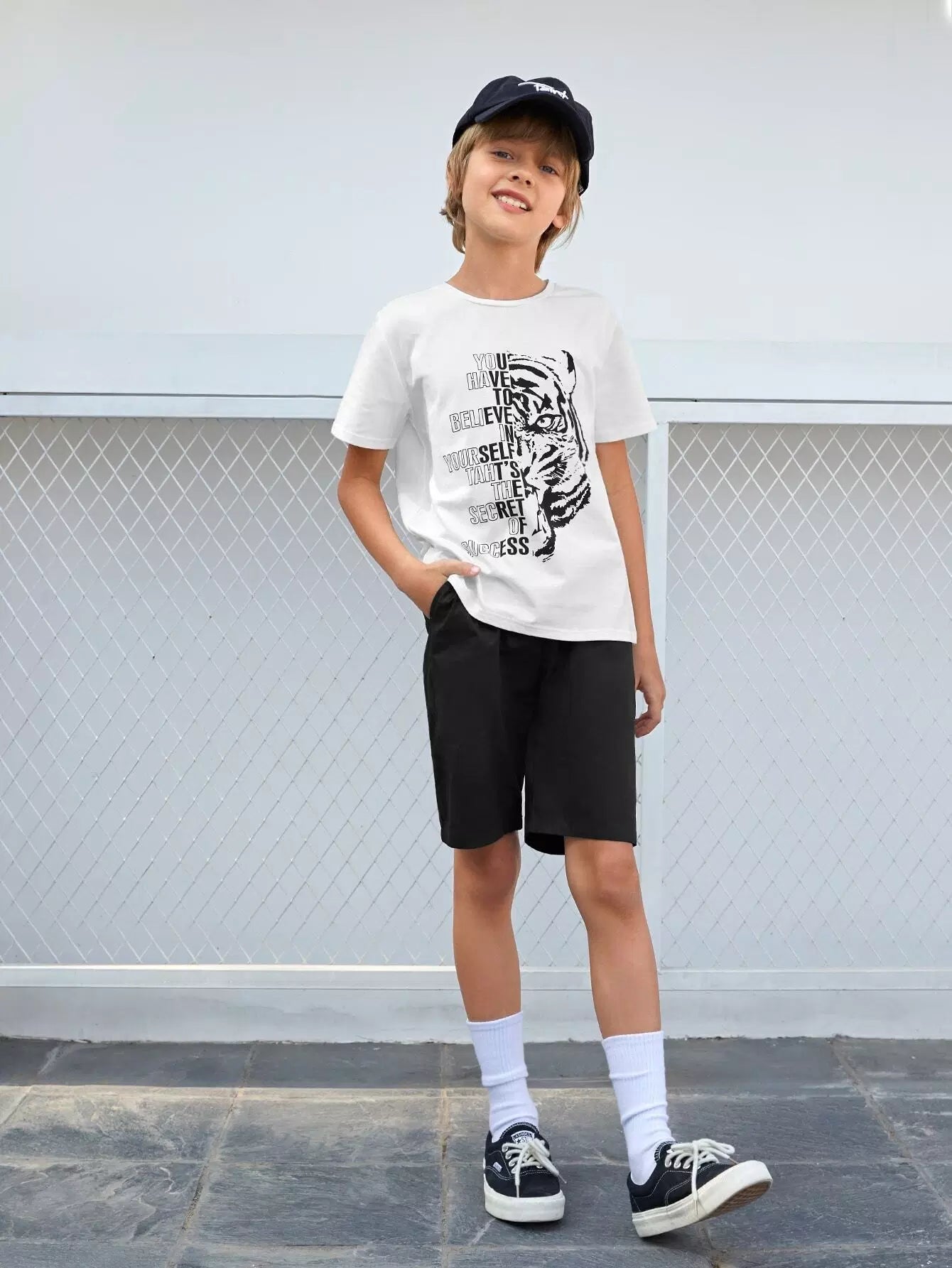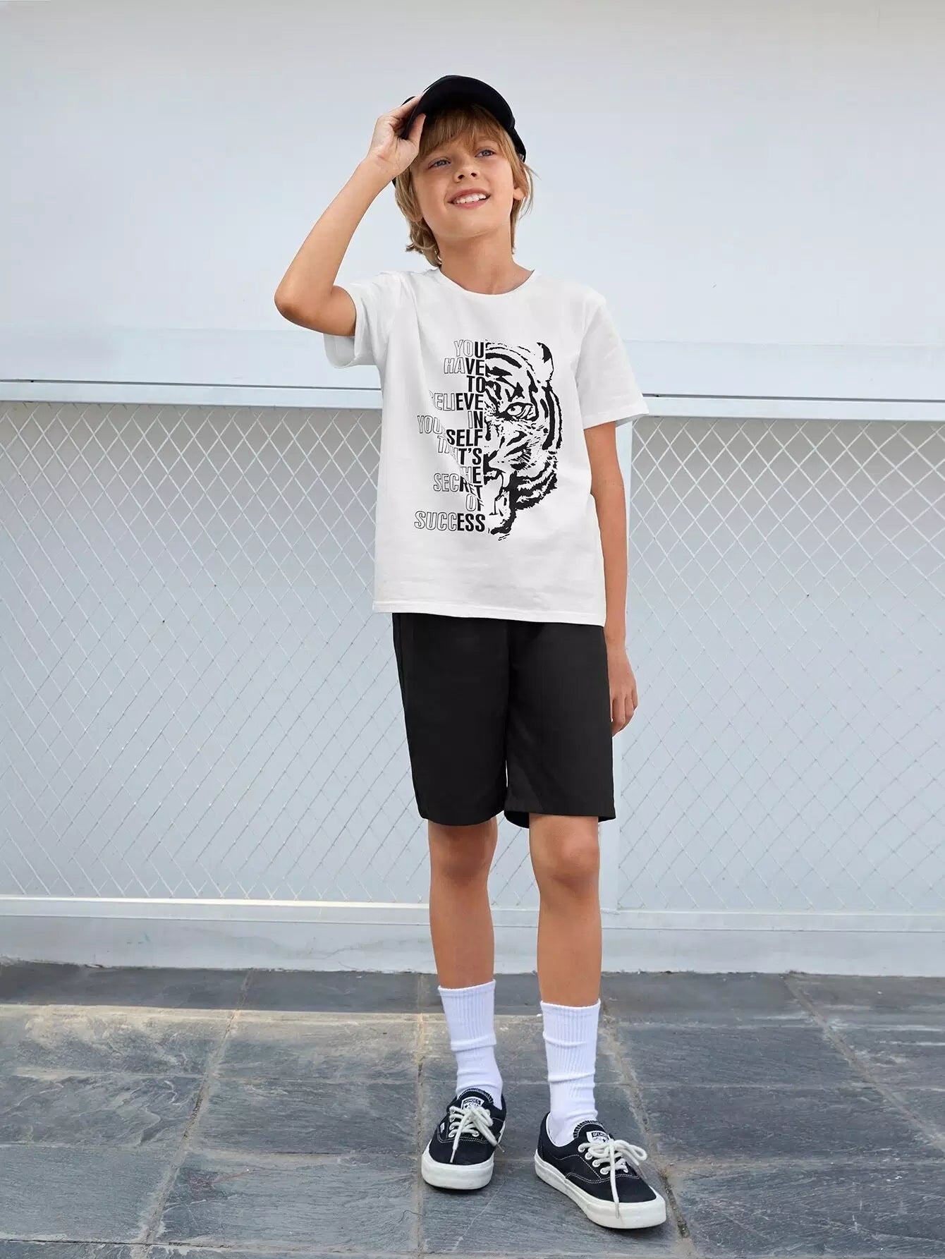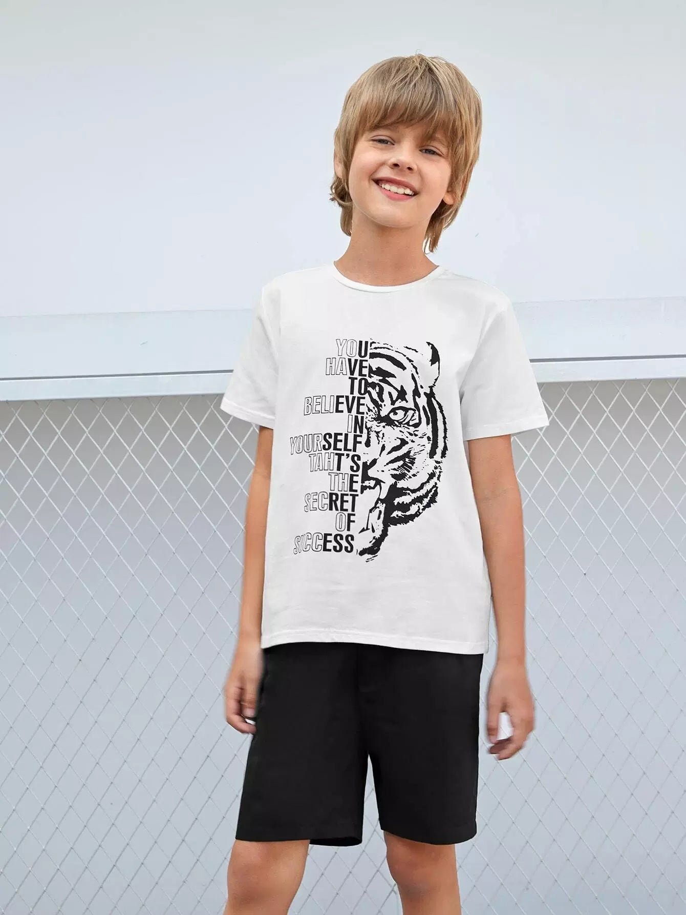 طقم شورت وقميص بطبعة شعار ونمر للأولاد