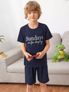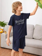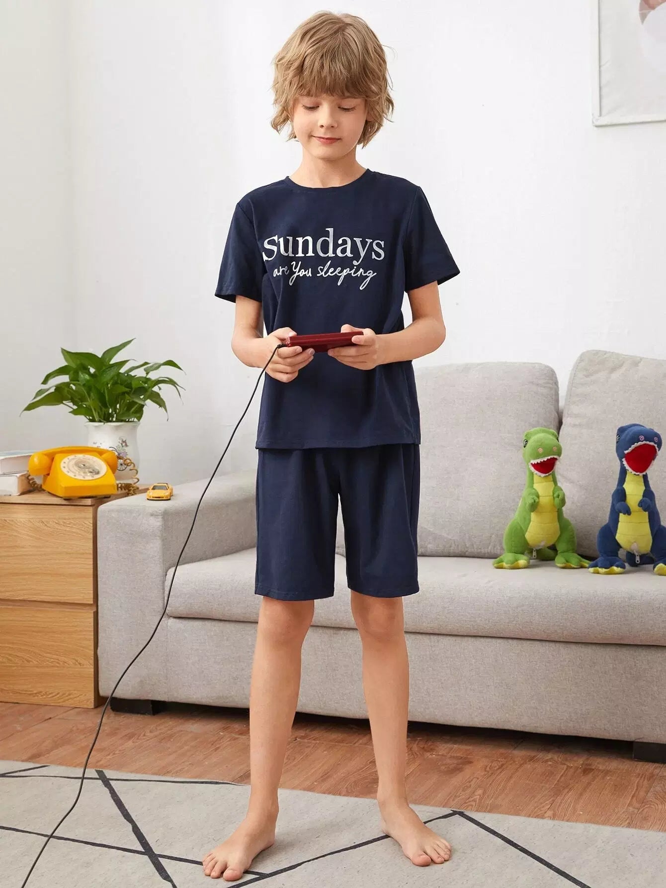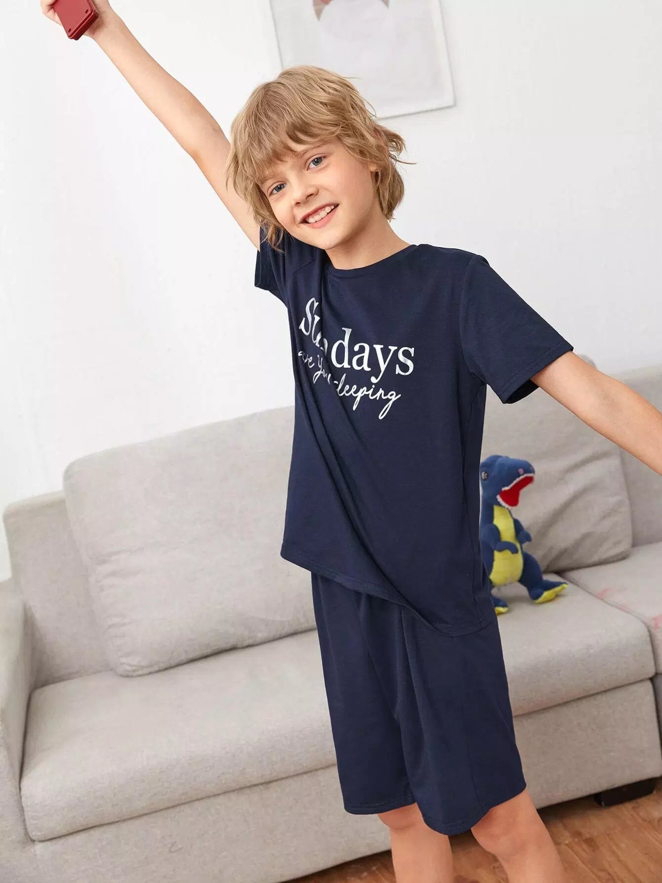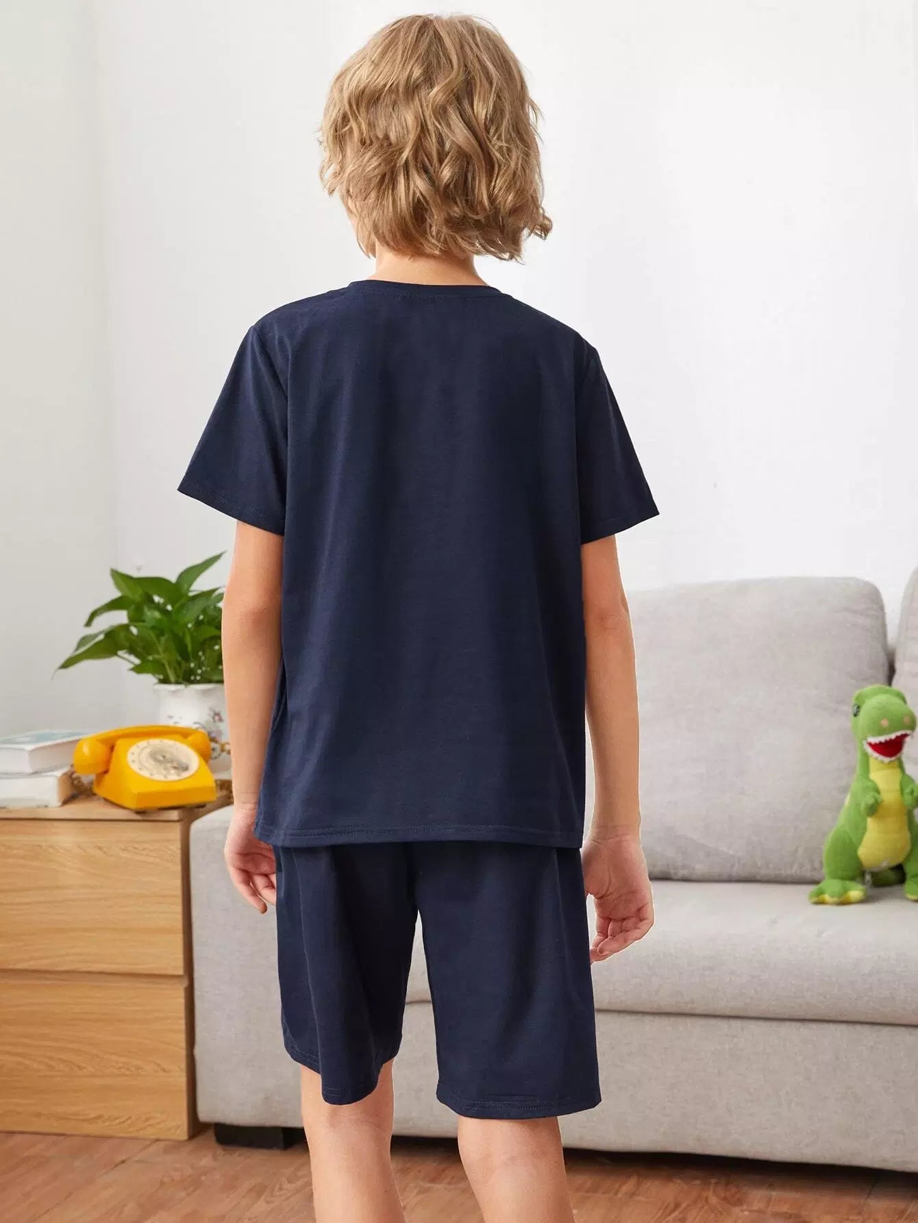 طقم بيجامة تي شيرت وشورت رياضي بشعار جرافيكي للأولاد