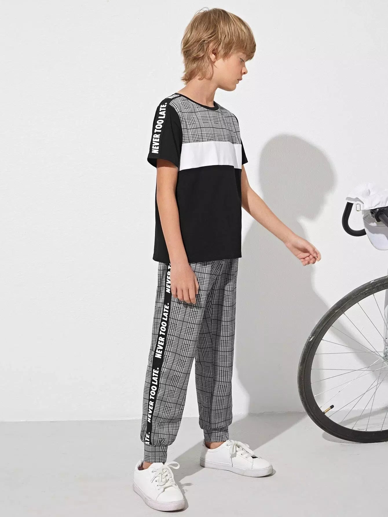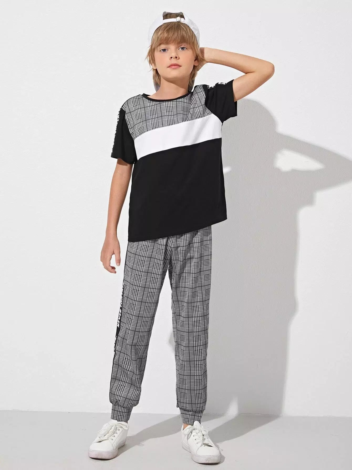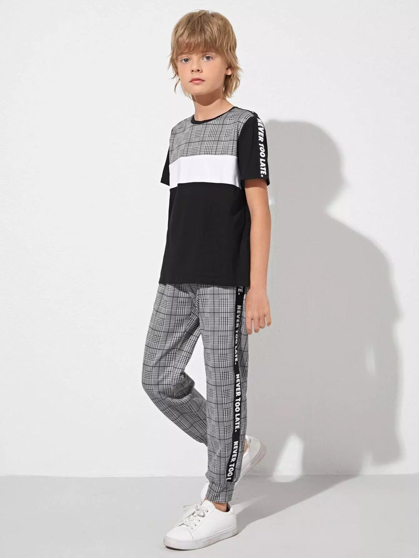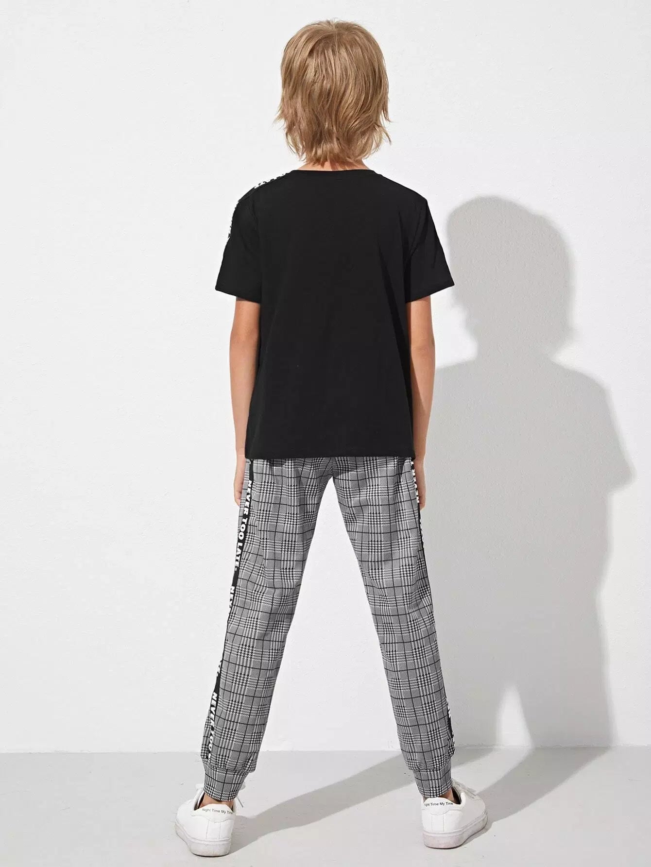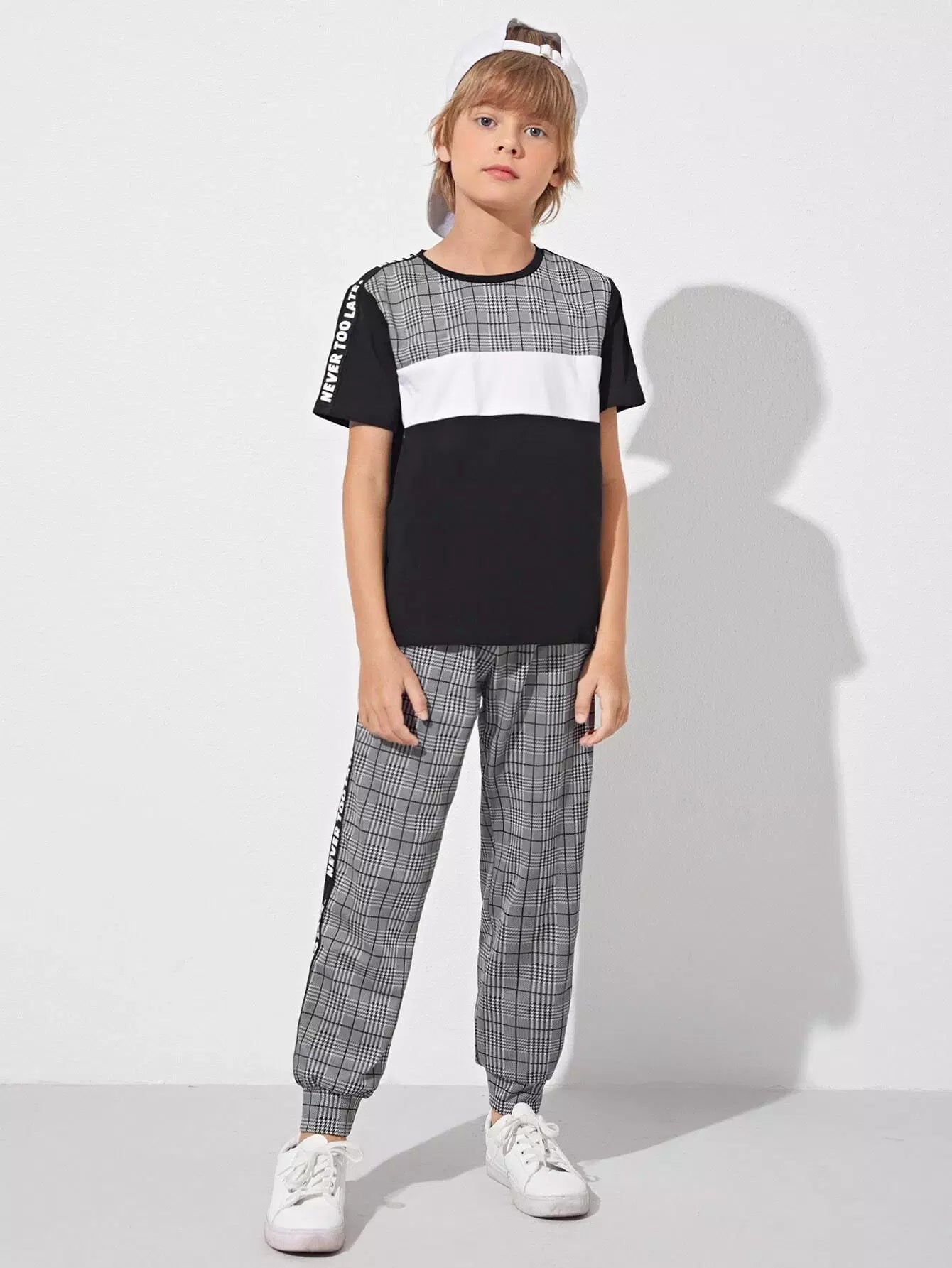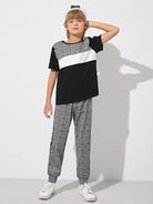 طقم تي شيرت وبنطلون رياضي بشعار جانبي من Glen Plaid للأولاد