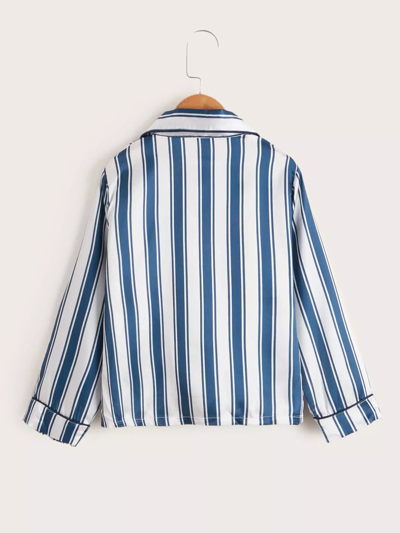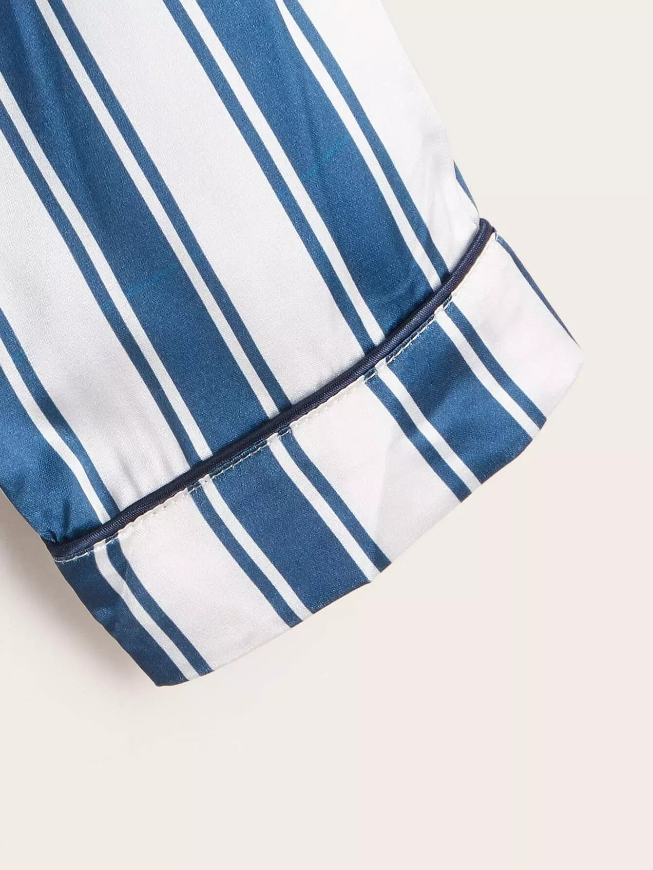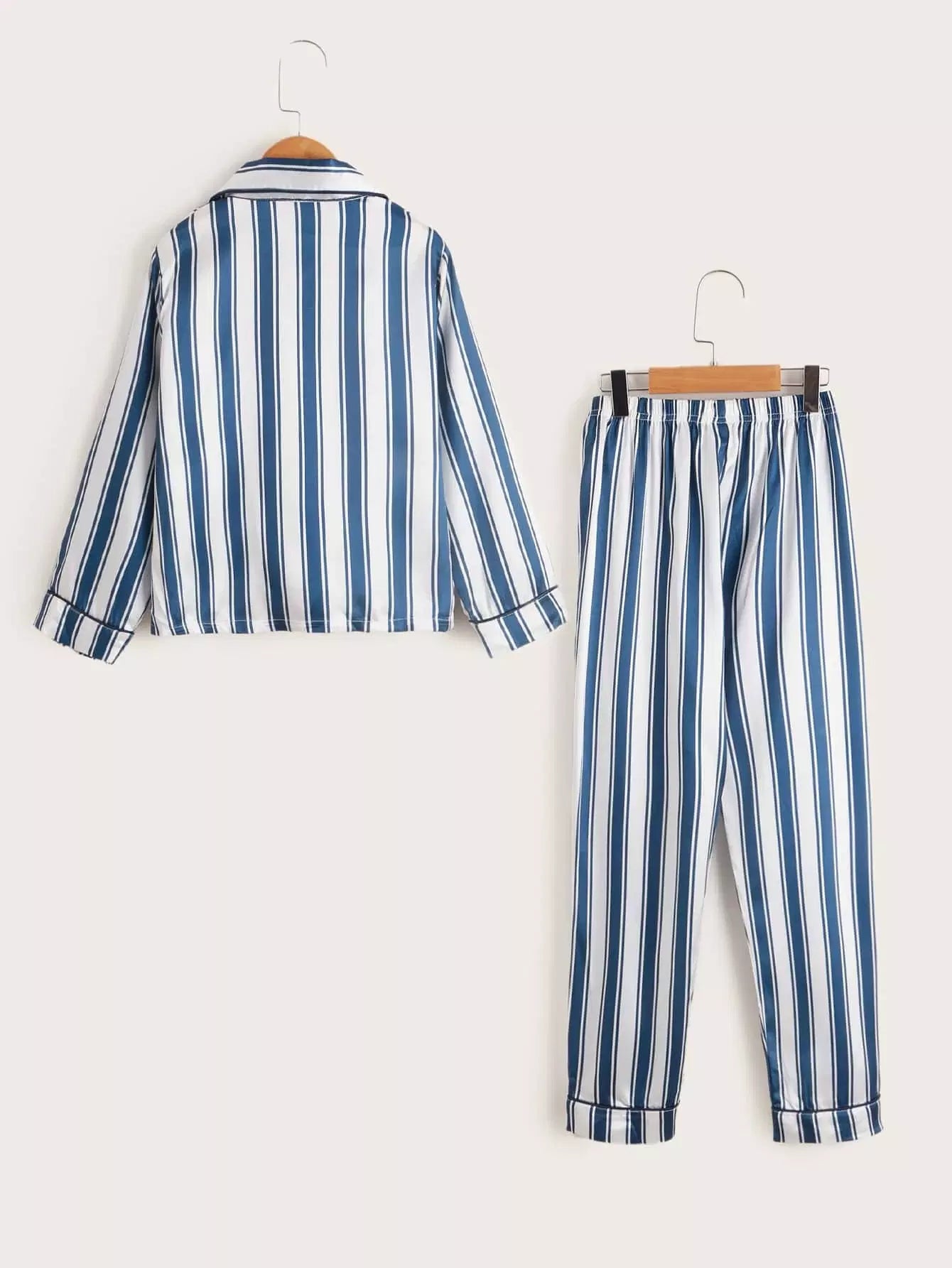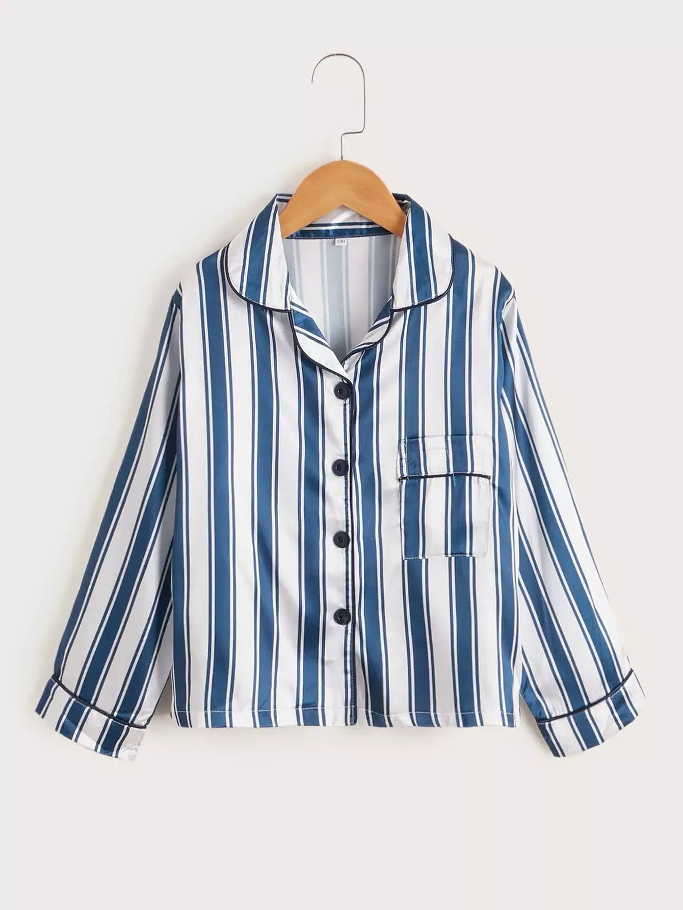 طقم بيجامة بنين مخطط مخطط بفتحة جيب بتفاصيل مخططة بلون مغاير