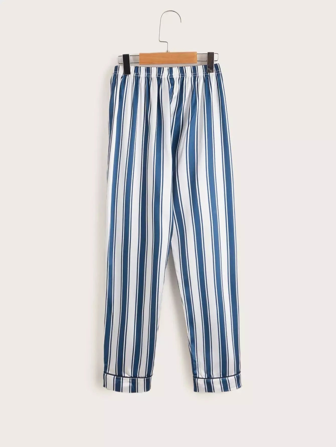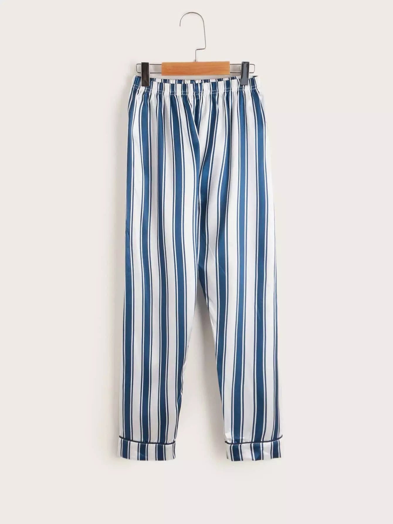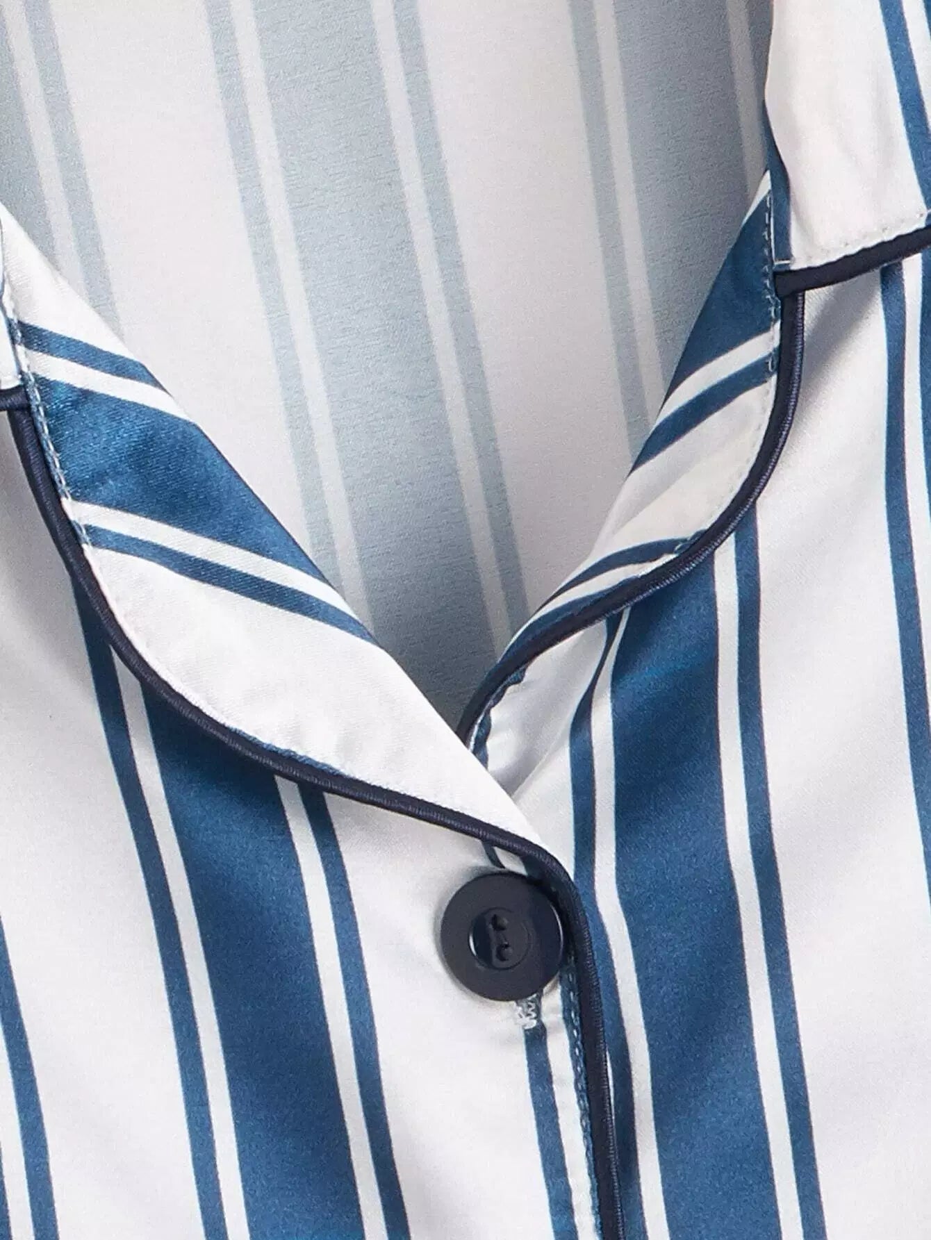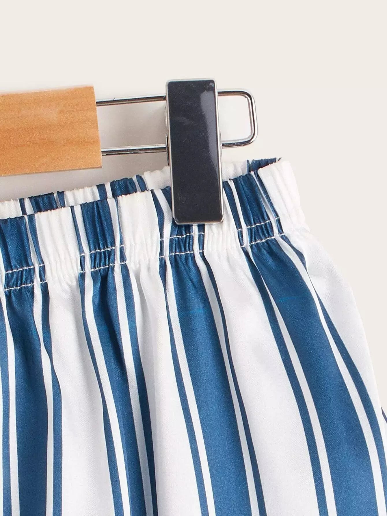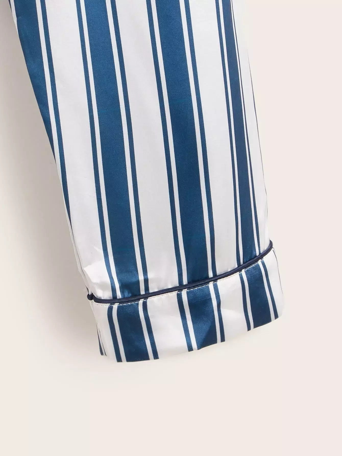 طقم بيجامة بنين مخطط مخطط بفتحة جيب بتفاصيل مخططة بلون مغاير