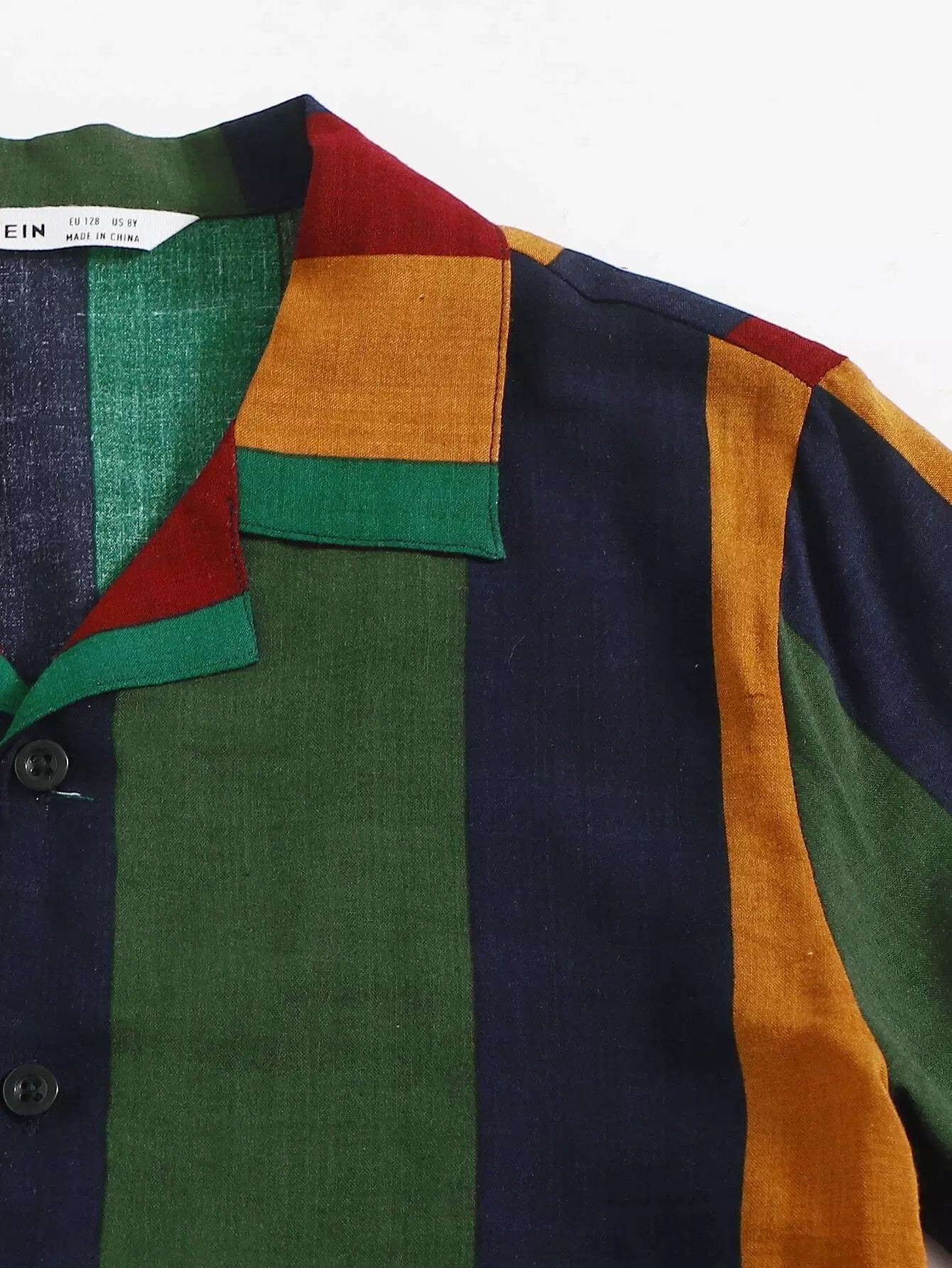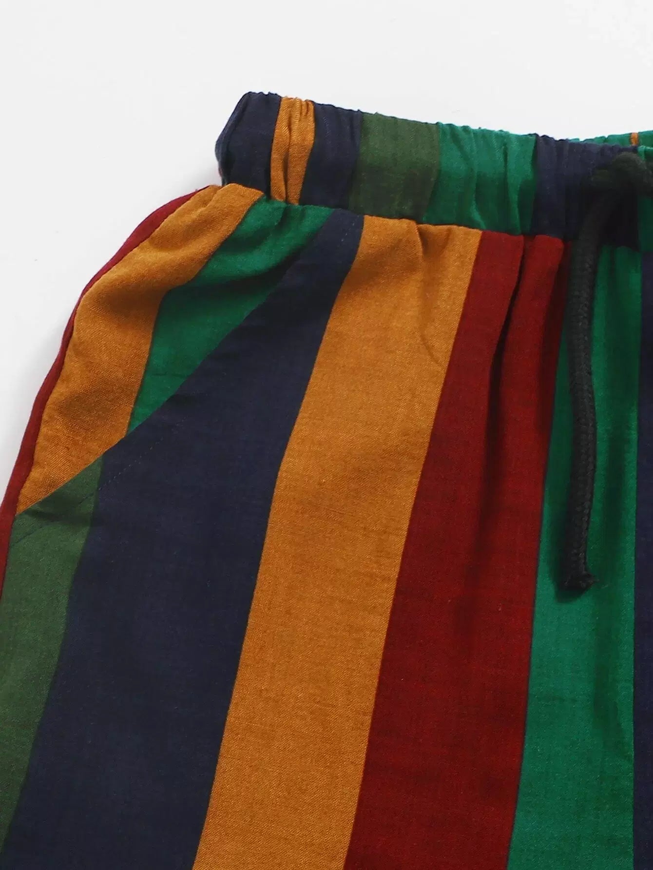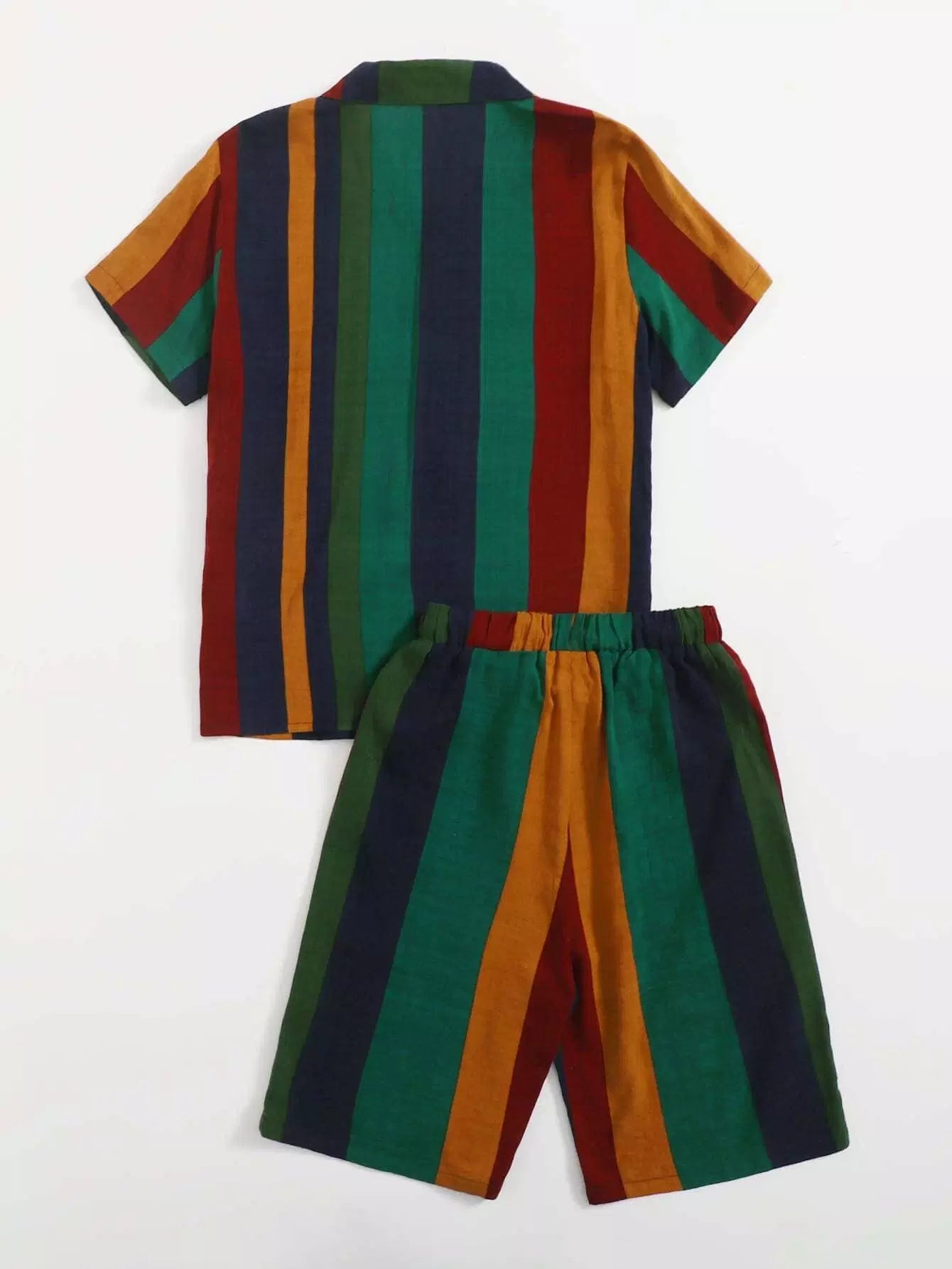 طقم قميص مخطط وشورت بجيوب مائلة للأولاد