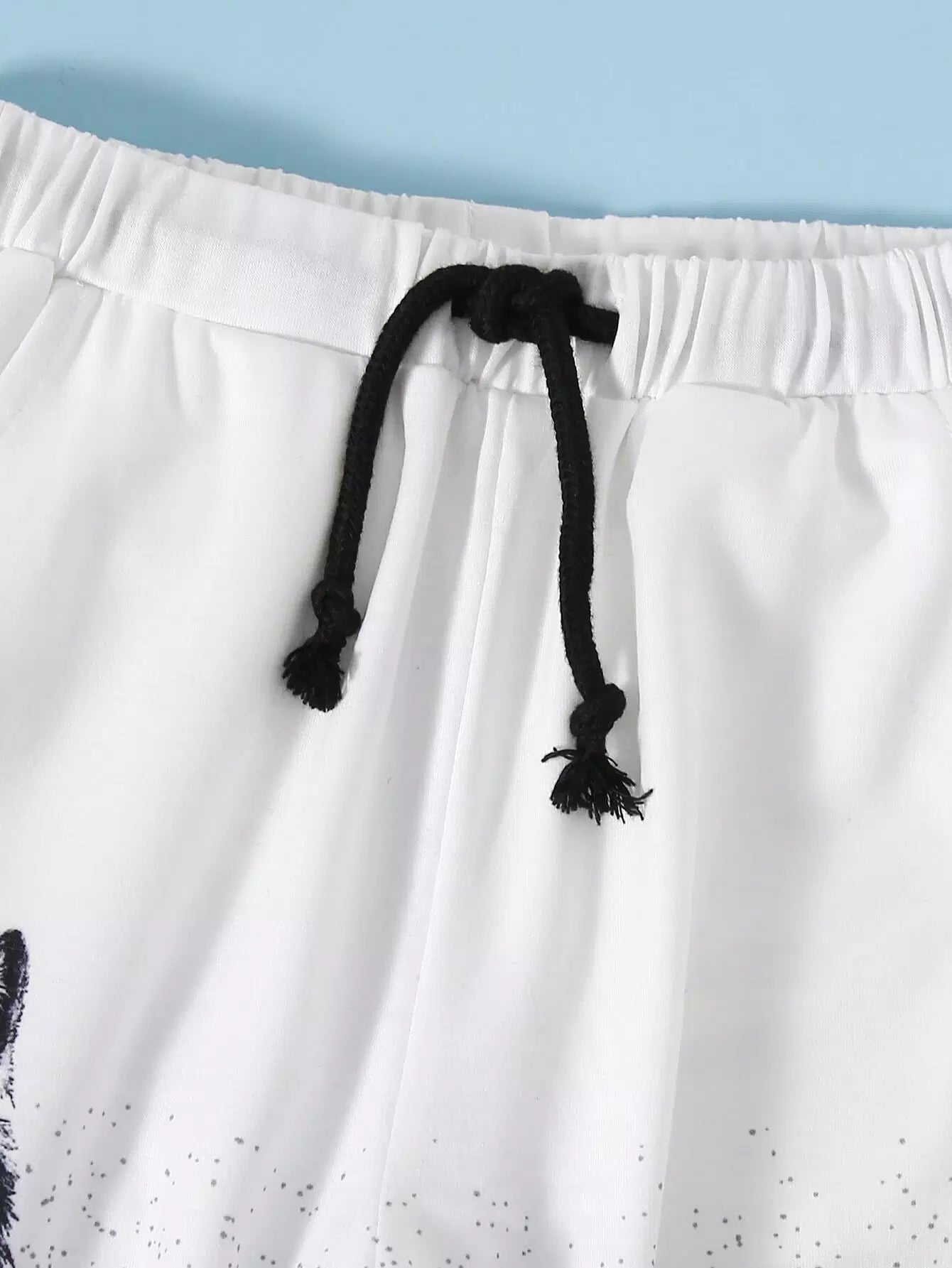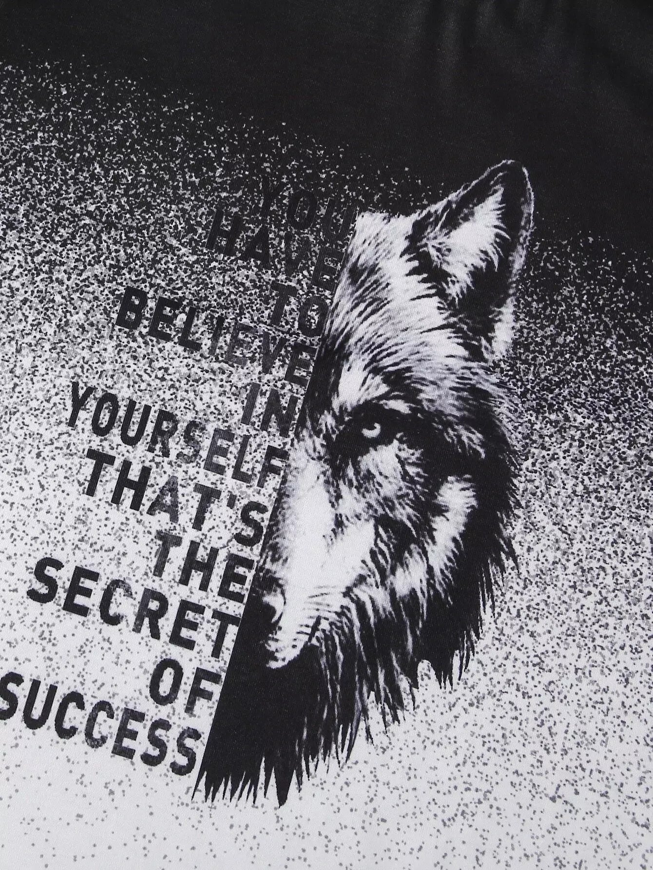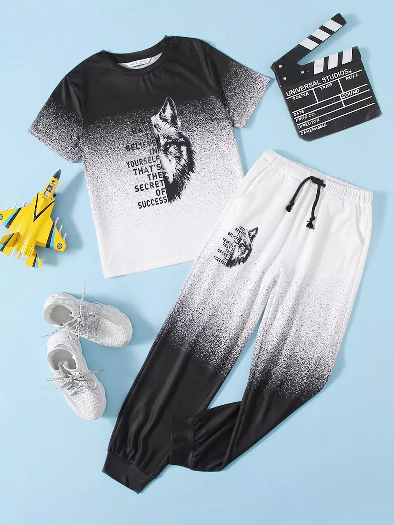 طقم قميص وبنطلون رياضي برسومات ذئب وشعار للأولاد