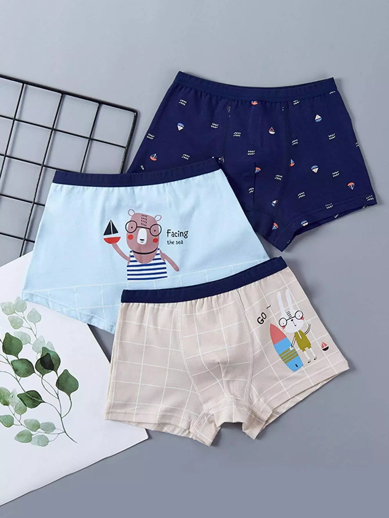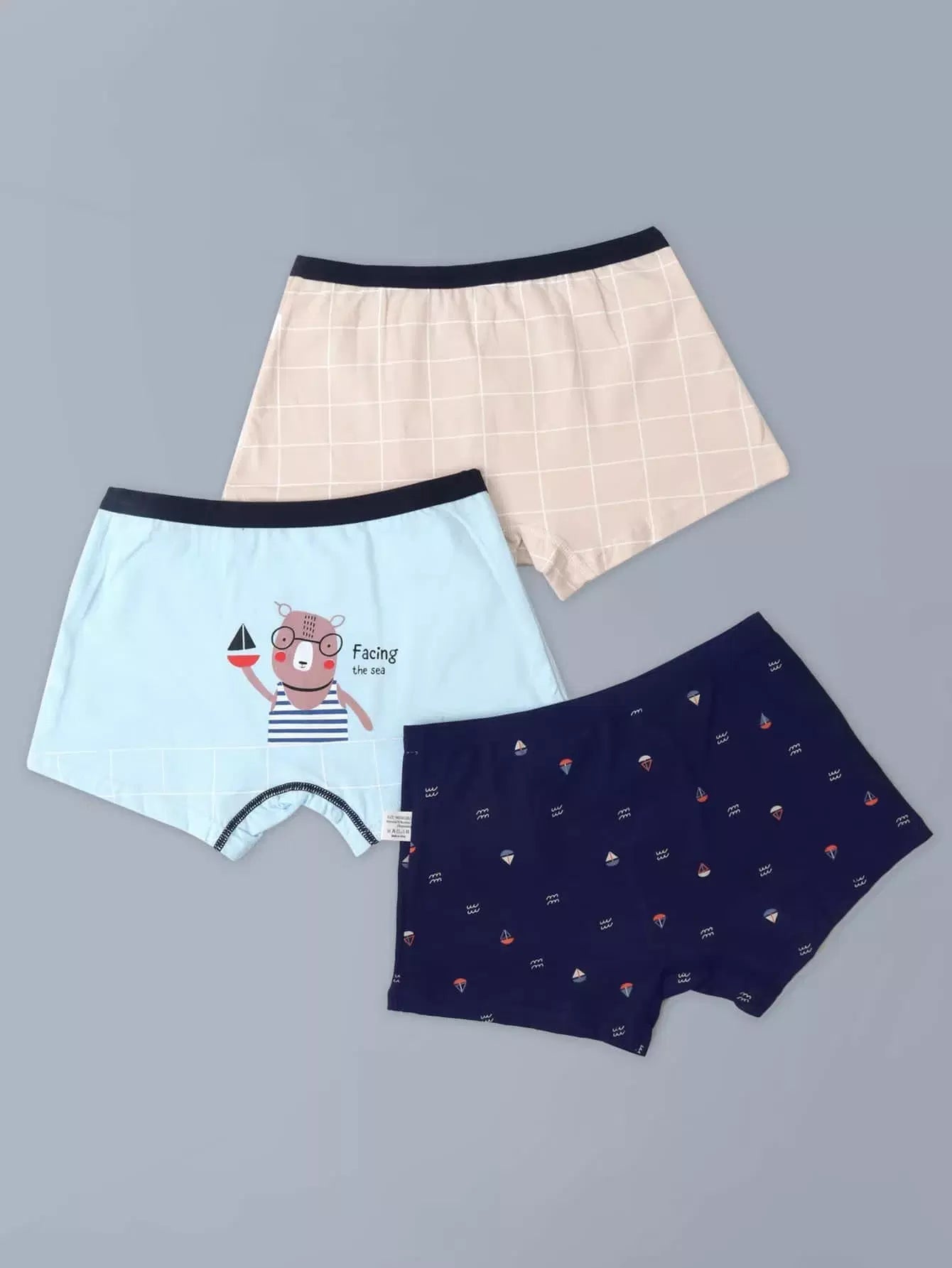 سراويل داخلية داخلية داخلية صغار 3 قطع شعار ورسومات كرتونية للأولاد الصغار