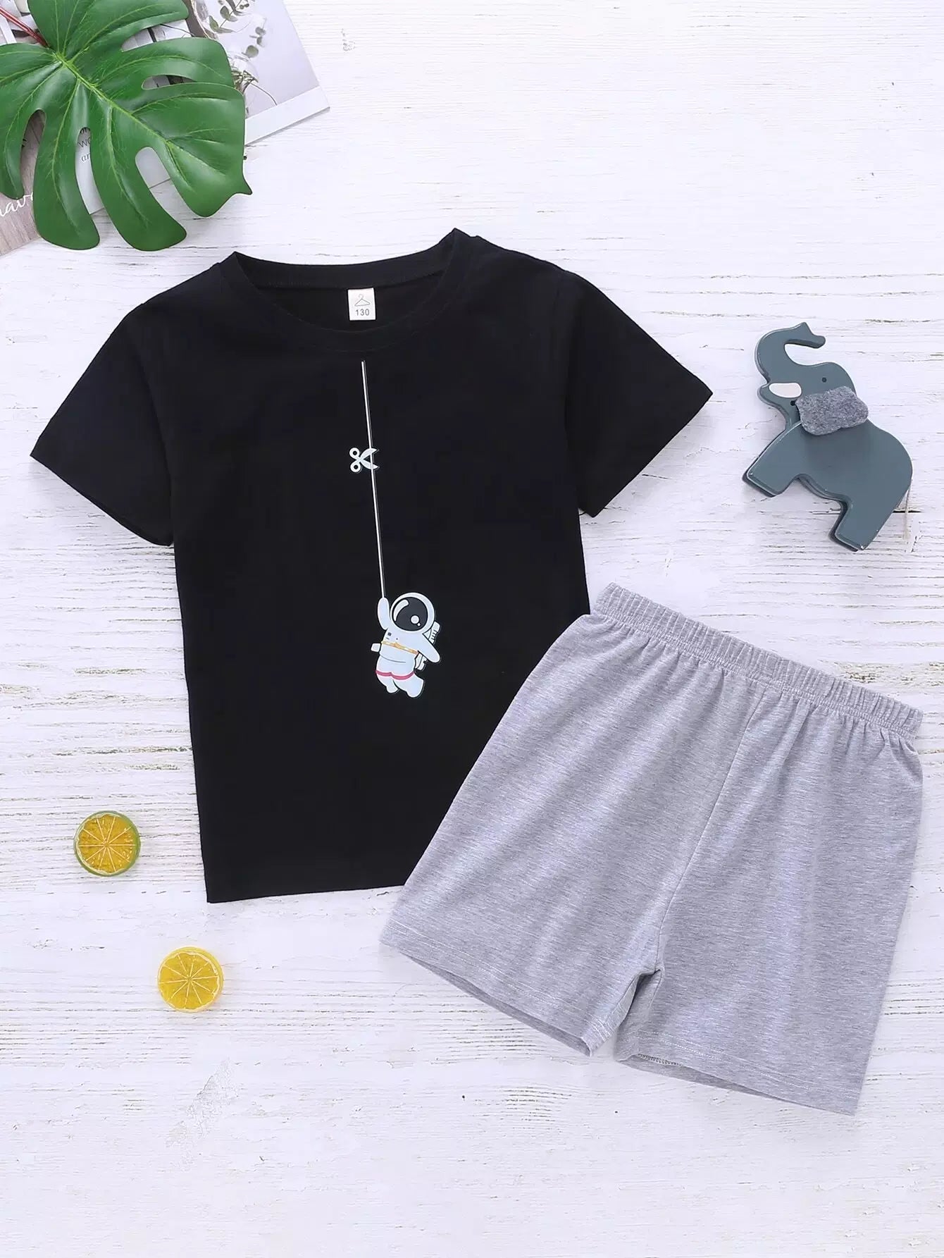تي شيرت بطبعة رائد فضاء للأولاد الصغار مع شورت قصير