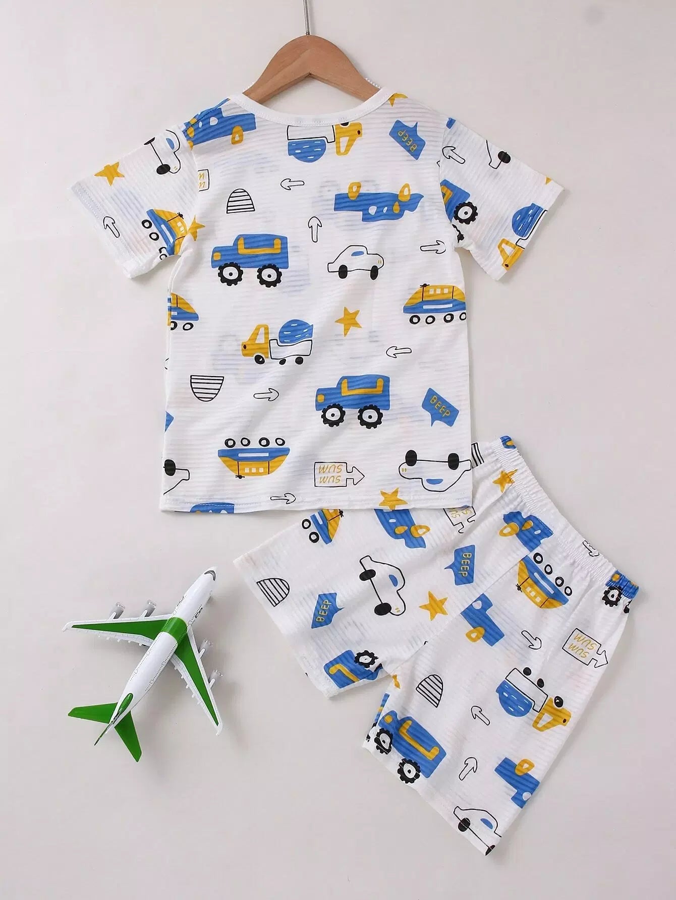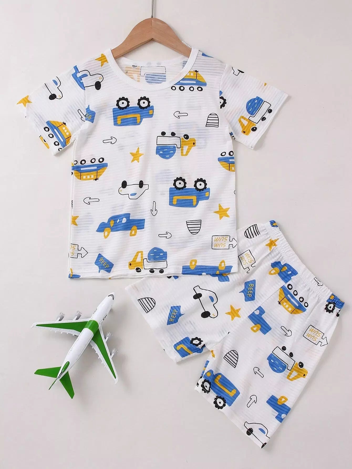 طقم بيجامات بطبعة سيارة للأولاد الصغار