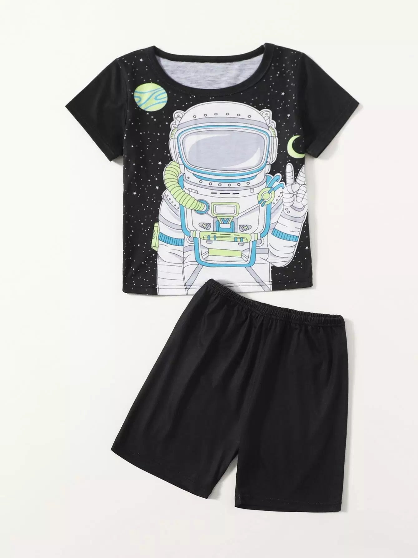 طقم بيجامات كرتوني جرافيك للأولاد الصغار