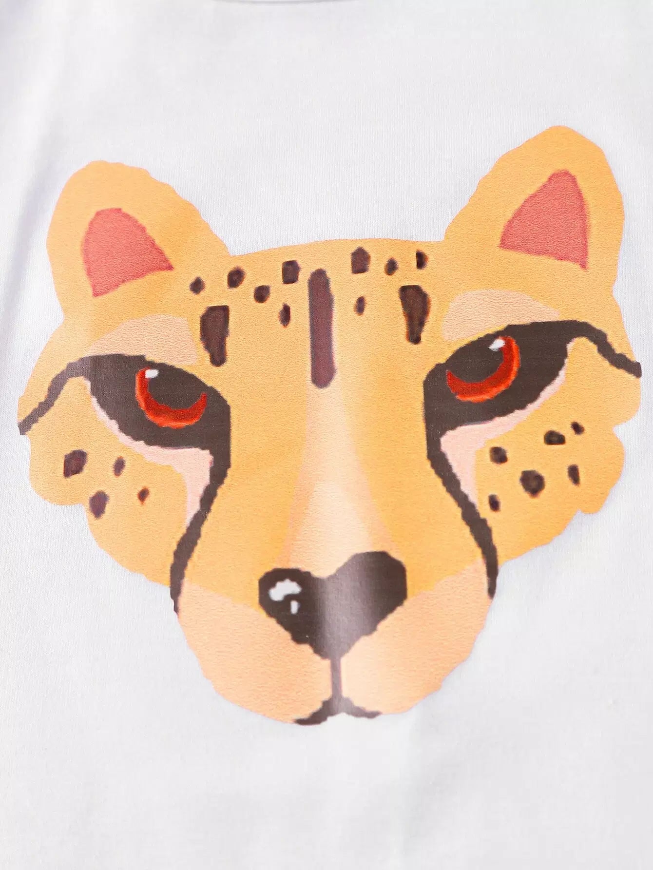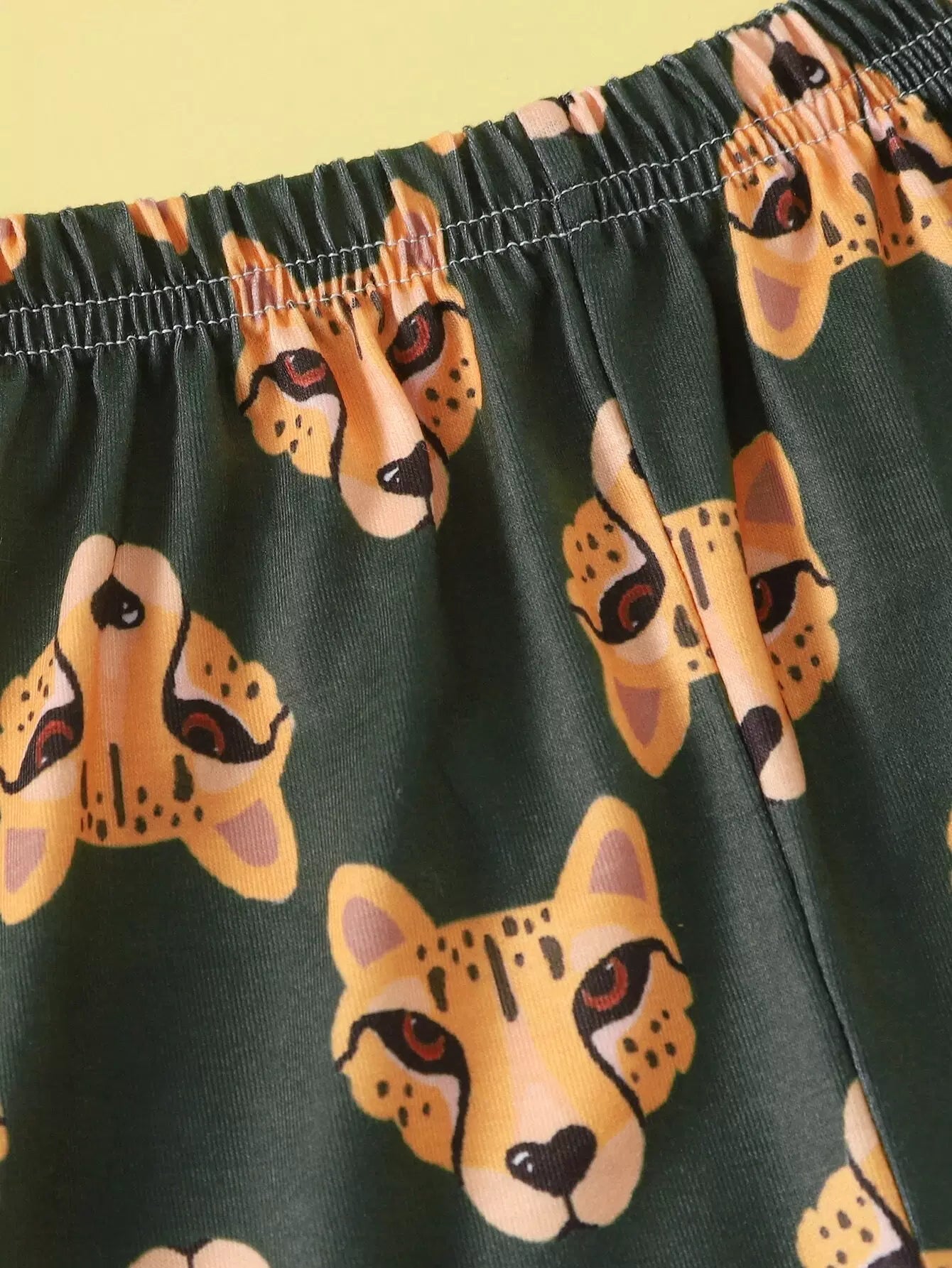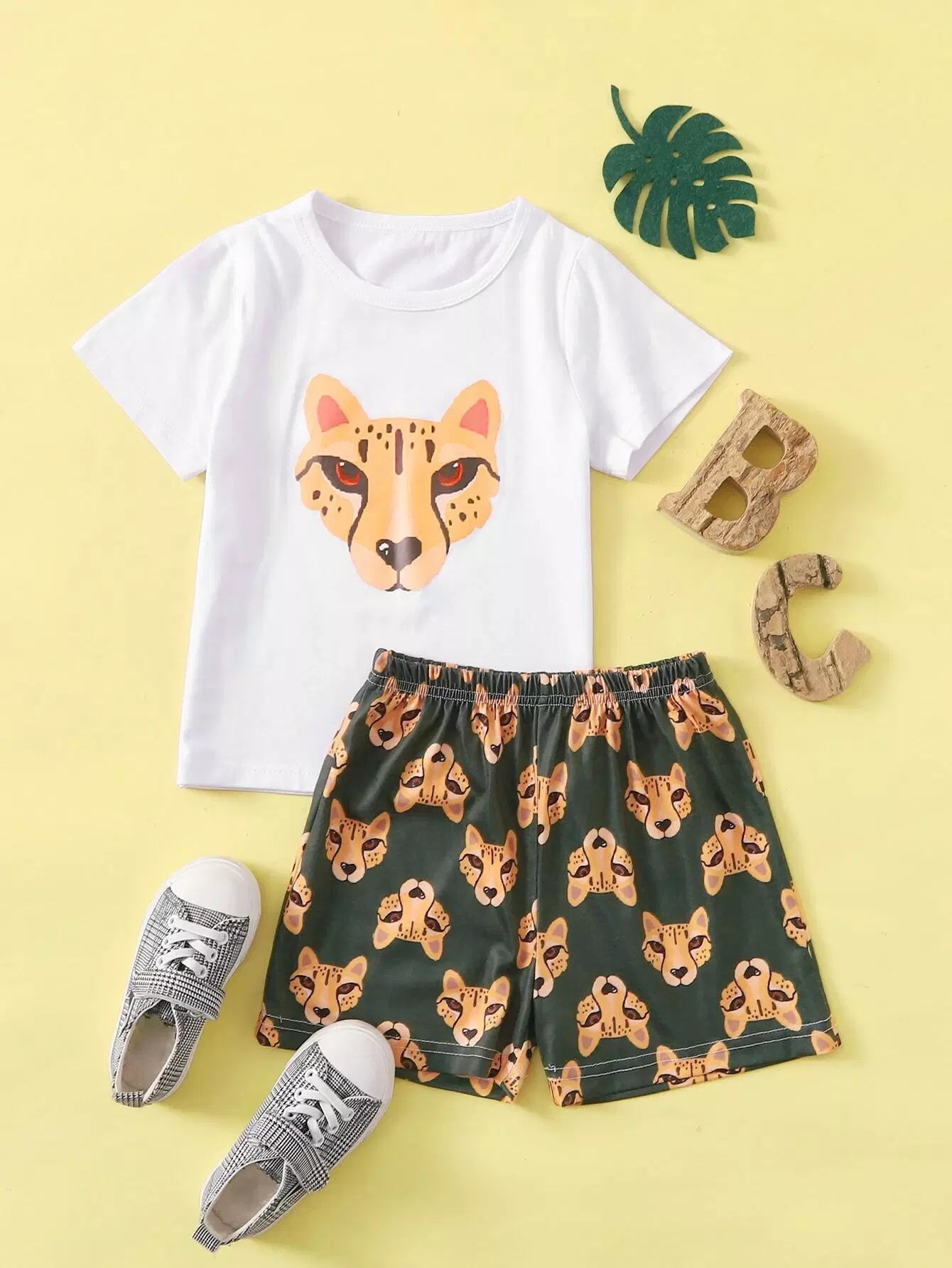 طقم تي شيرت بنقشة الفهد للأولاد الصغار مع شورت بيجامة