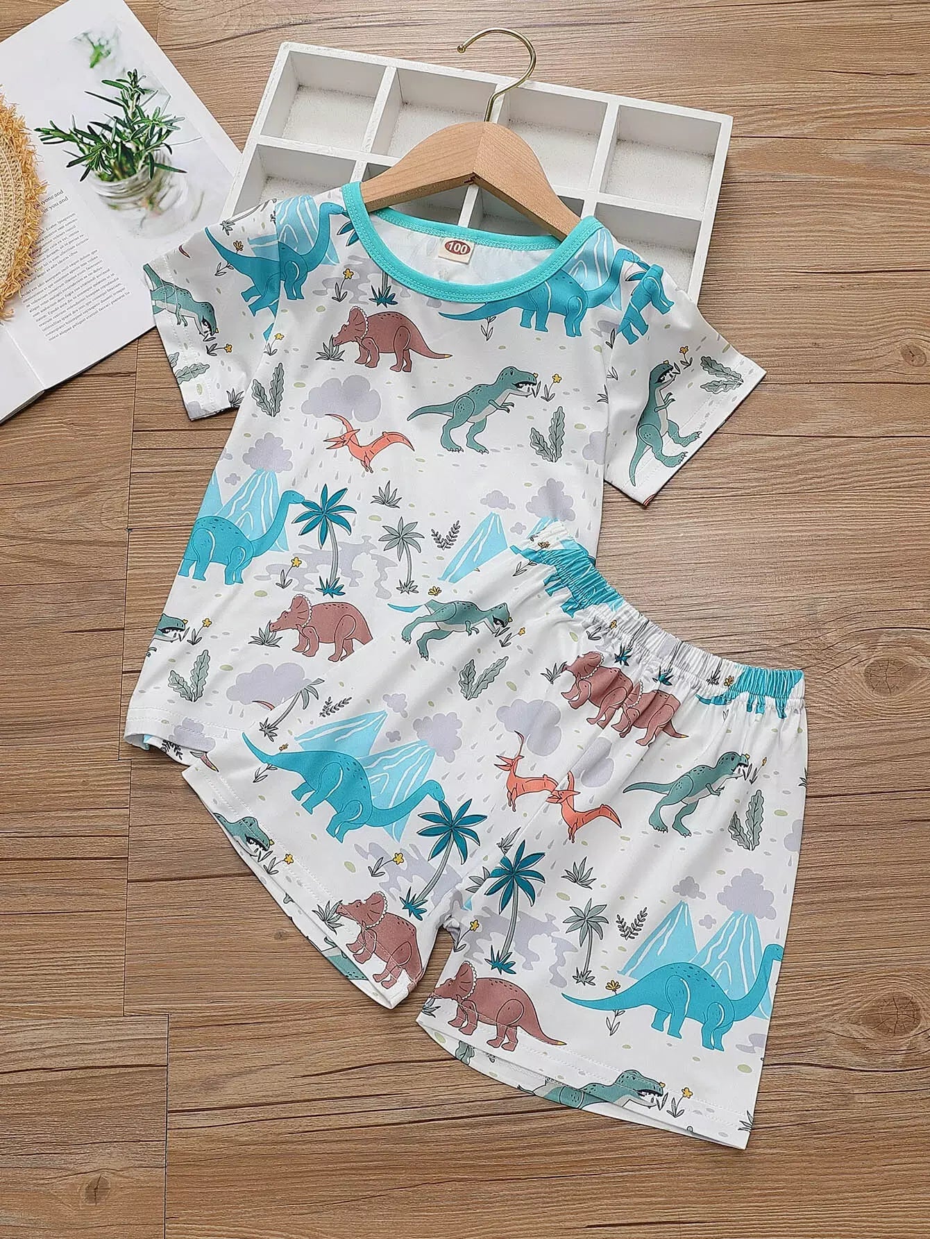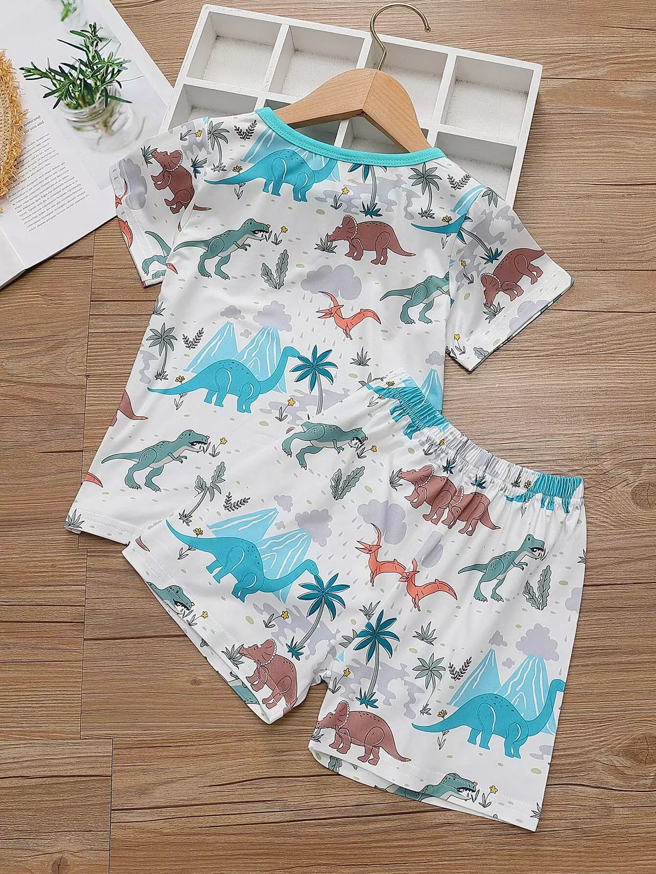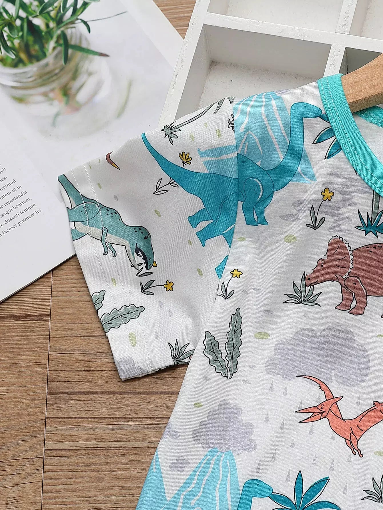 طقم بيجامات بطبعة ديناصور ونباتات للأولاد الصغار