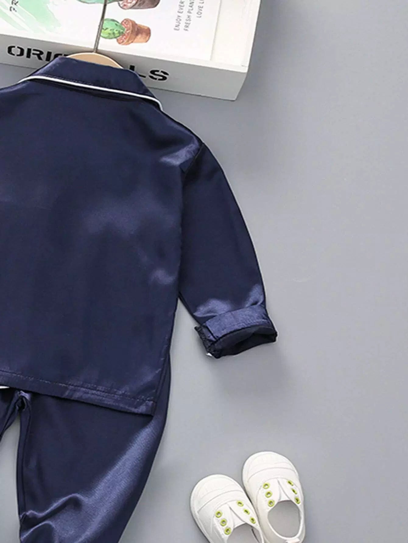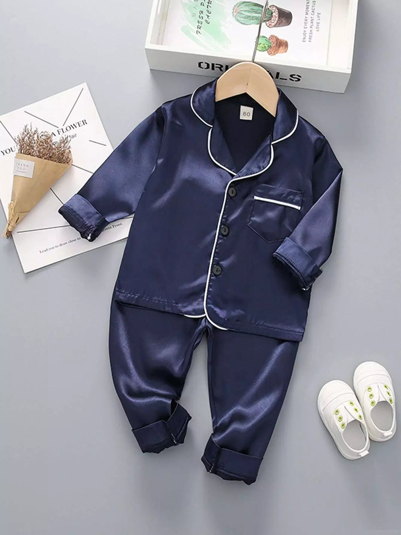 طقم بيجامة بجيب من الساتان الملزم للأولاد الصغار