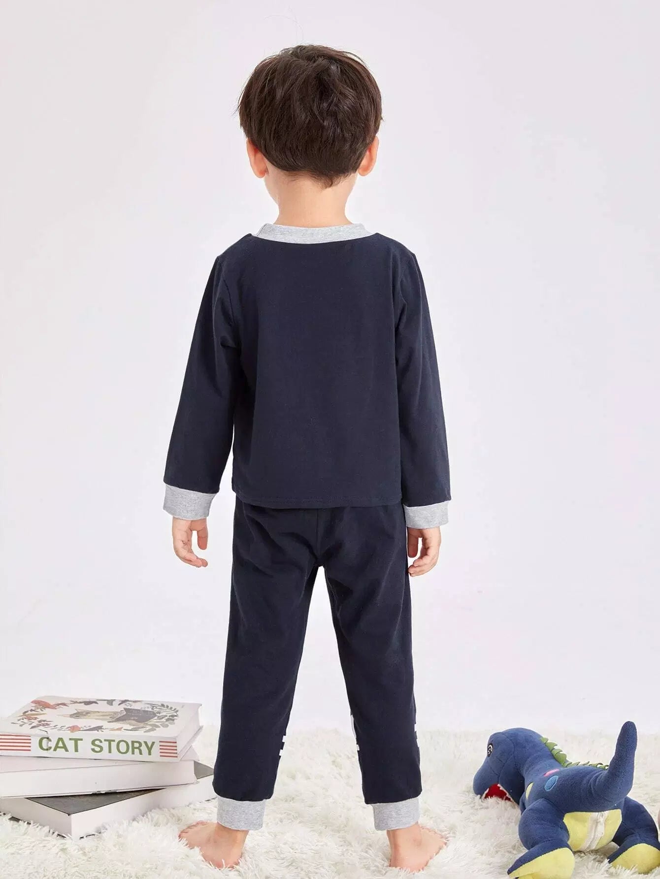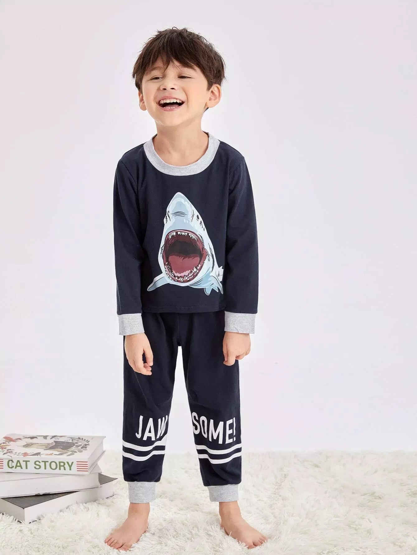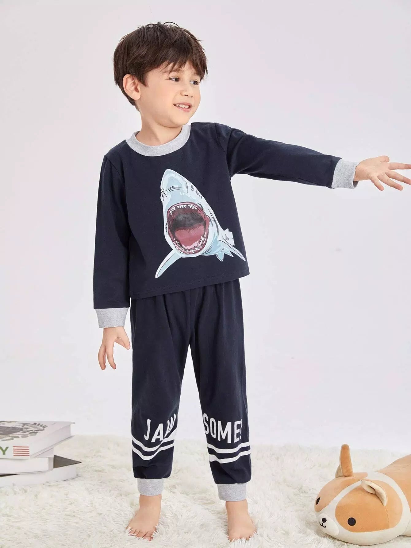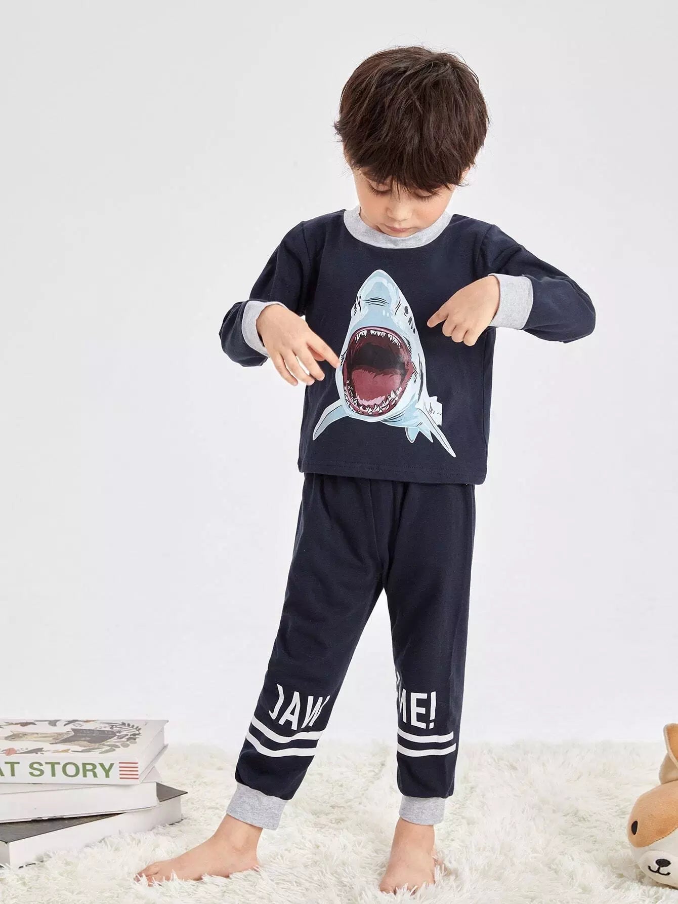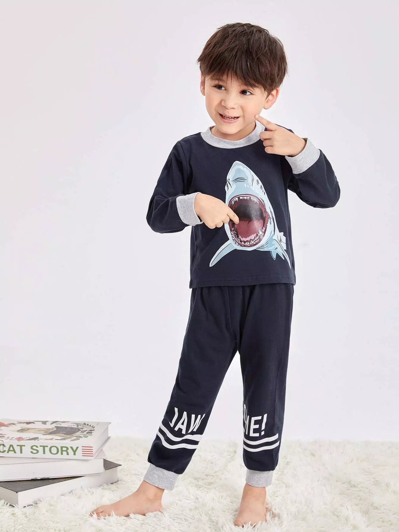 طقم بيجامات بنقشة قرش للأولاد الصغار