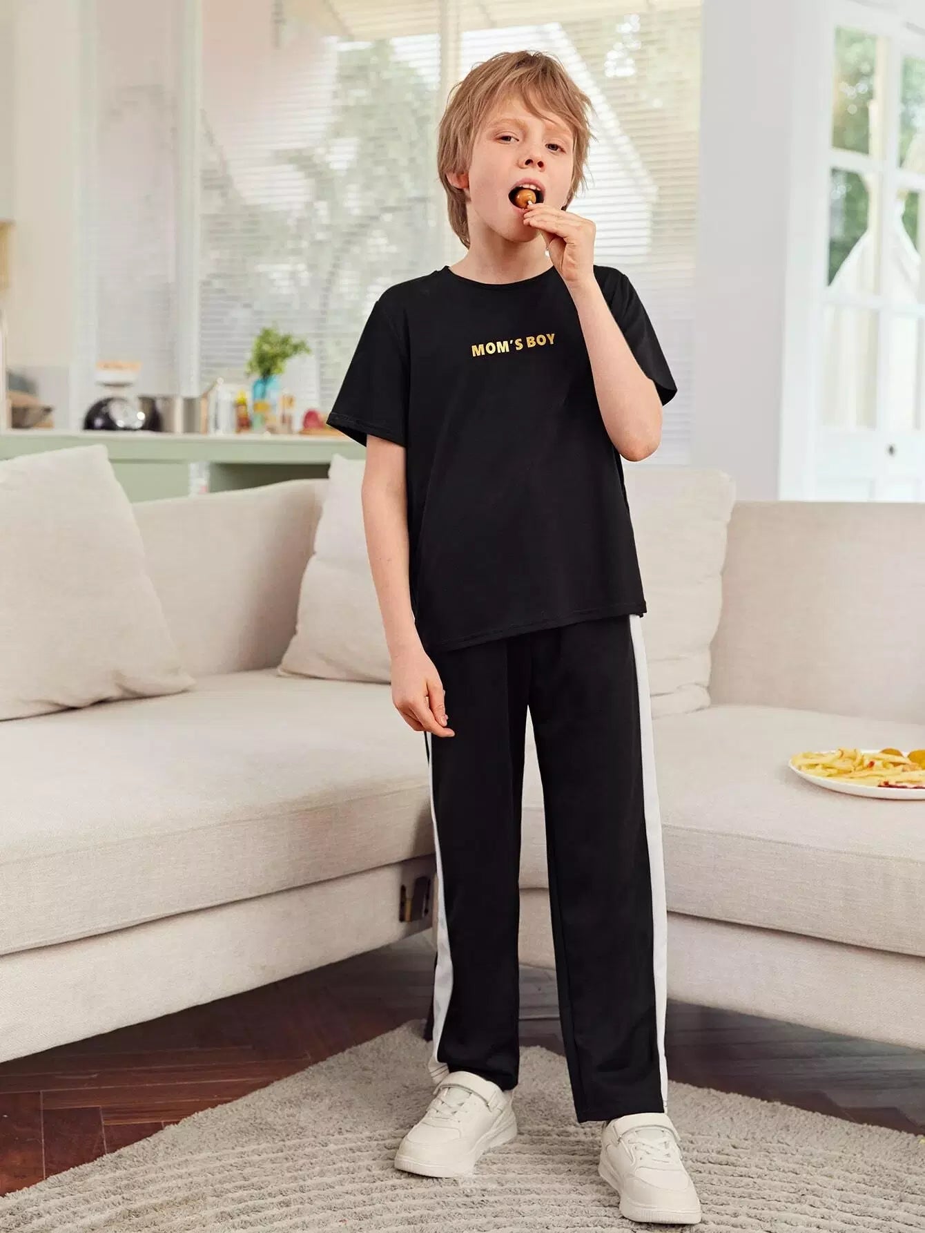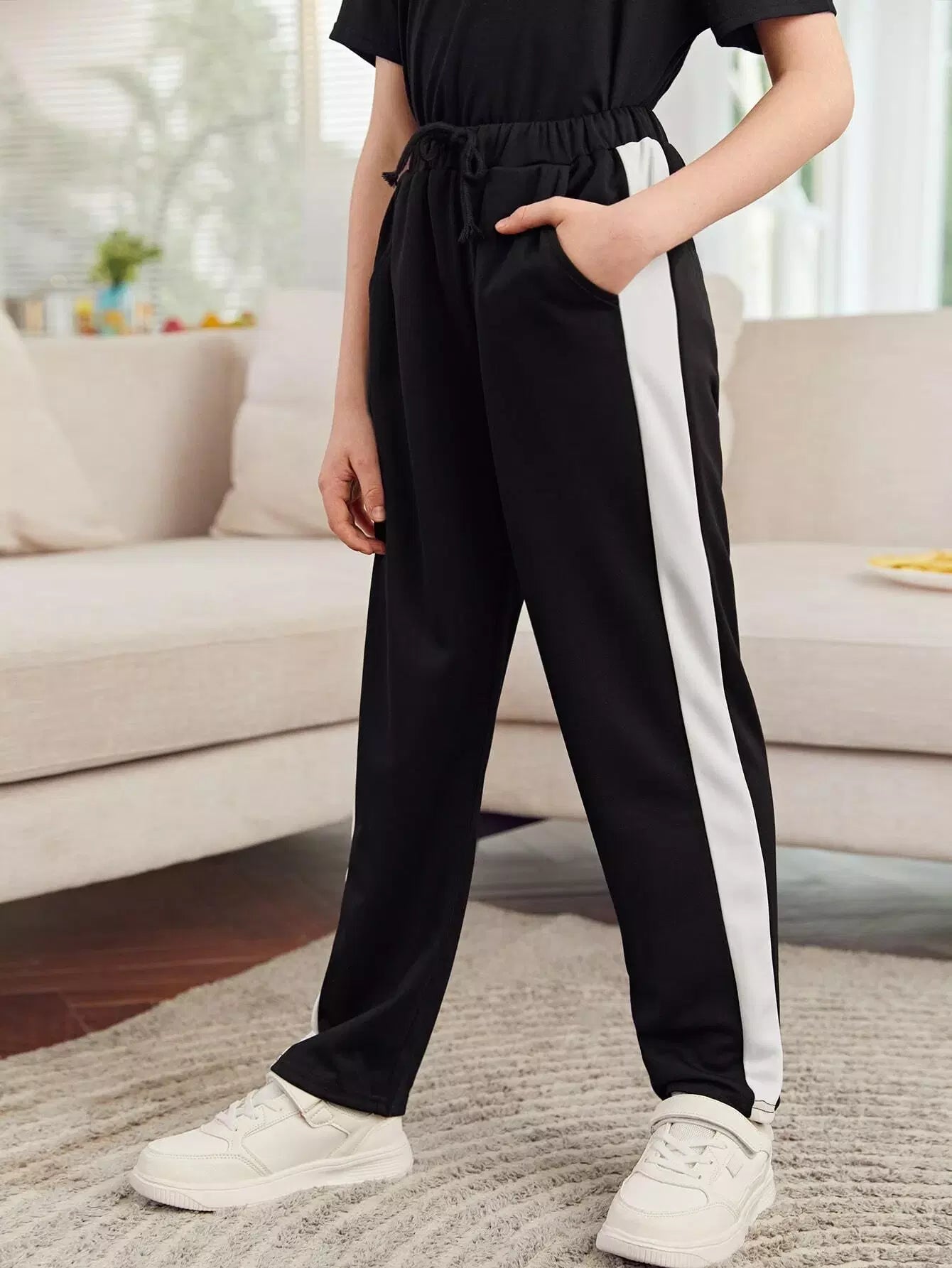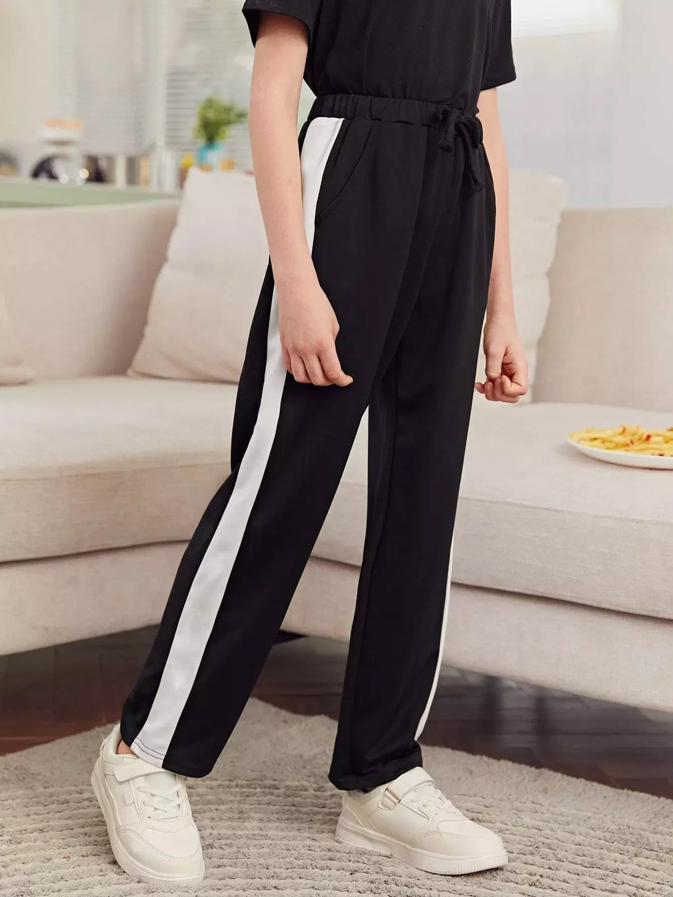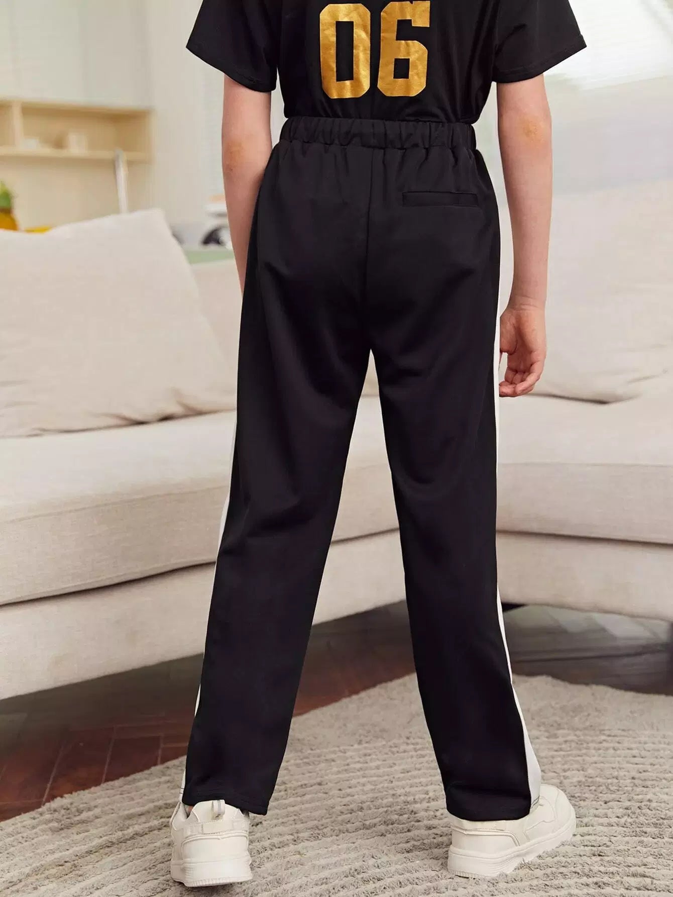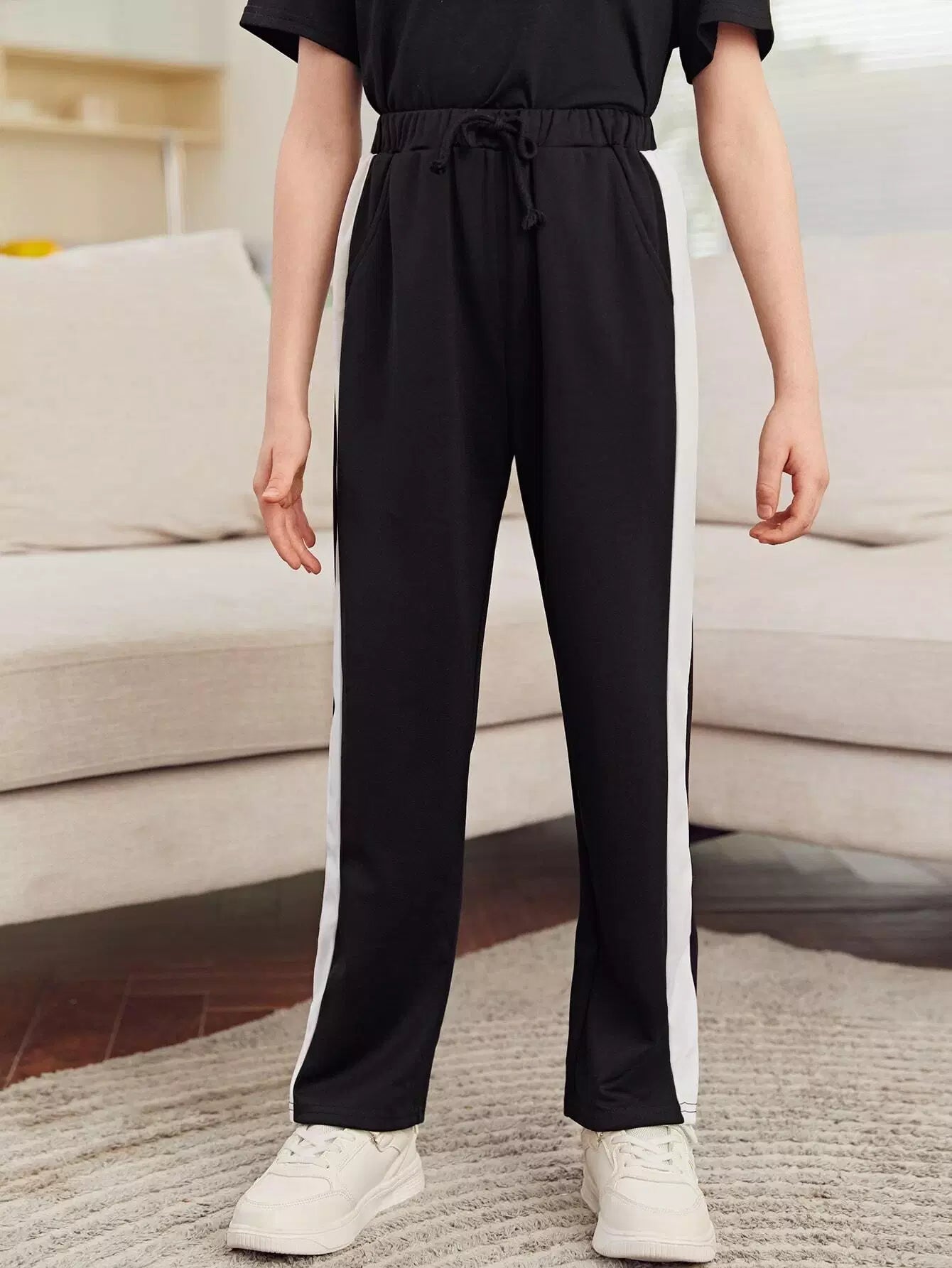 بنطلون للأولاد برباط على الخصر وخياطة جانبية متباينة
