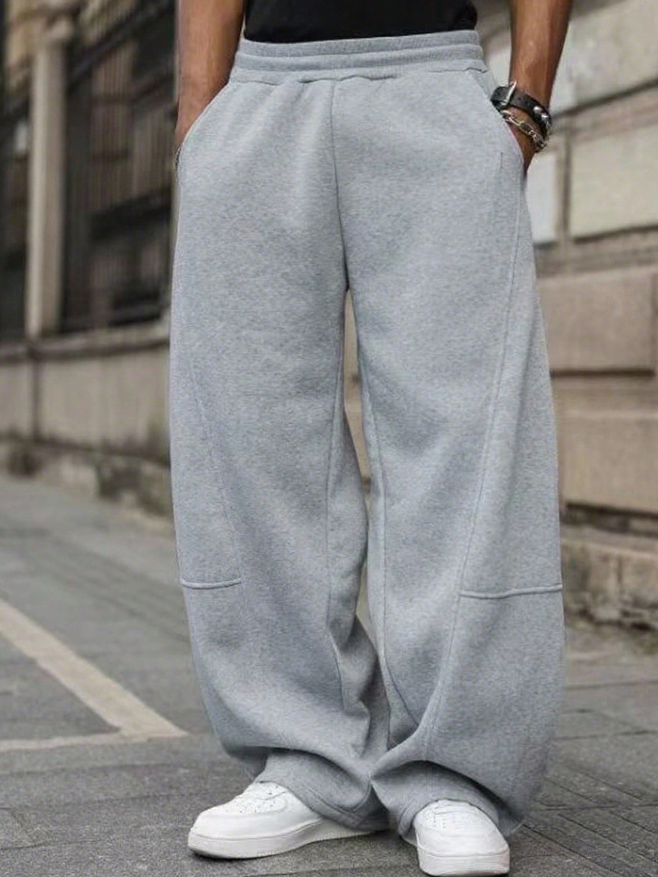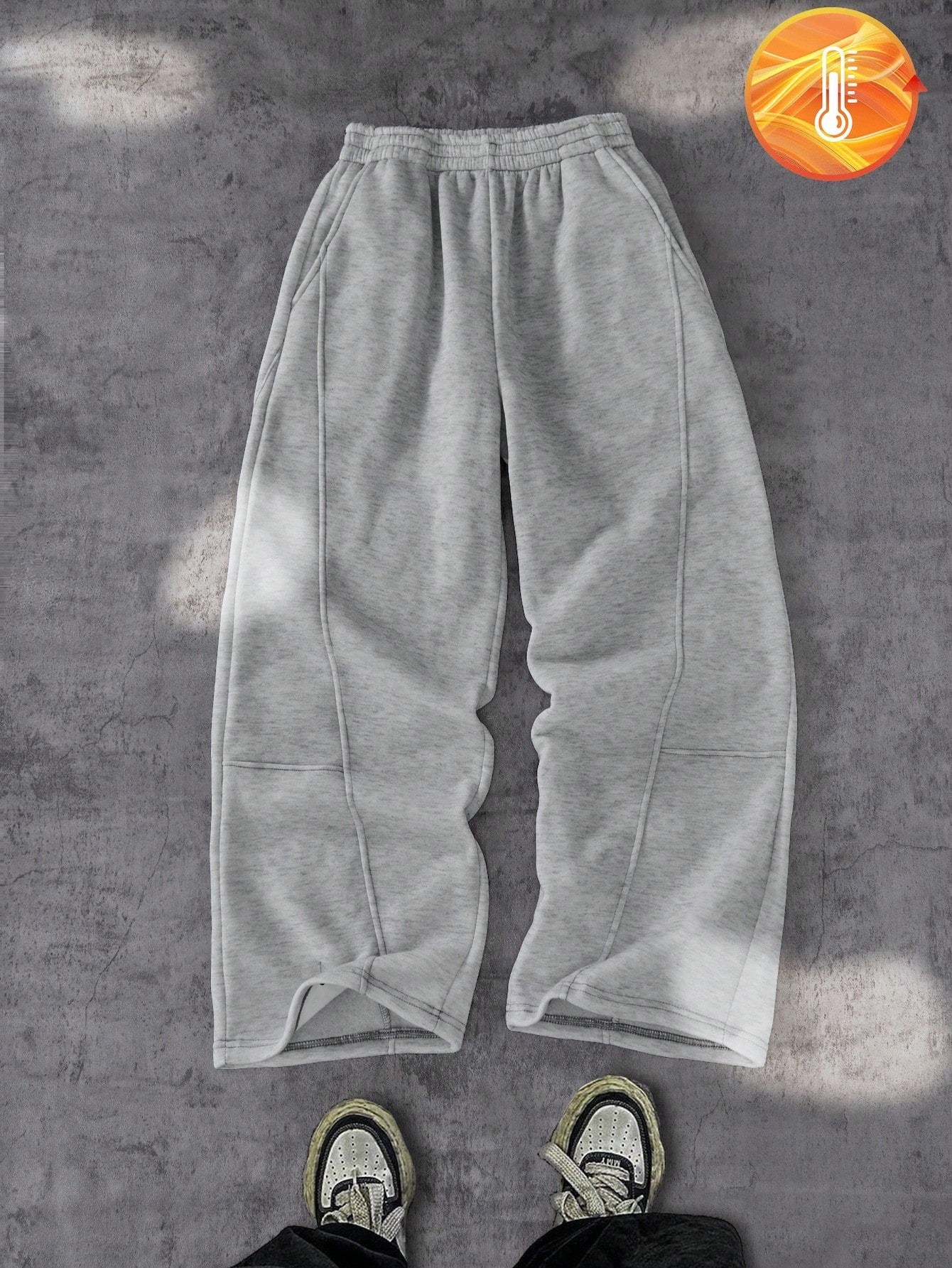 بنطال رياضي رمادي بقصة فضفاضة من Coolqubz Vacaura للأولاد، بنمط مرقع وأرجل مستقيمة