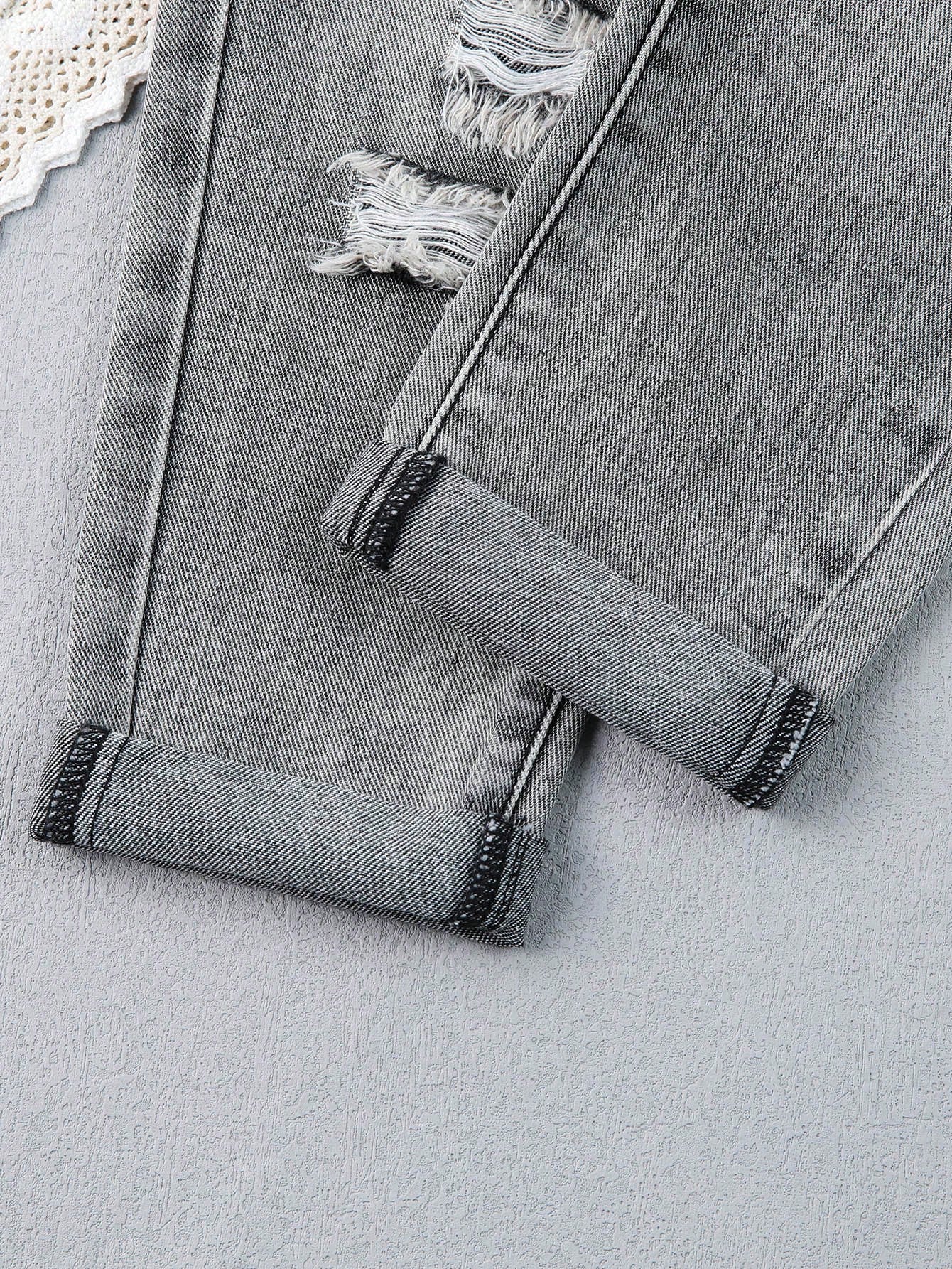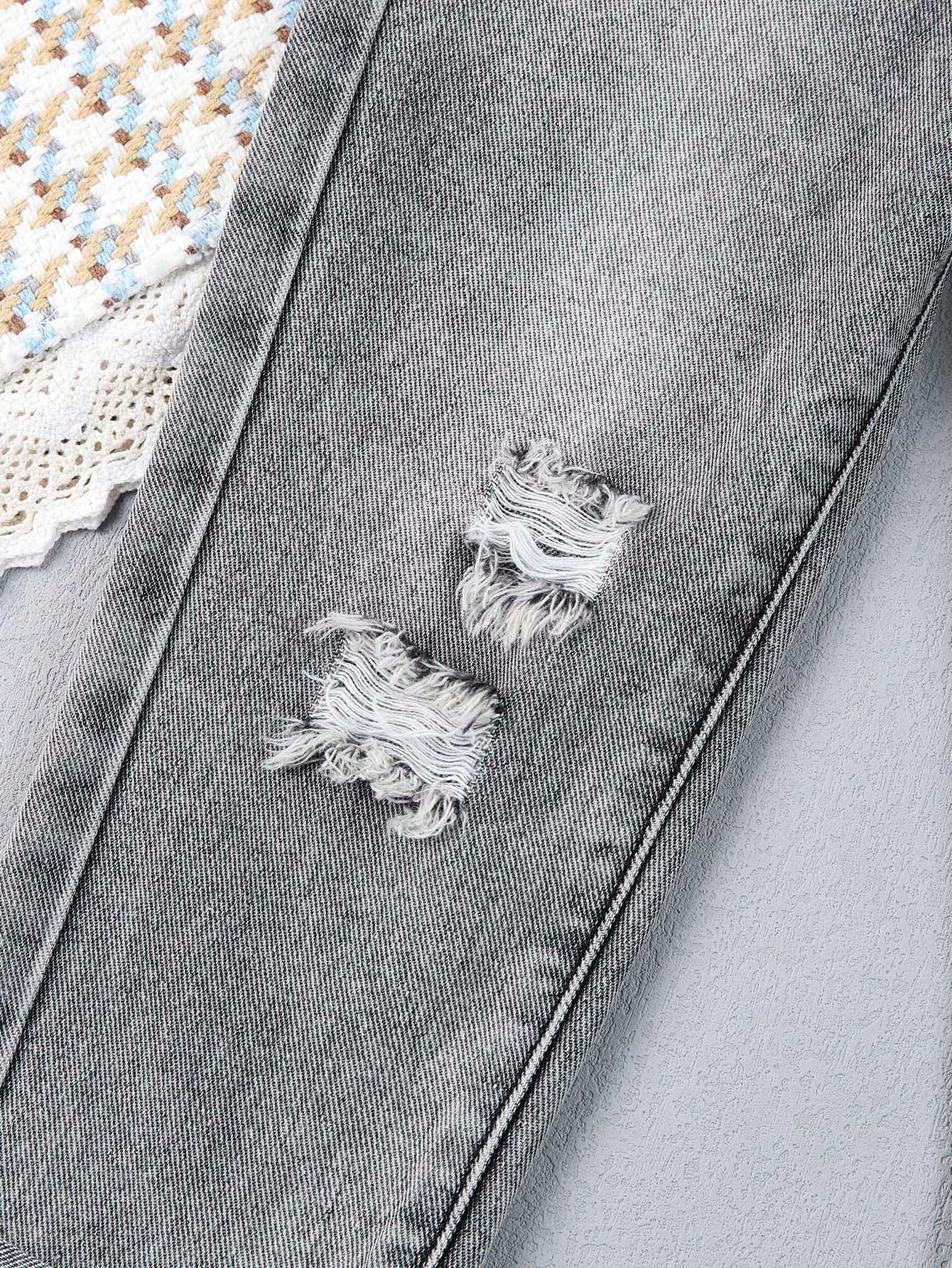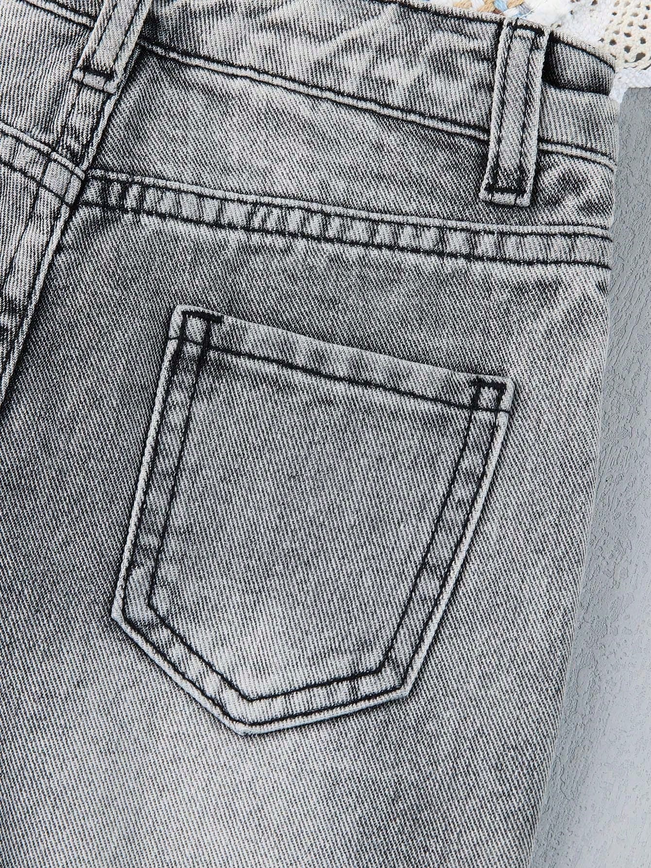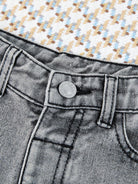 بنطال جينز قصير ممزق ومهترئ ومغسول بمبيض بنقشة الجزر