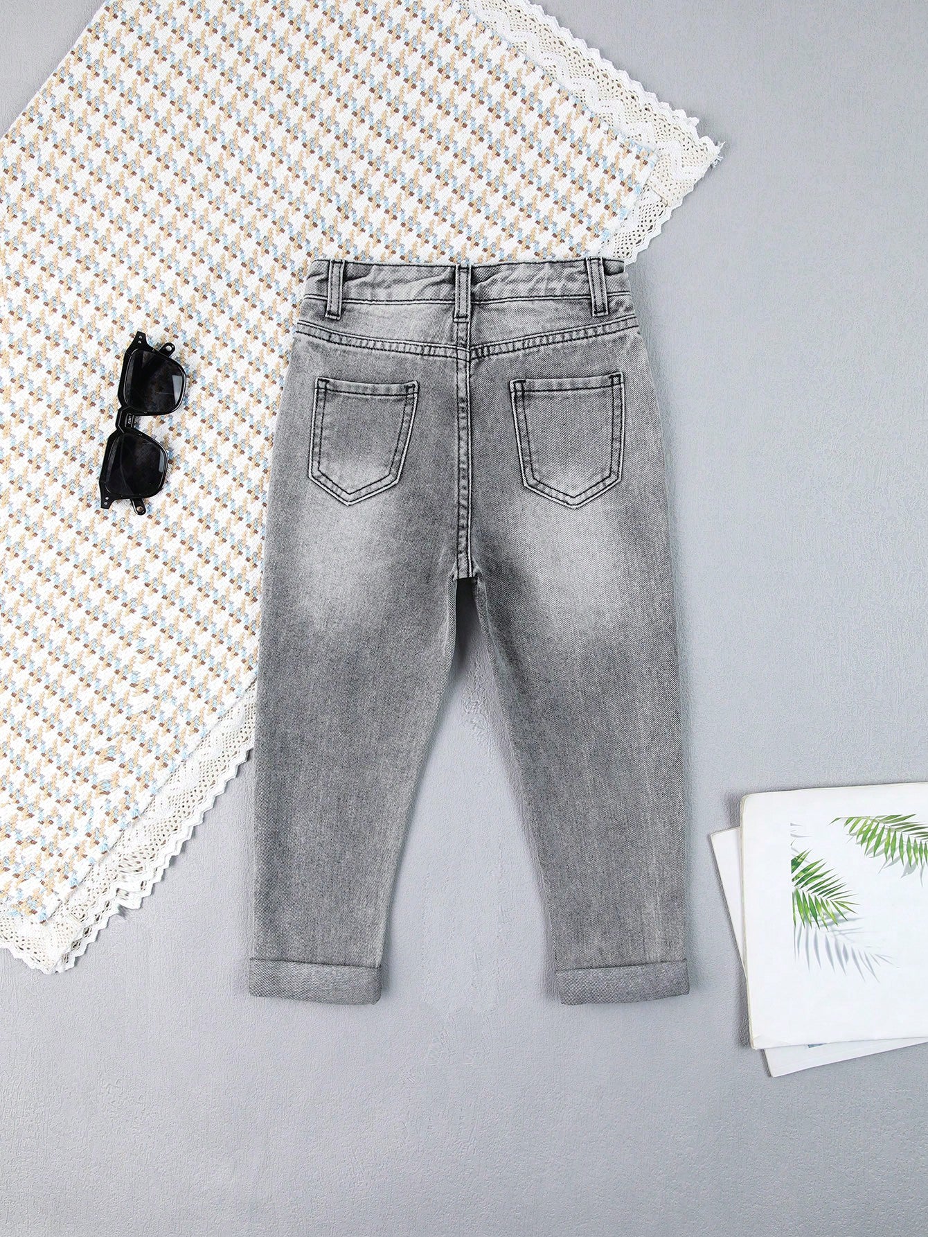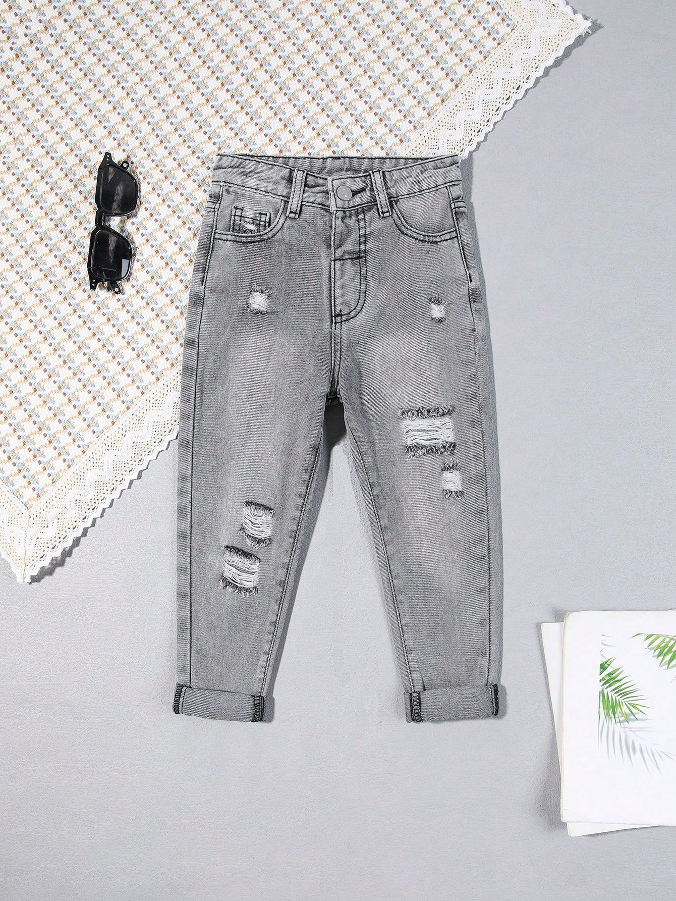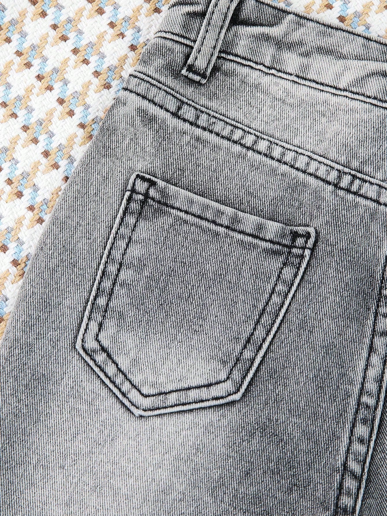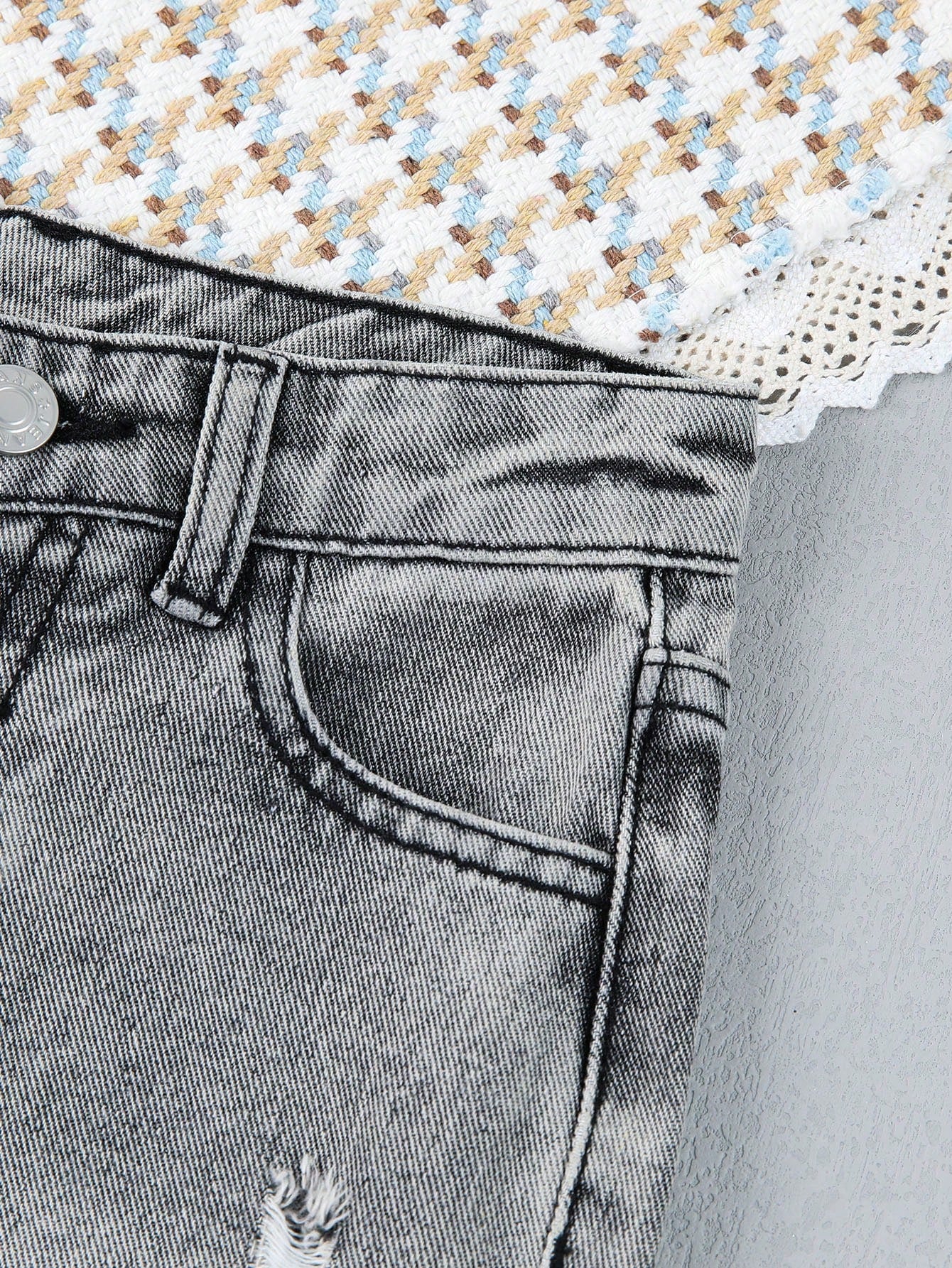بنطال جينز قصير ممزق ومهترئ ومغسول بمبيض بنقشة الجزر