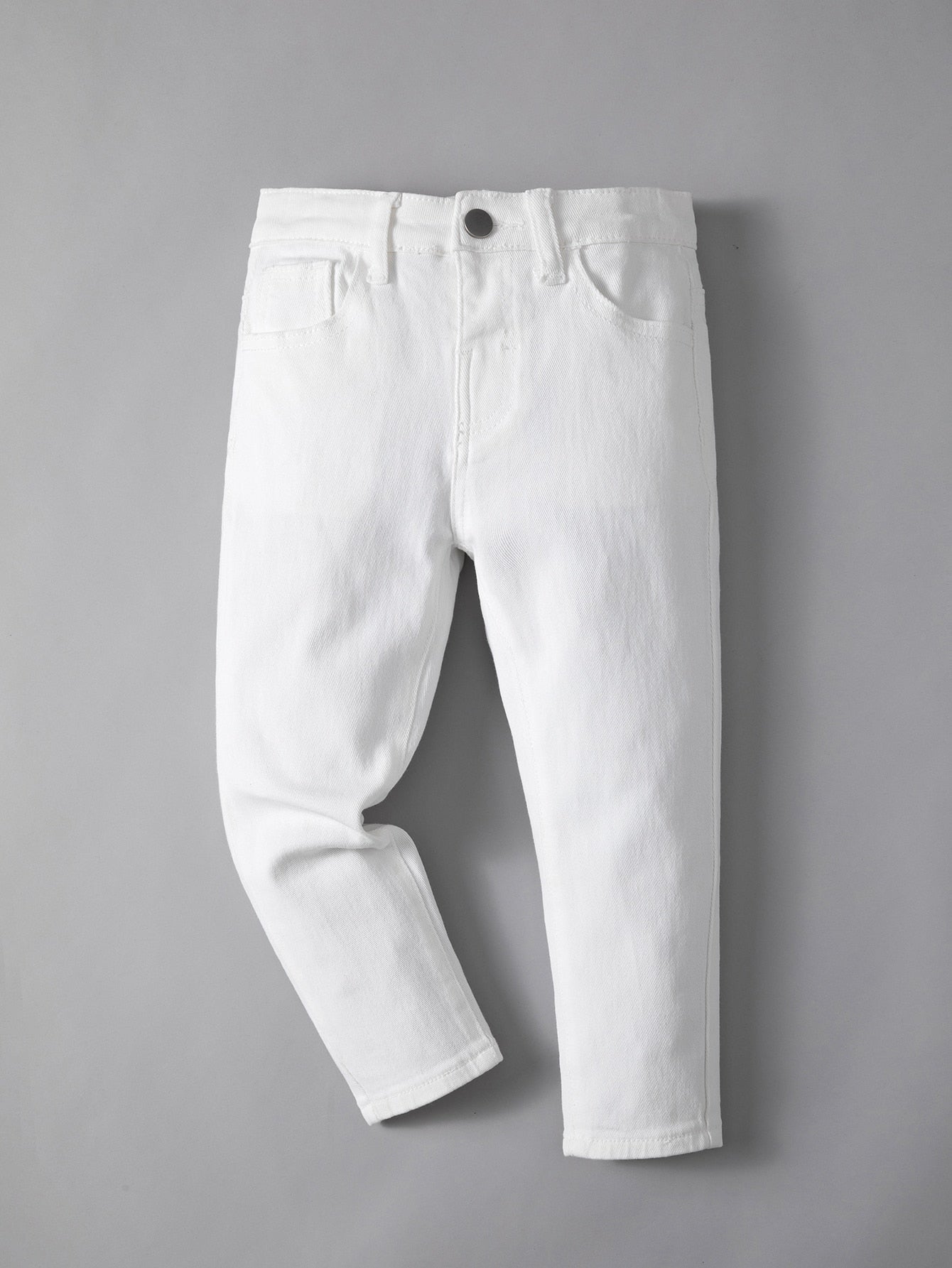 بنطلون جينز بسيط وأنيق للجنسين، بتصميم عصري وعصري، بخمسة جيوب وقصة مستقيمة، مناسب للجامعة.