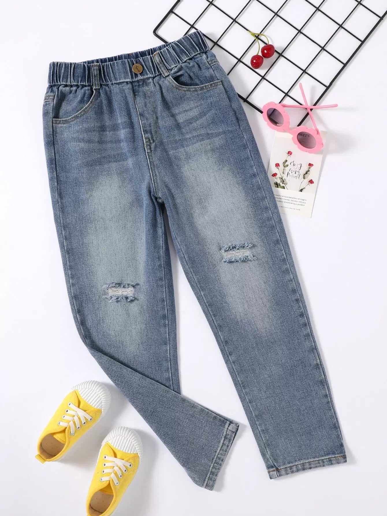 بنطلون جينز بساق مستقيمة ممزق للأولاد