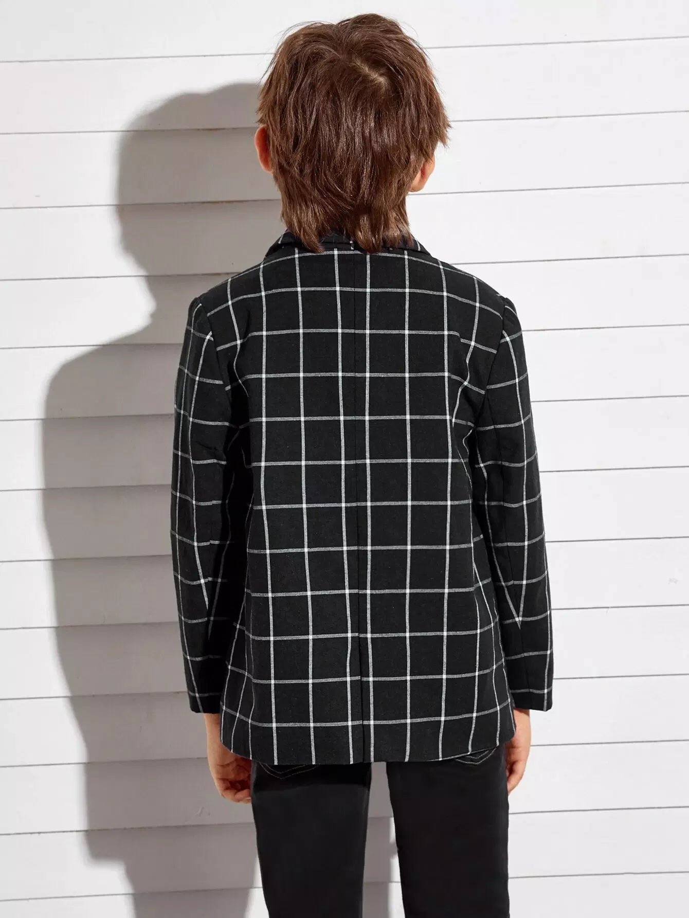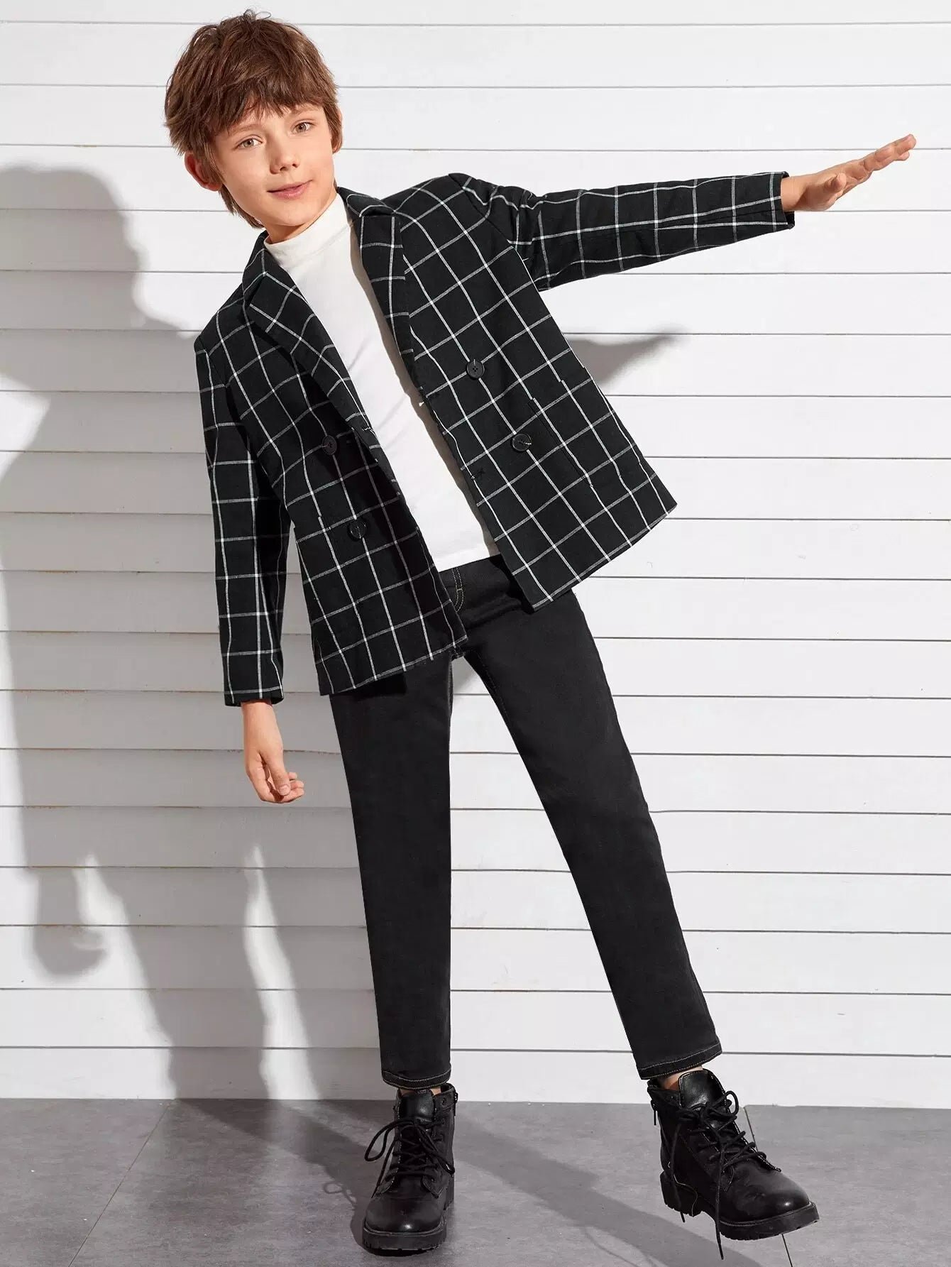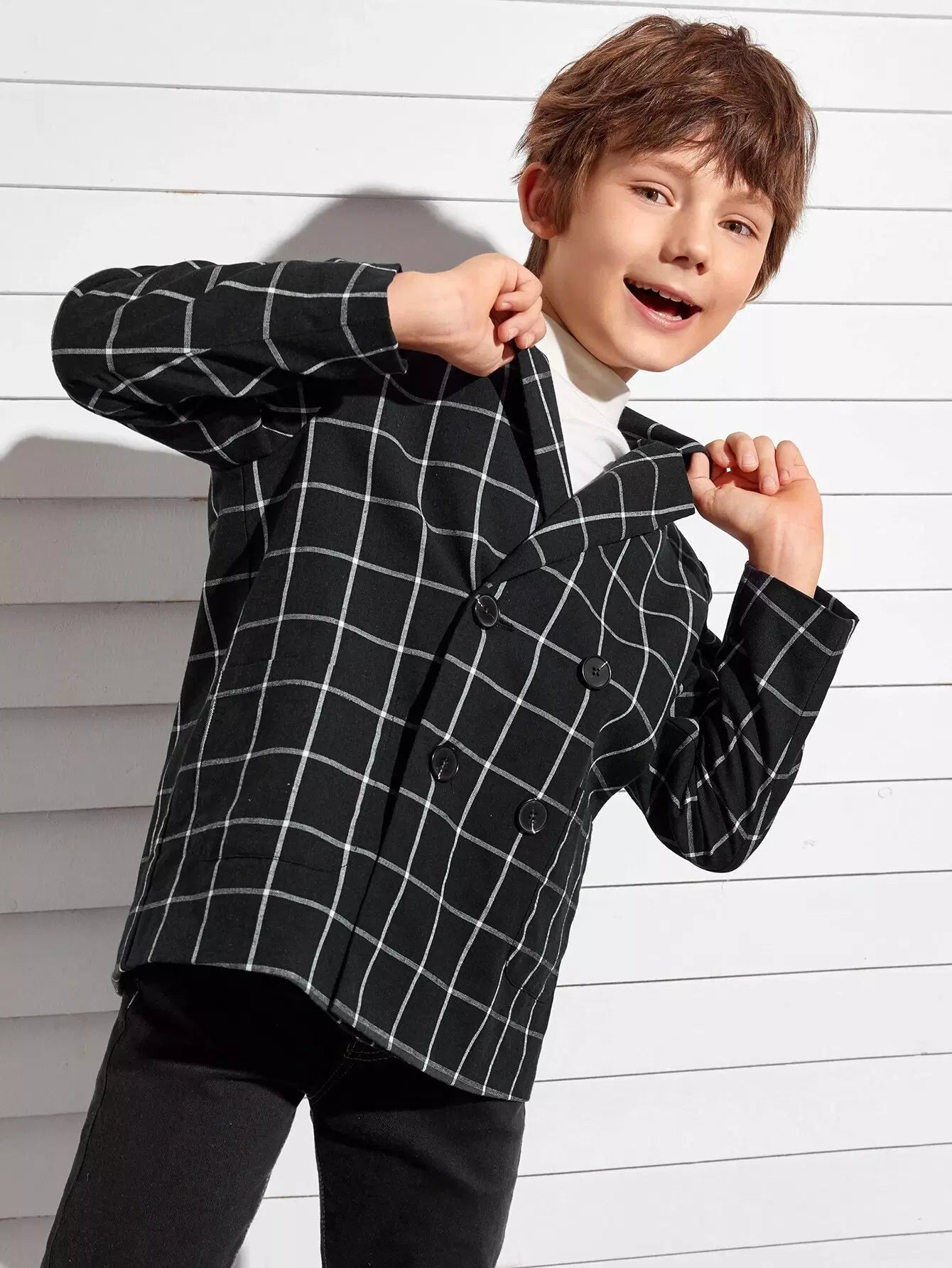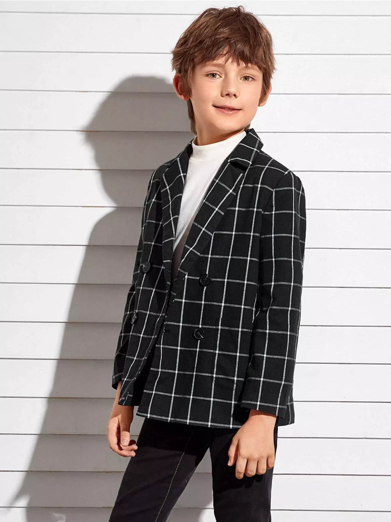 معطف شبكي مزدوج الصدر بياقة مدببة للأولاد