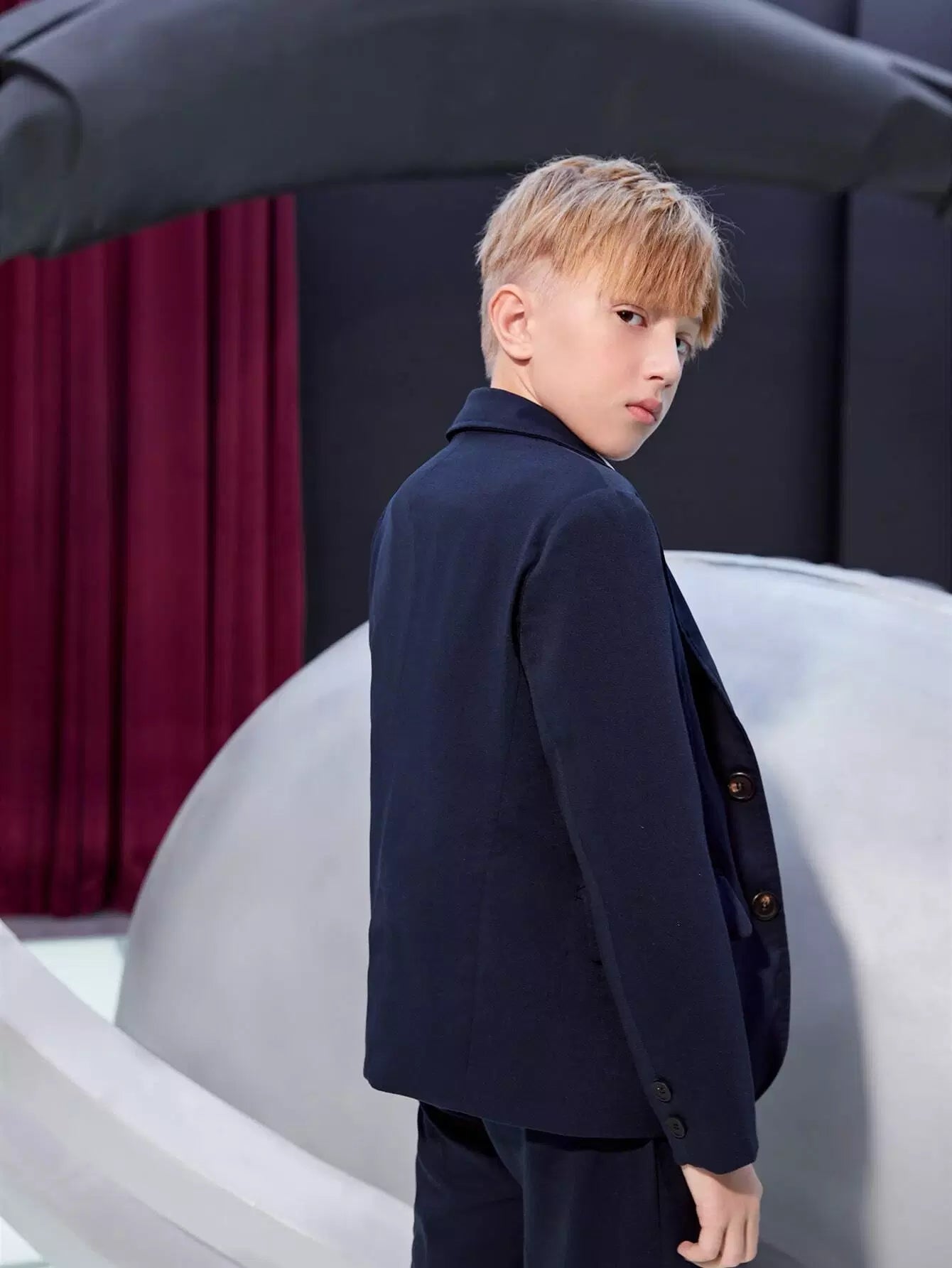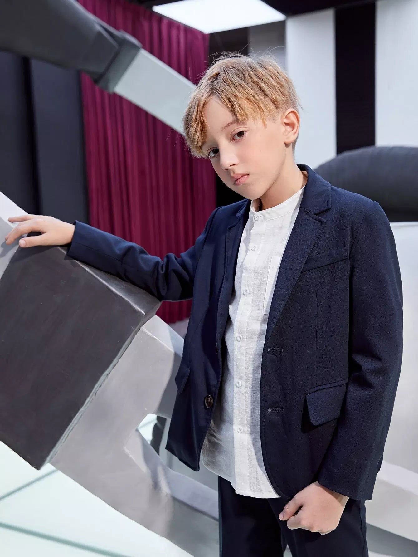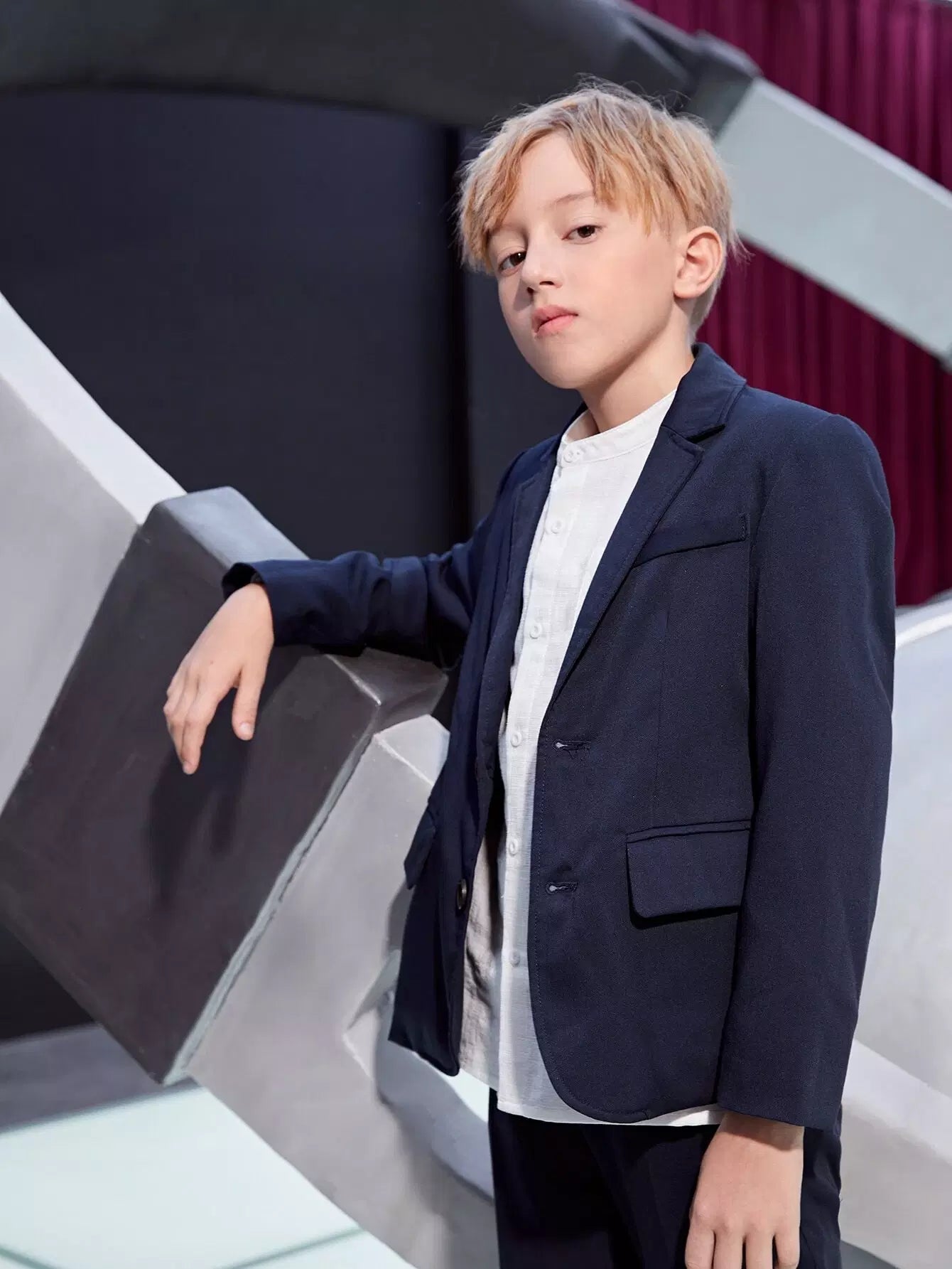جاكيت بياقة بياقة واحدة بفتحة صدر واحدة للأولاد