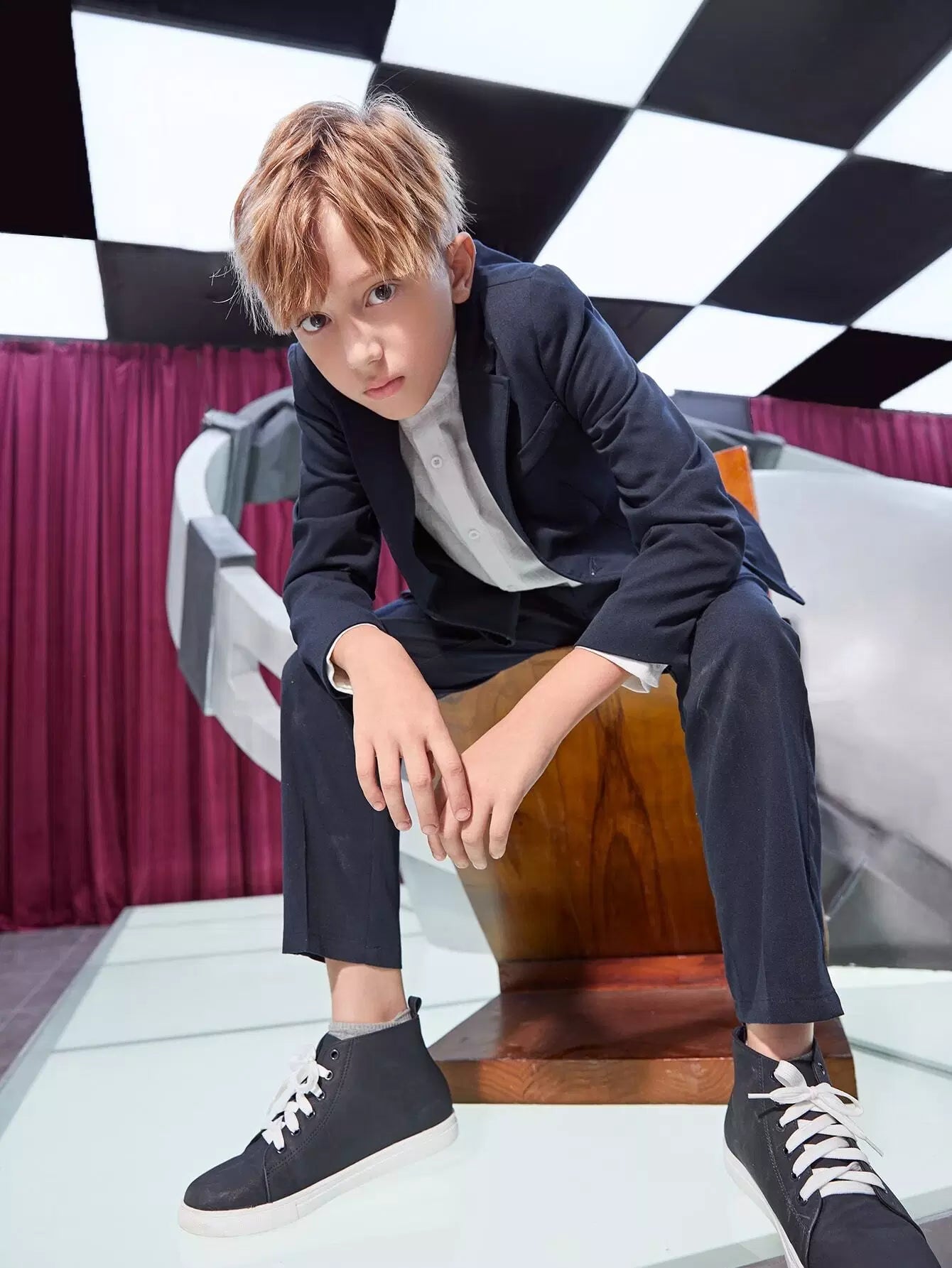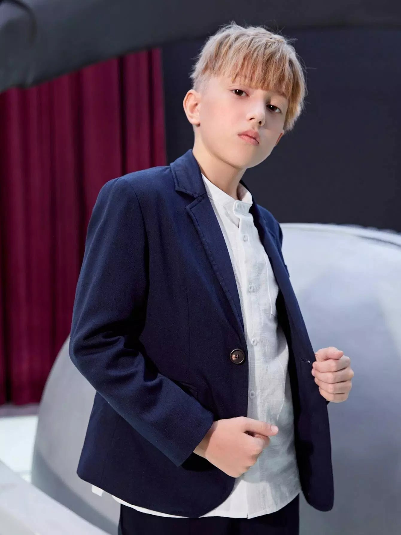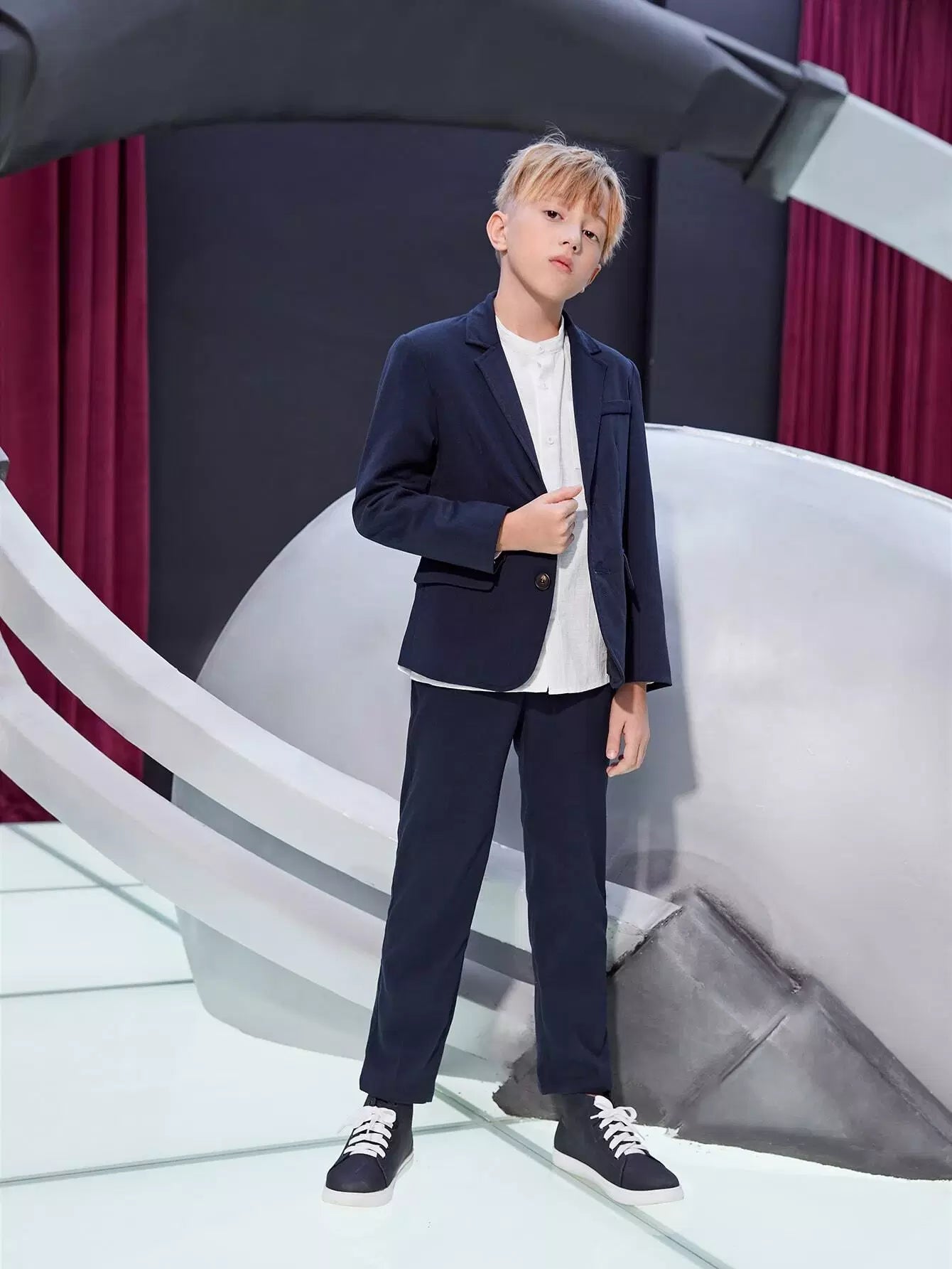 جاكيت بياقة بياقة واحدة بفتحة صدر واحدة للأولاد