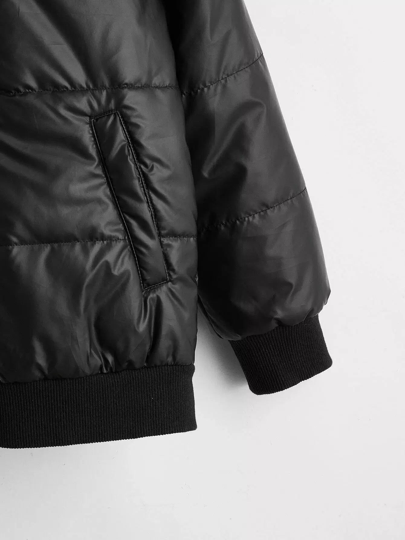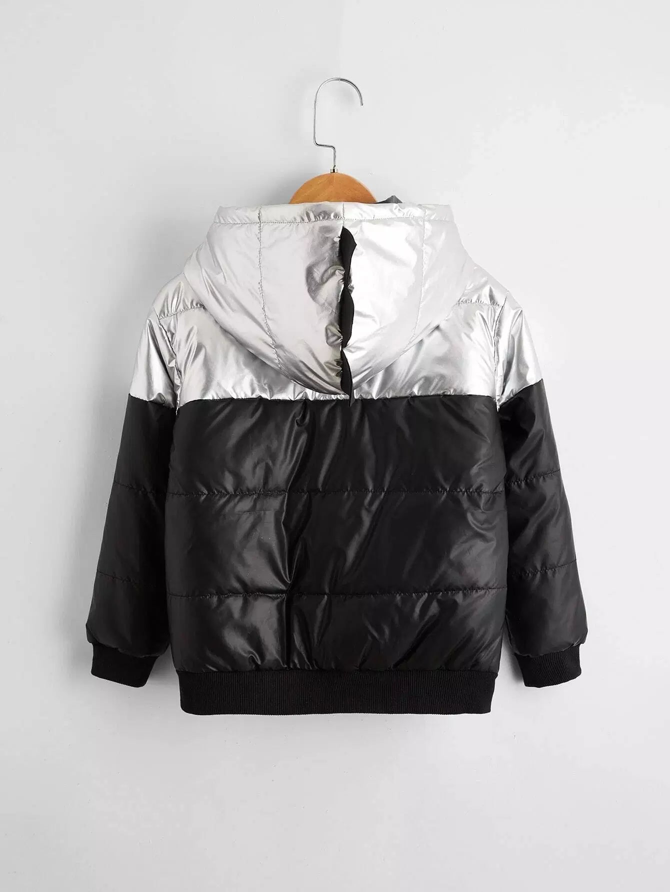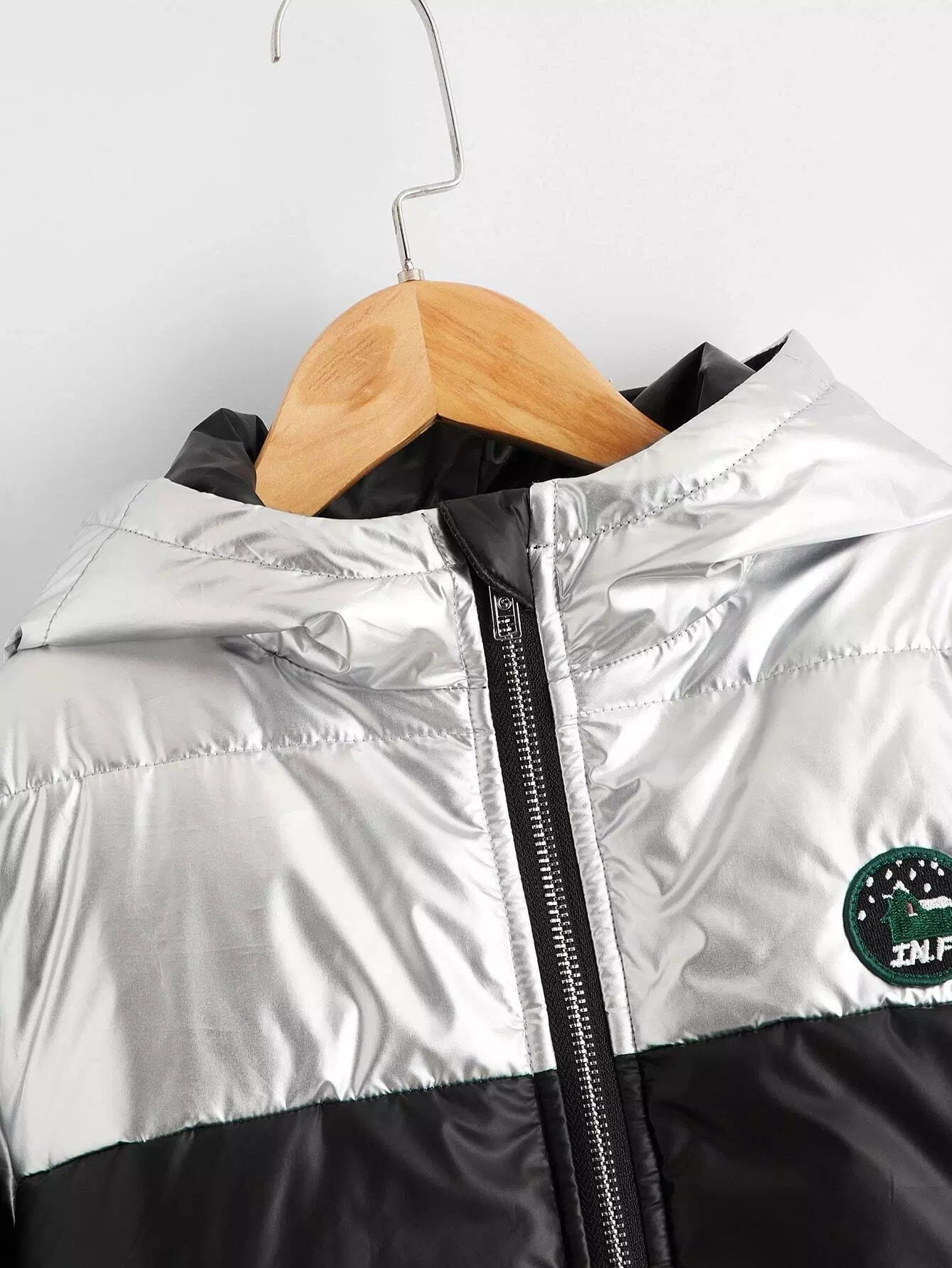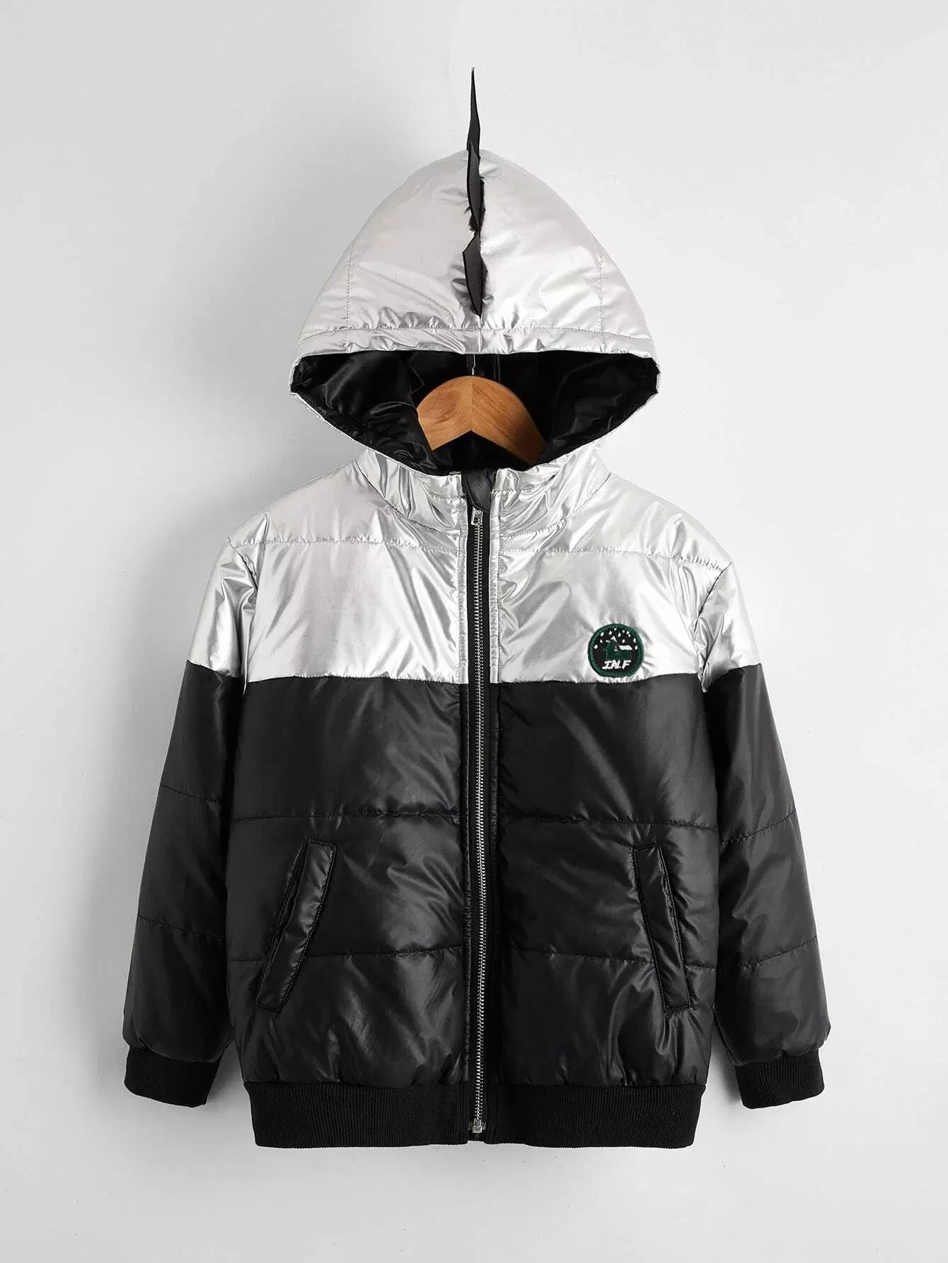 الأطفال - جاكيت منتفخ بغطاء للرأس مزود بسحاب وتفاصيل مثلثة للأولاد