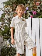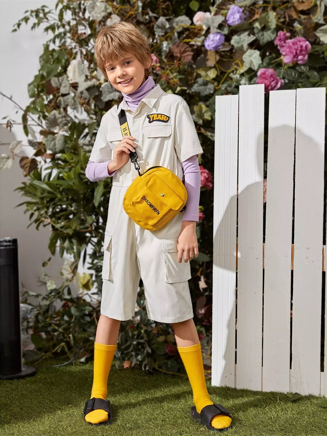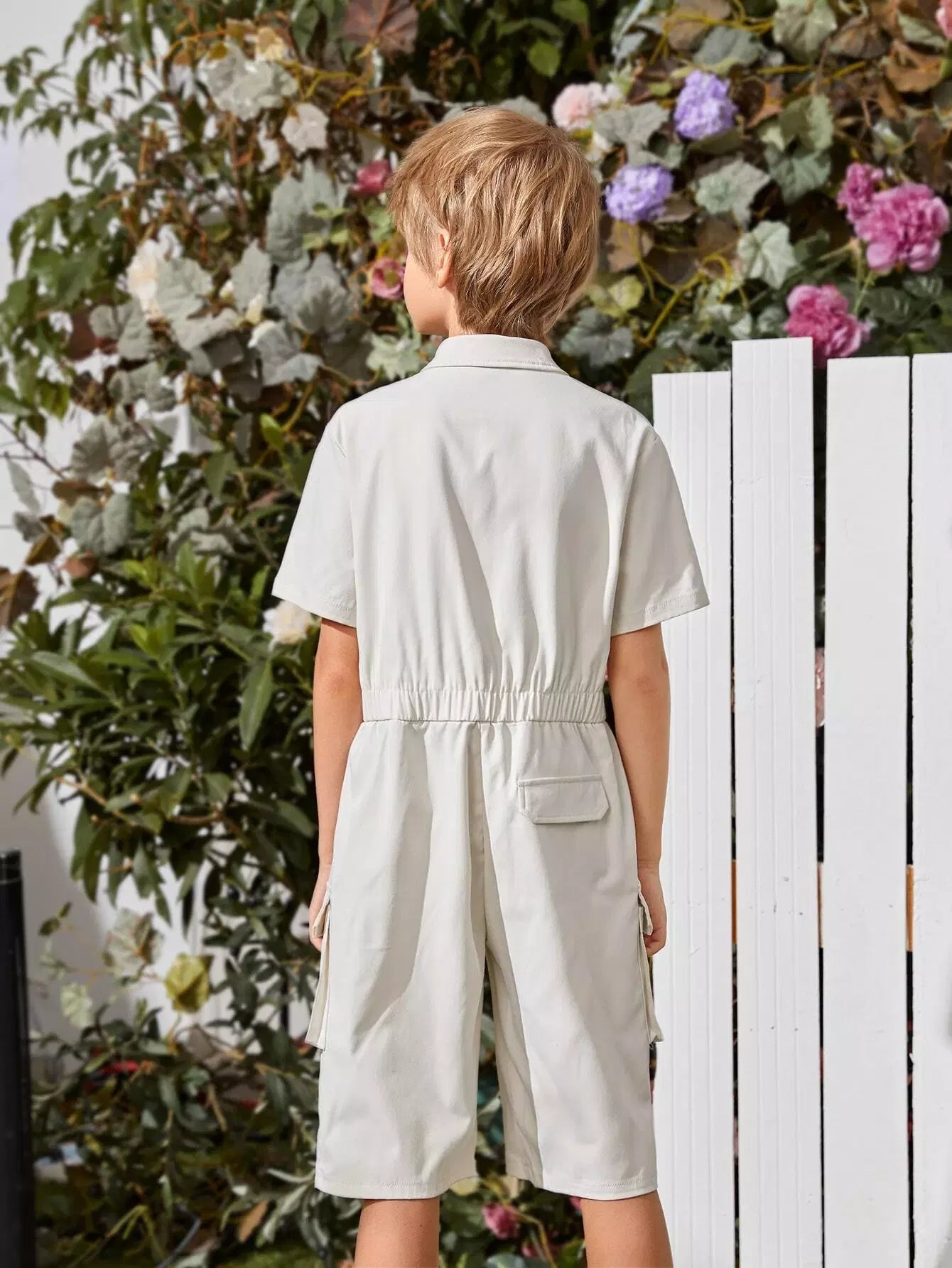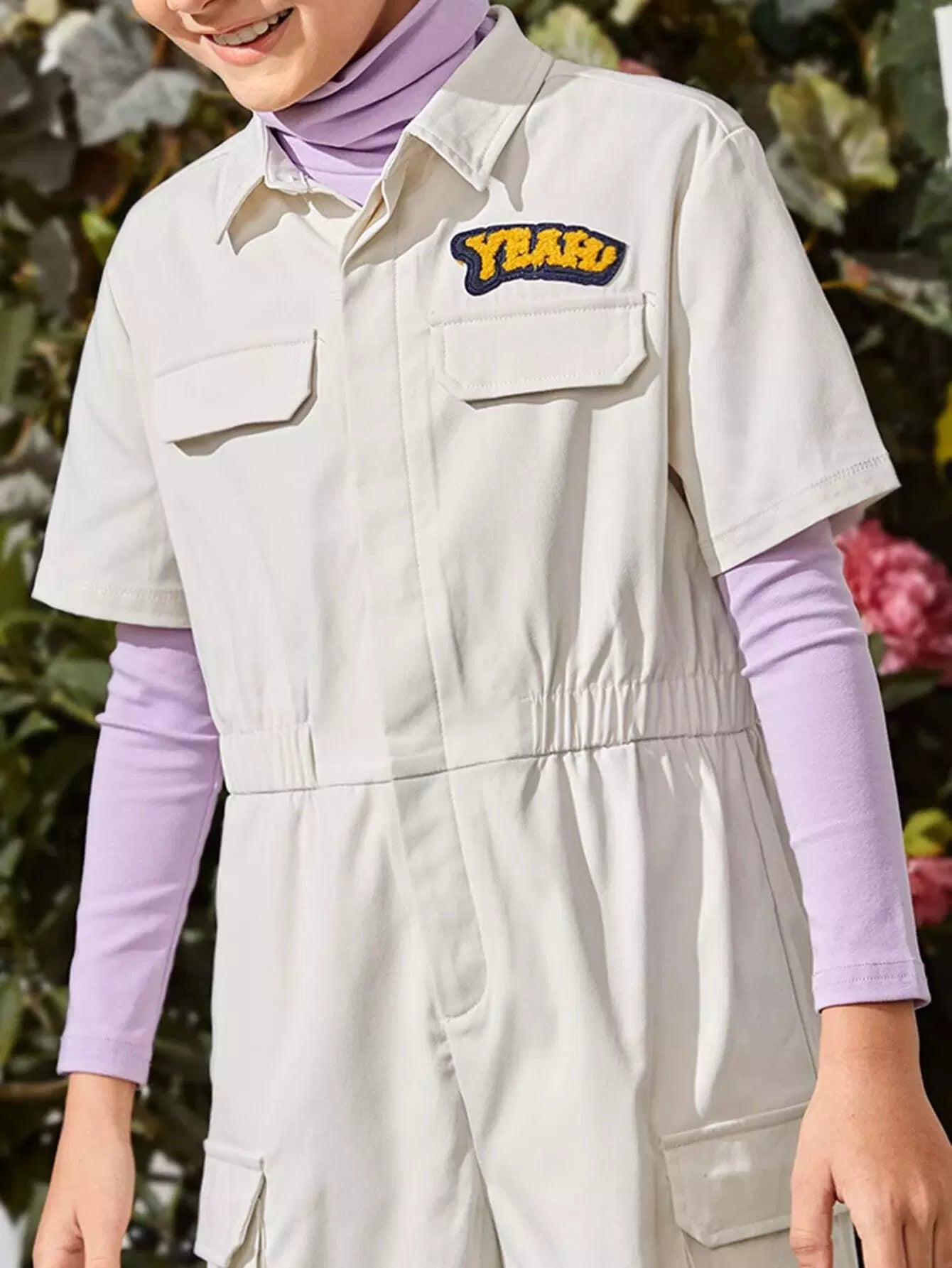 رومبر بغطاء أمامي مع تفاصيل مرقعة وياقة للأولاد