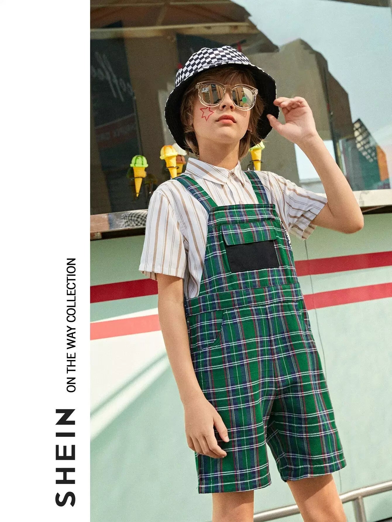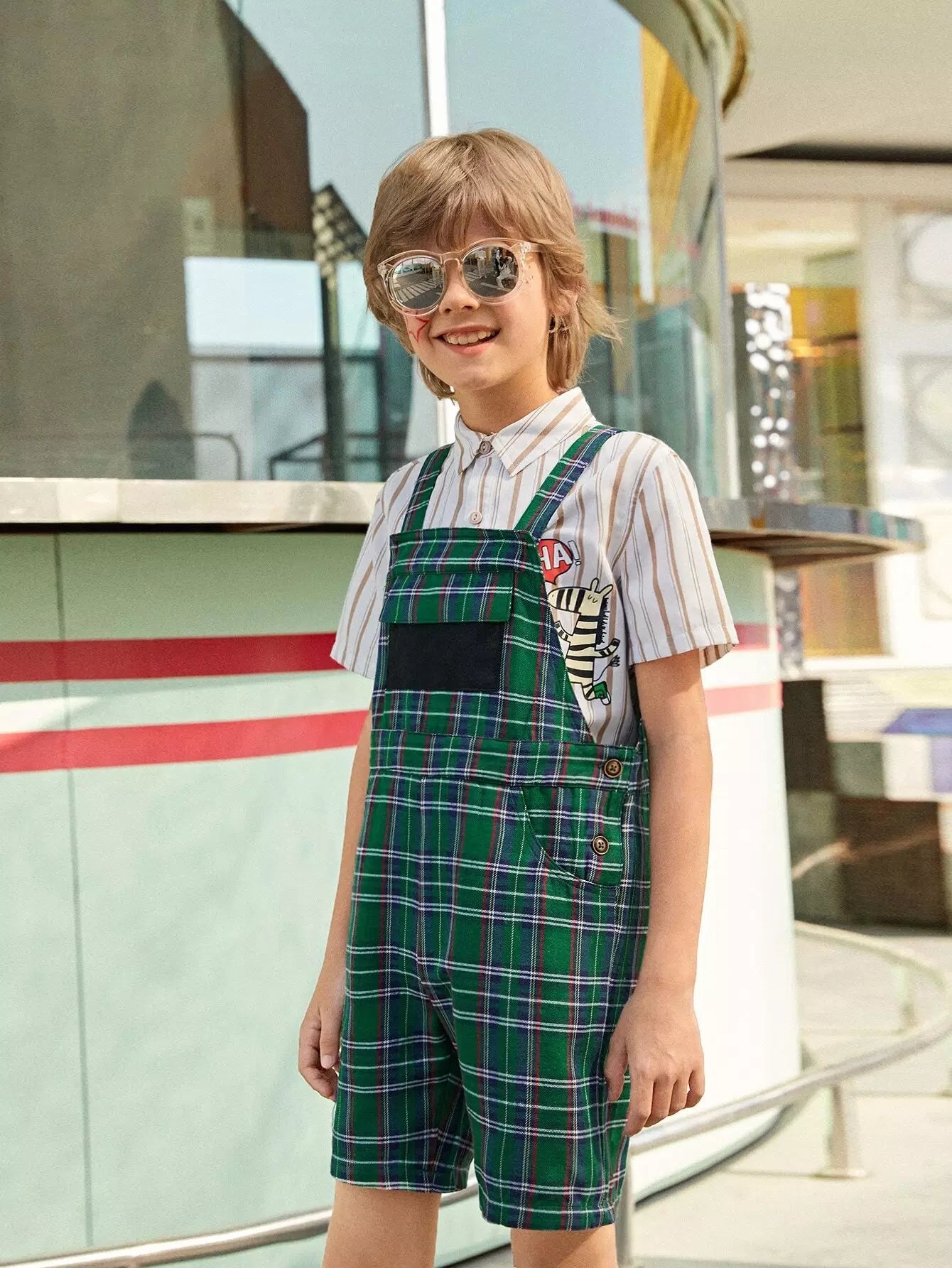 جمبسوت من قماش الترتان للأولاد بتفاصيل جيوب بدون بلوزة