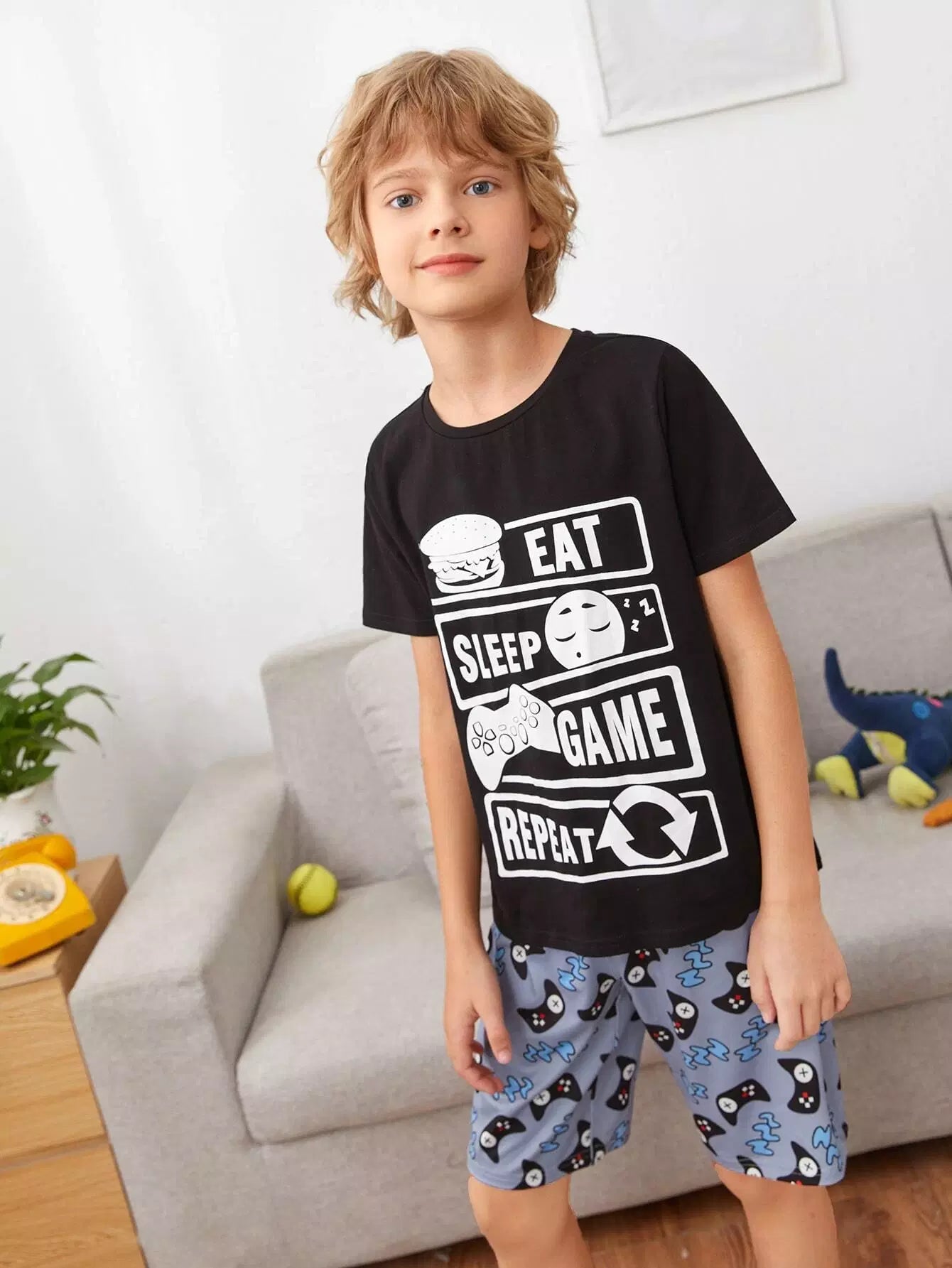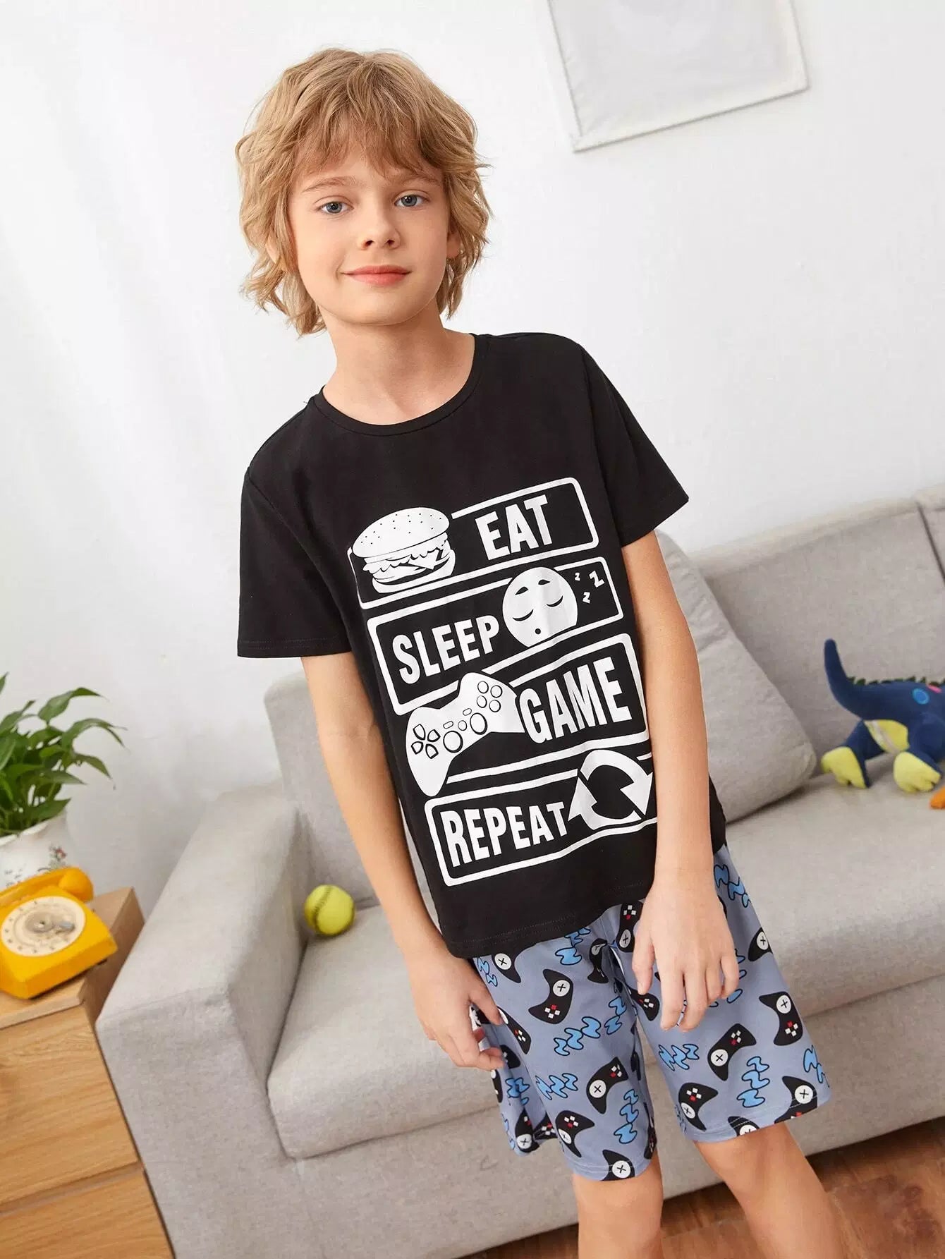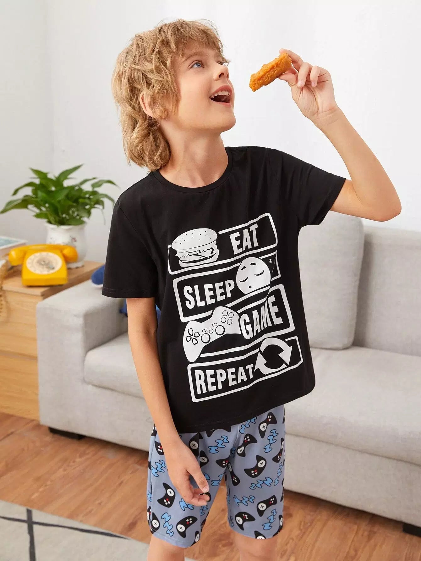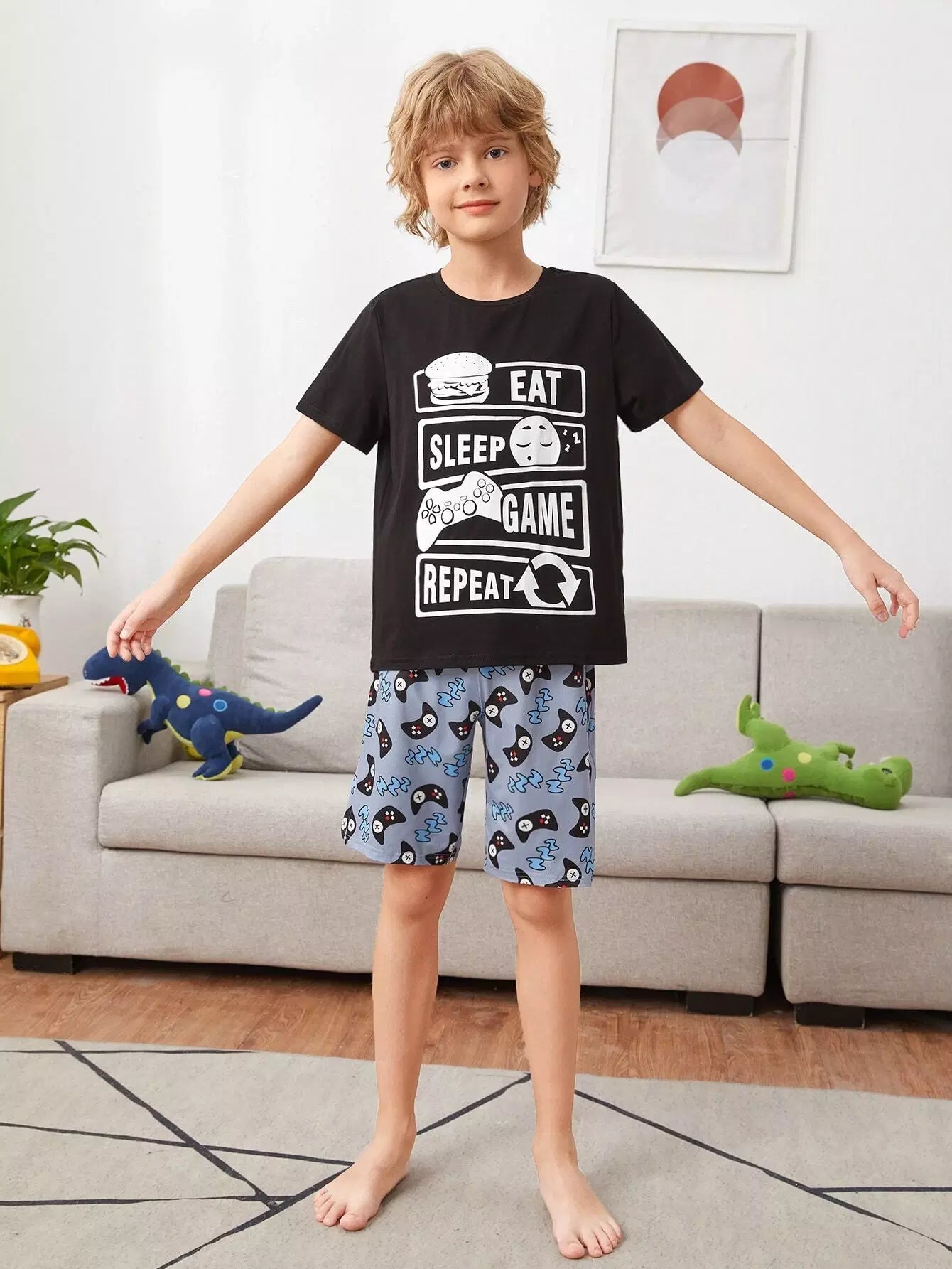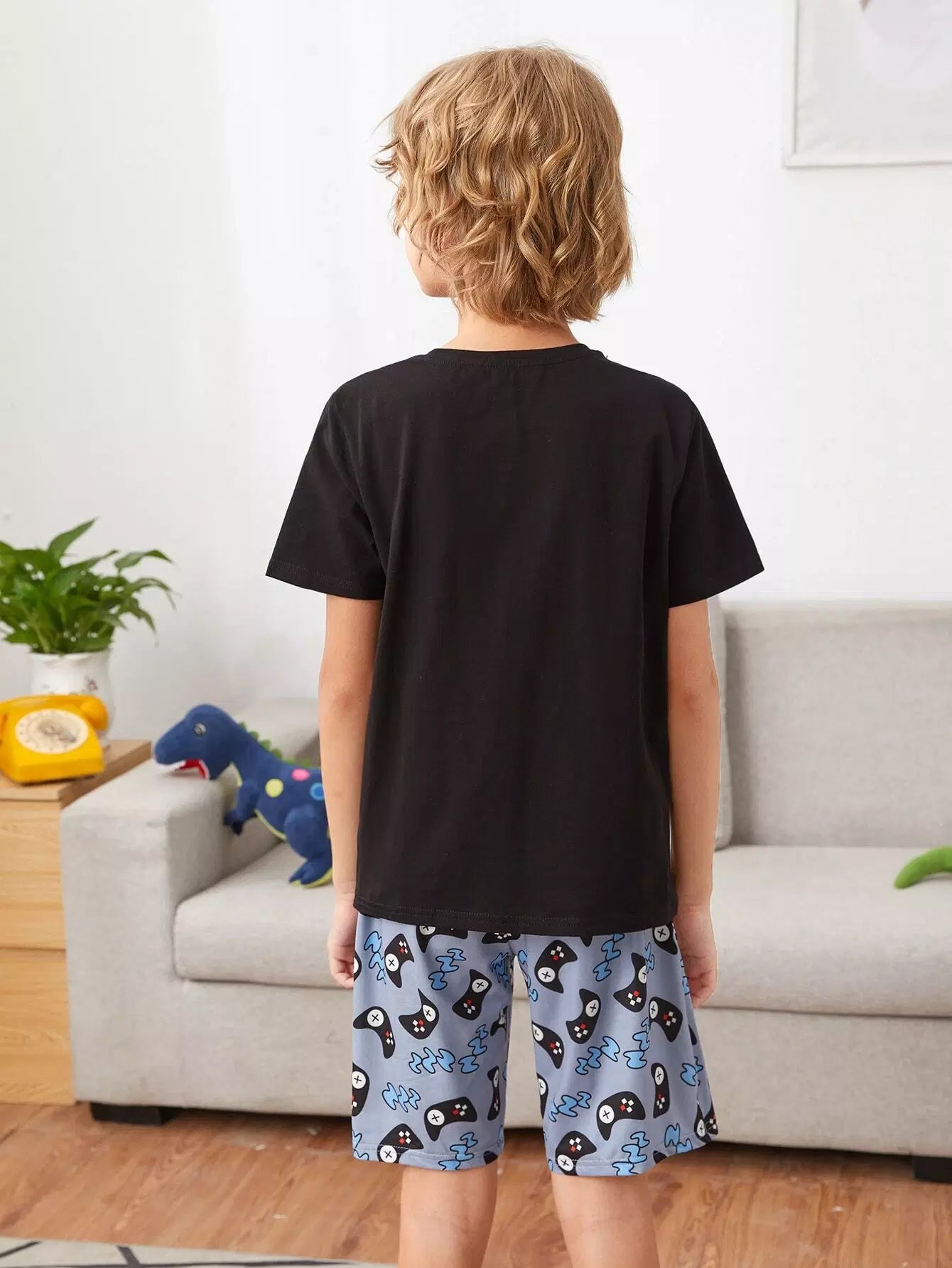 طقم بيجامة بنطلون وبنطال قصير برسومات ورسومات كرتونية للأولاد